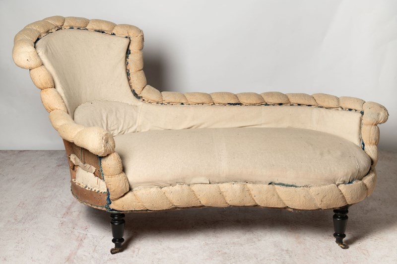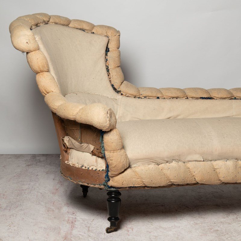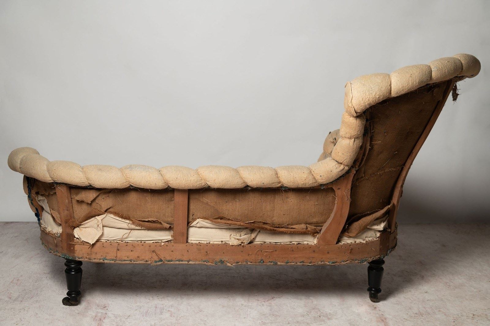 Lovely Napoleon III 19th Century French piecrust sofa – chaise. Seat length 50 inches. Floor to seat 16 inches. Seat depth 23 inches. Height 37 inches at the highest point, height 21 inches in the middle at the back.