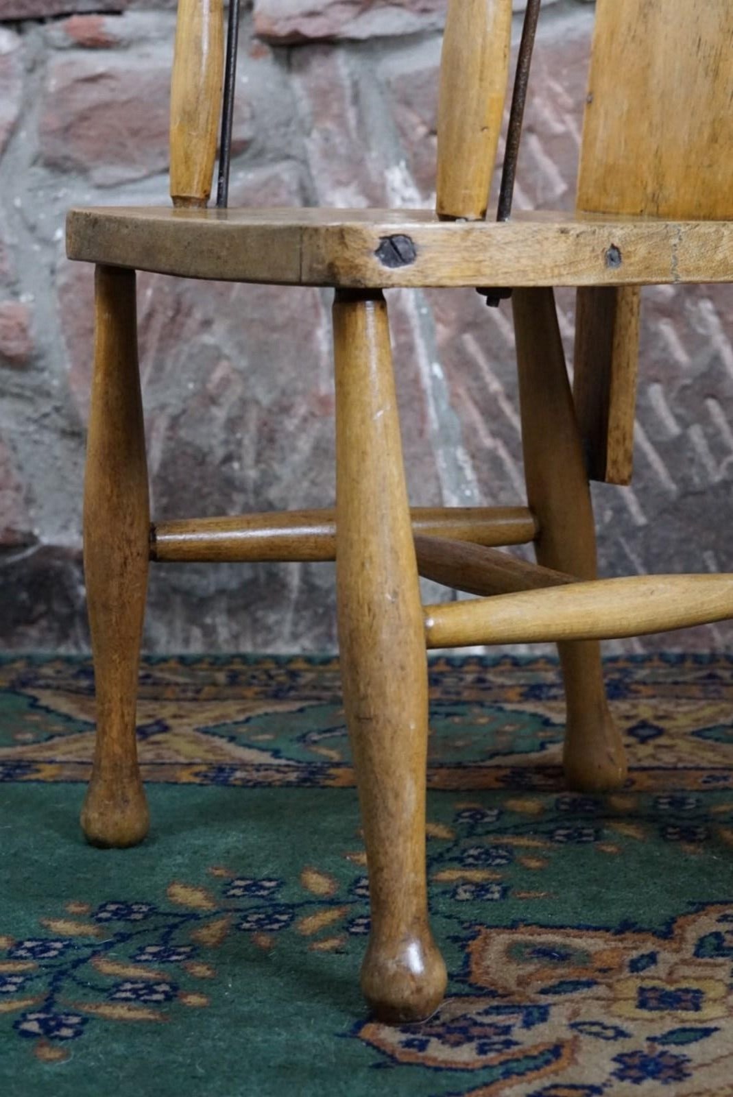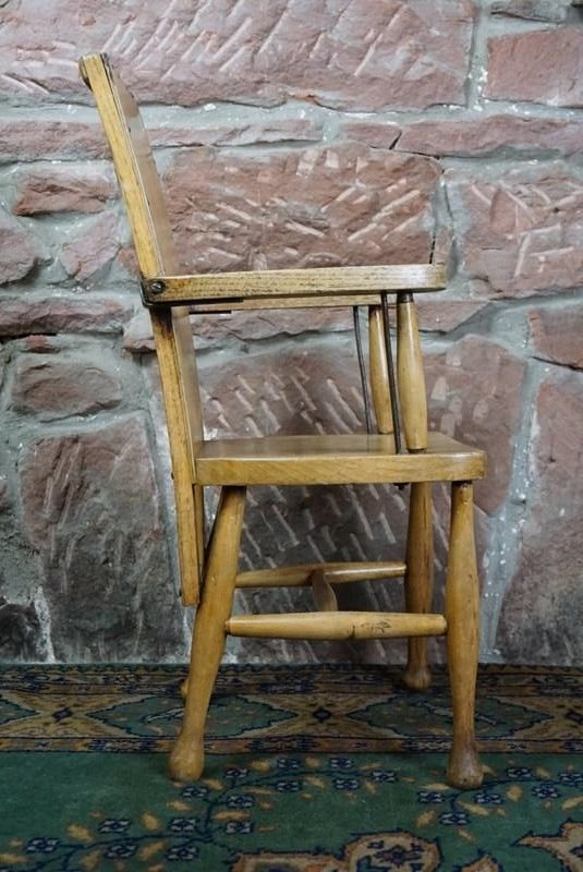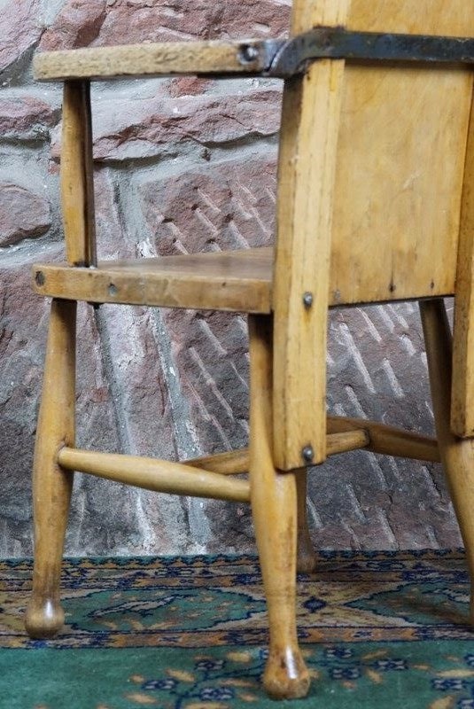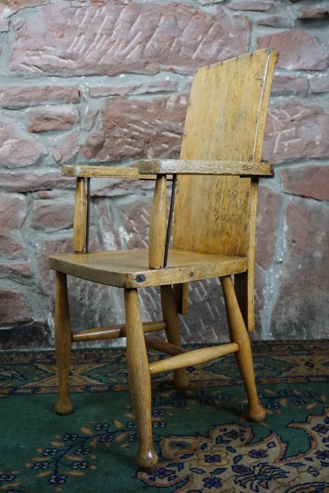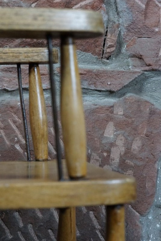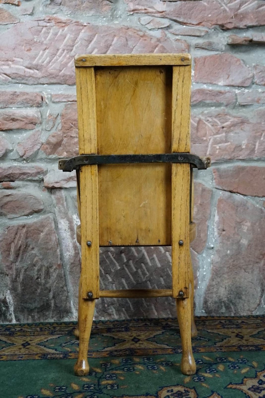 A Child's Wooden Chair With Metal Reinforcement