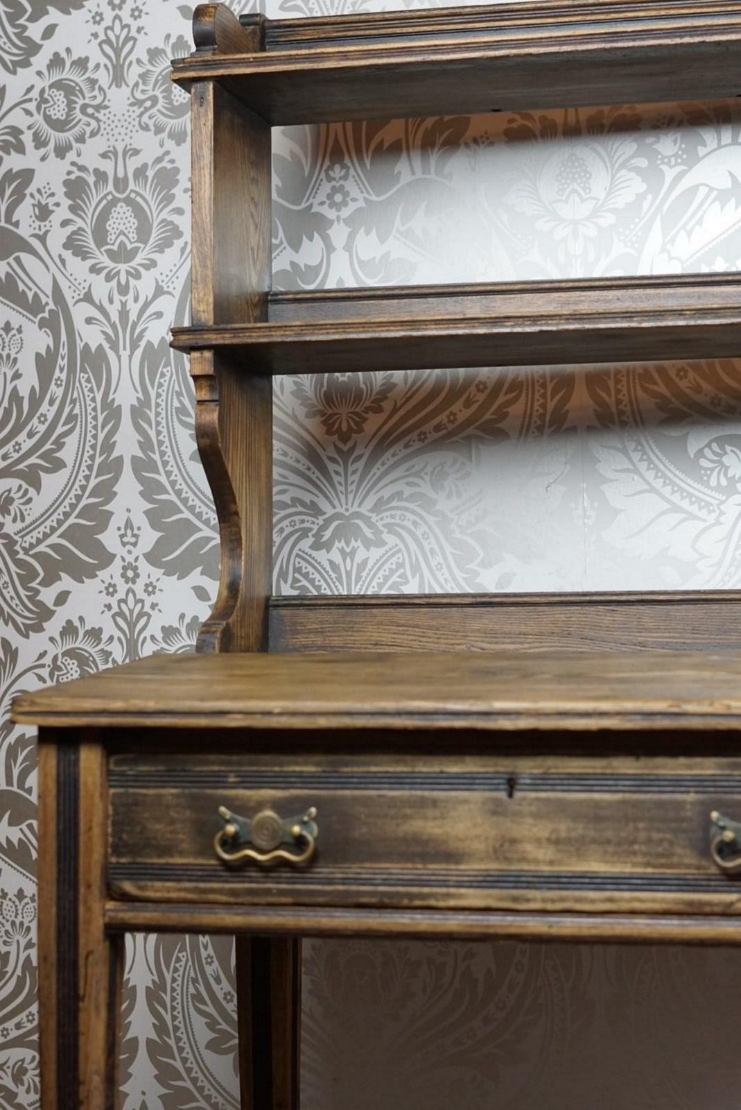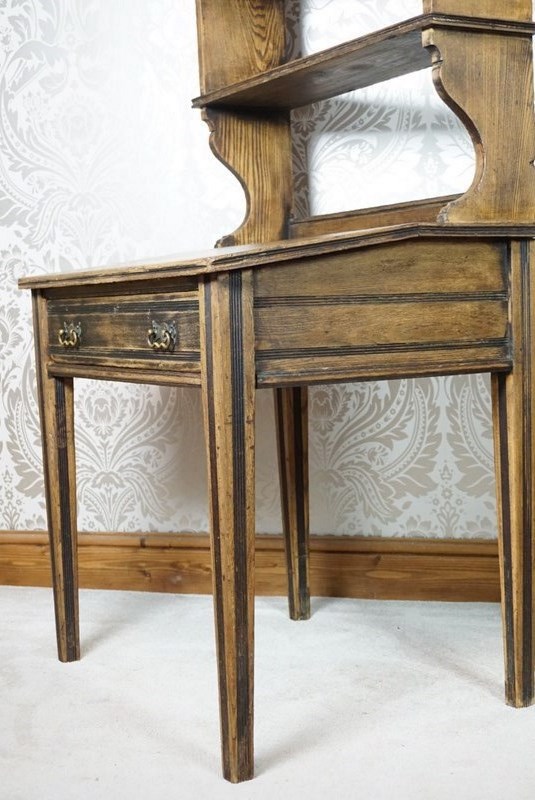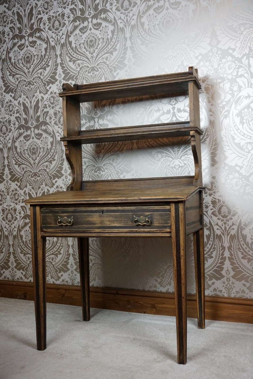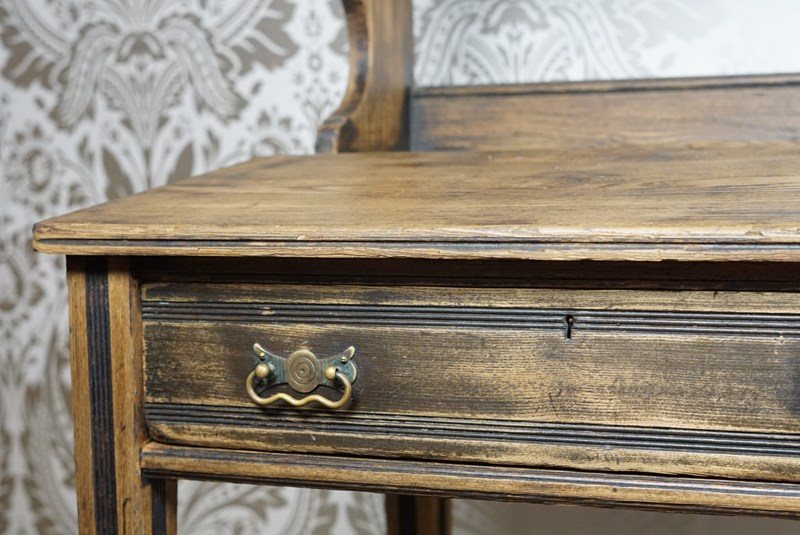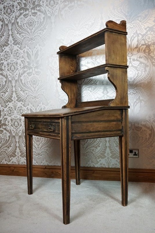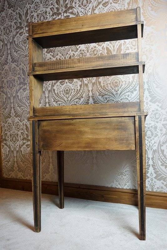 Simply stylish with a two shelf book rack above a sloped surface, single frieze drawer and fluted, tapering legs.