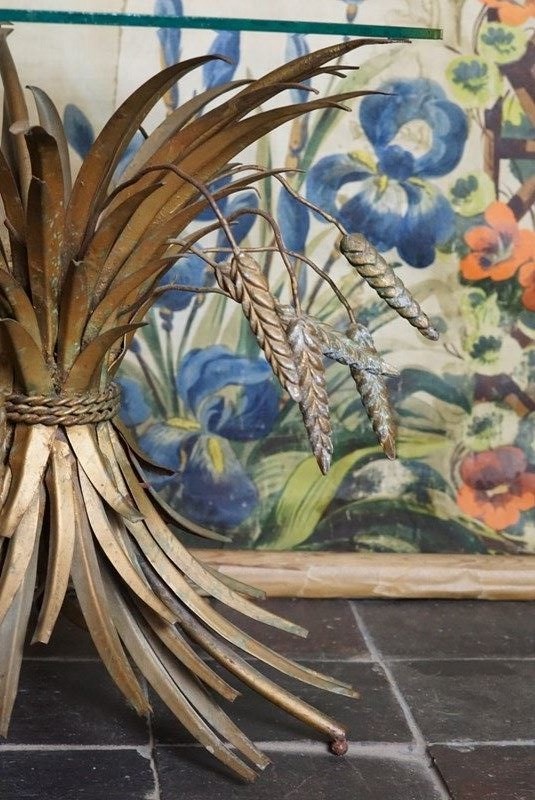A gilt metal wine or side table modelled as a wheatsheaf bound by a twisted rope, probably 1960s.