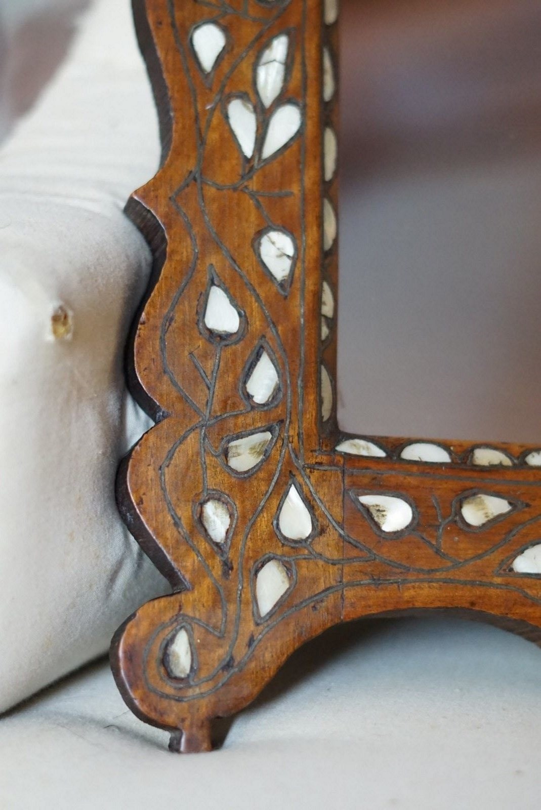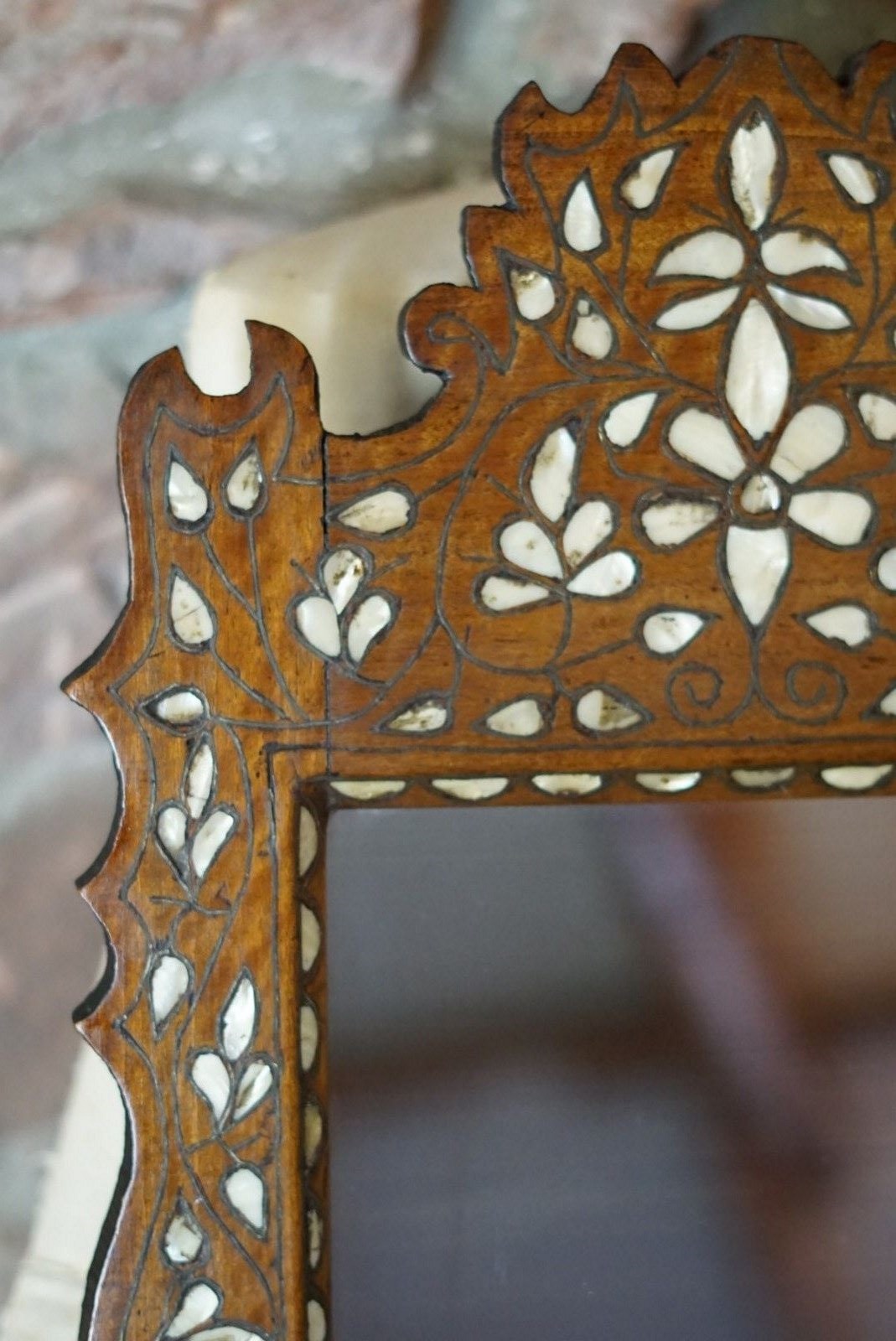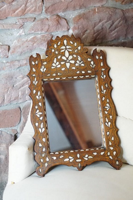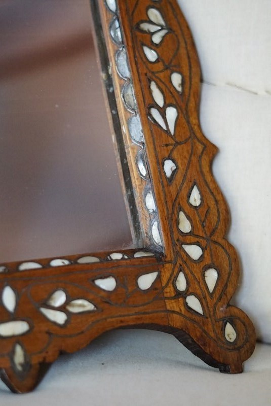 A late 19th century Syrian mirror, profusely inlaid with mother of pearl and silver wirework.