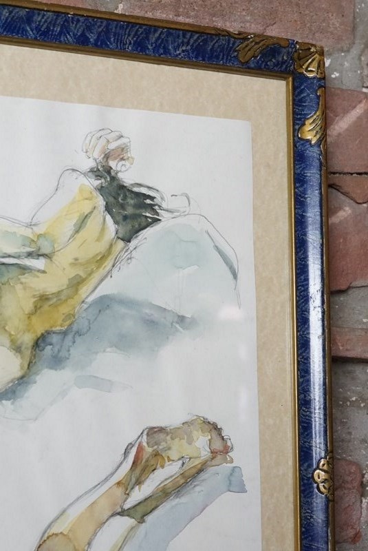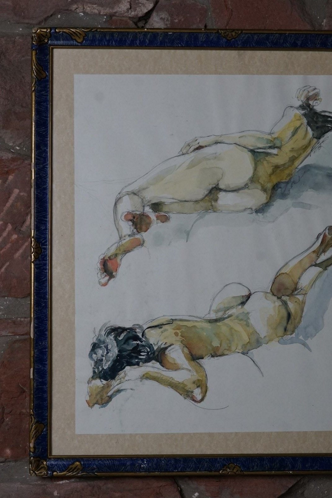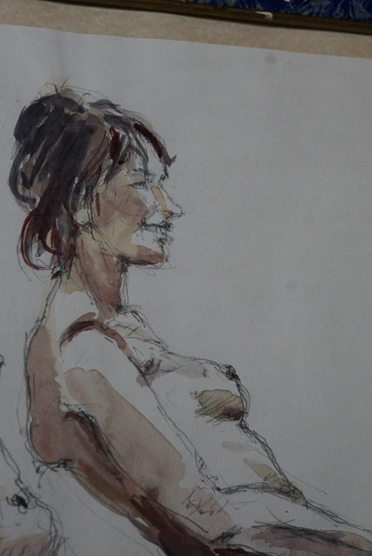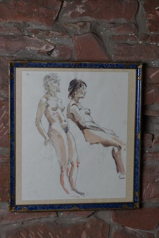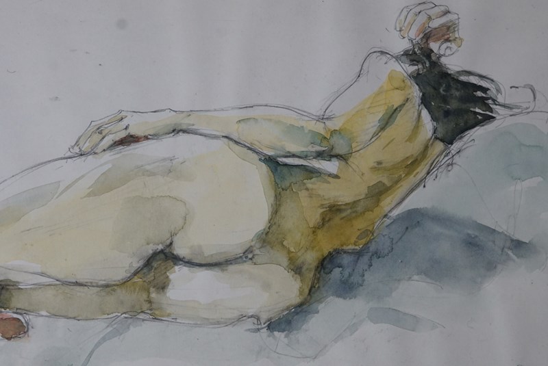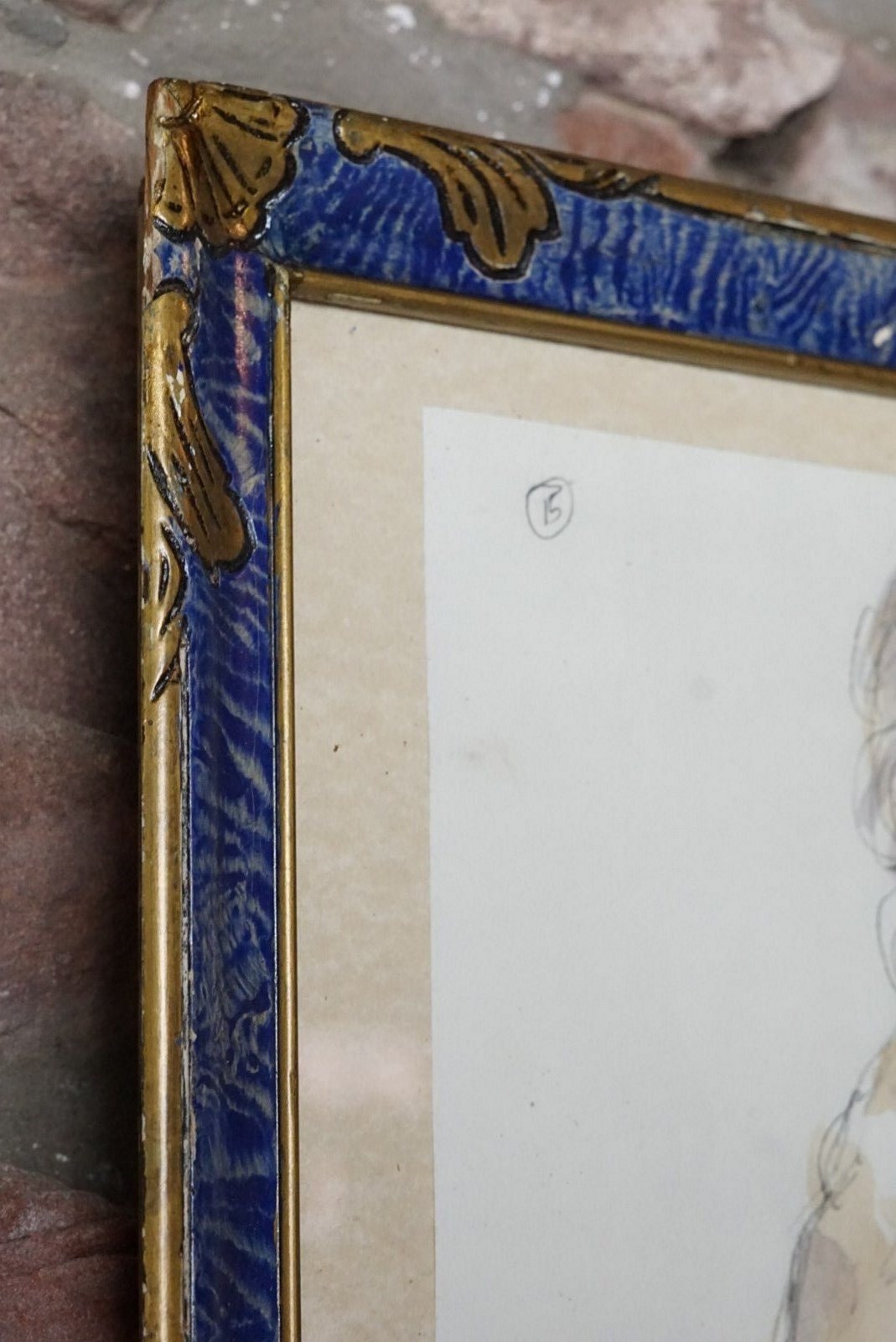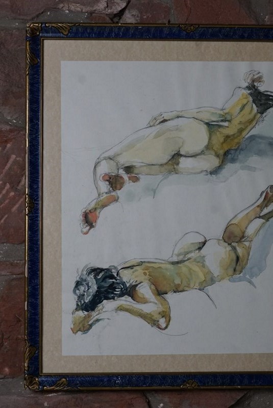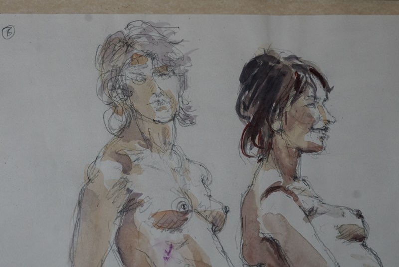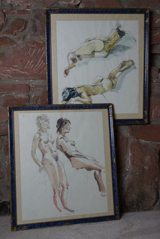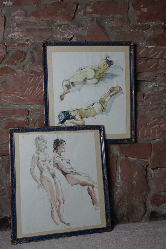 A Pair Of Pencil And Watercolour Female Nudes Sketches In Chinoiserie Frames