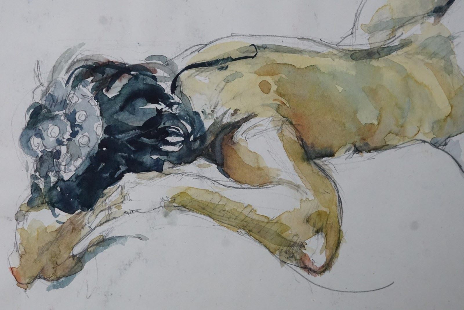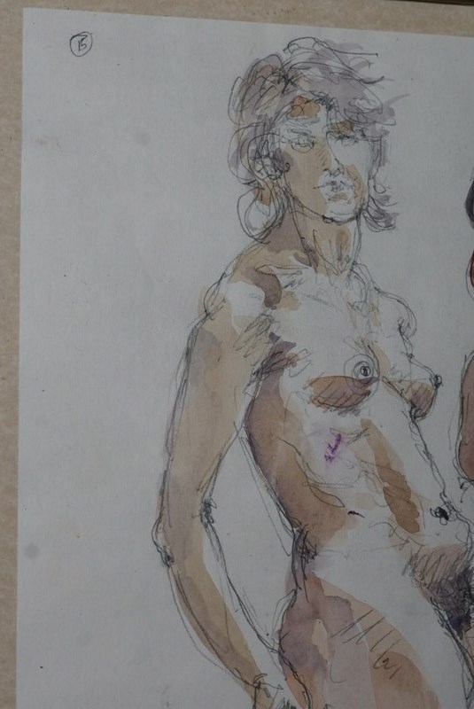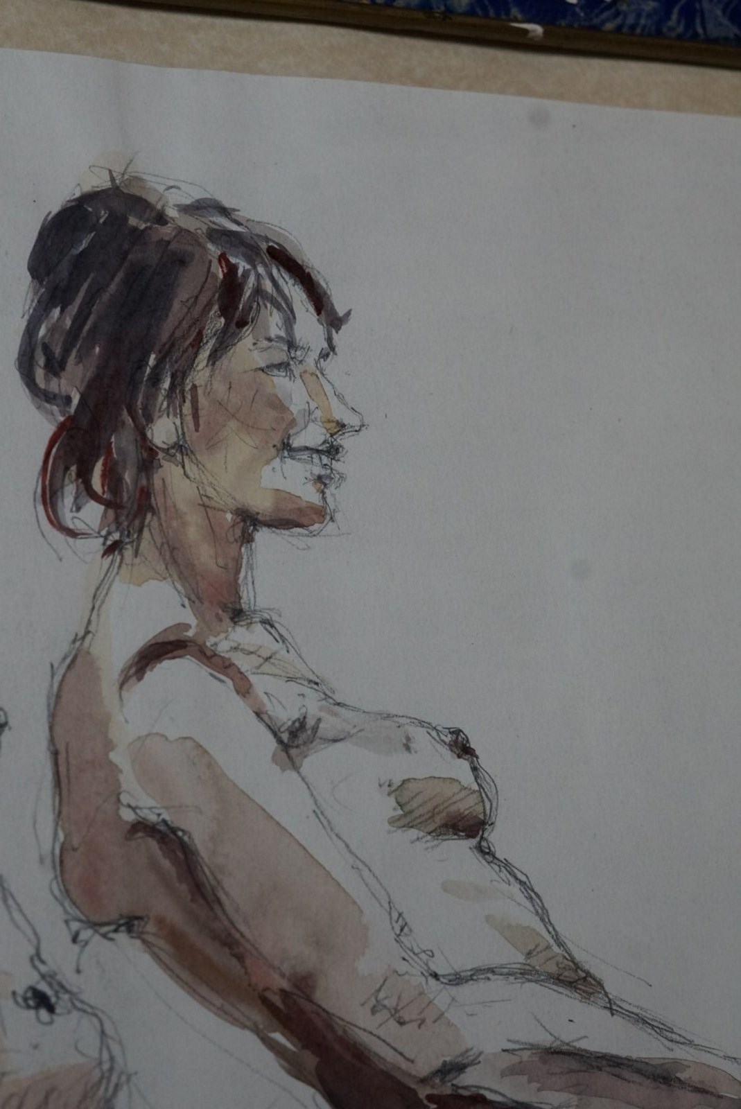 A pair of unsigned pencil and watercolour sketches of female nudes.