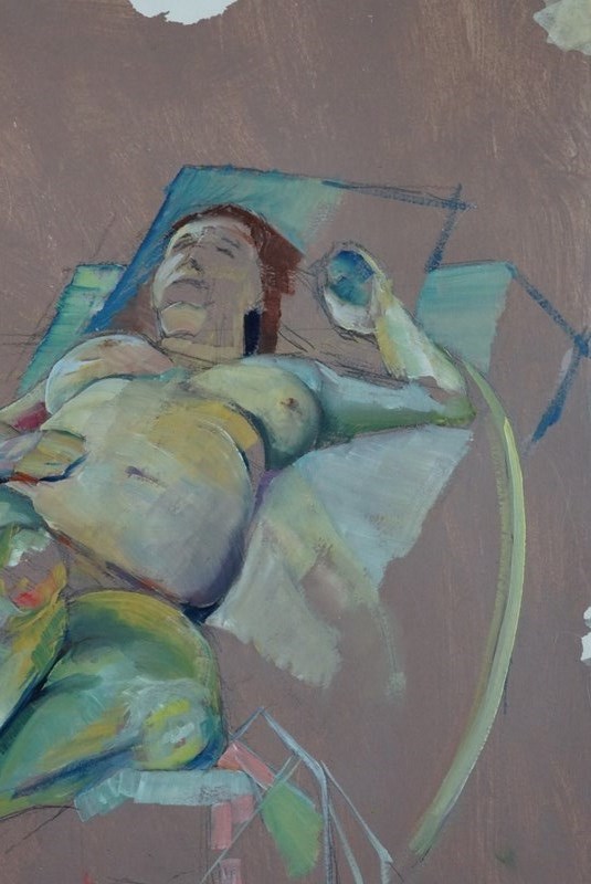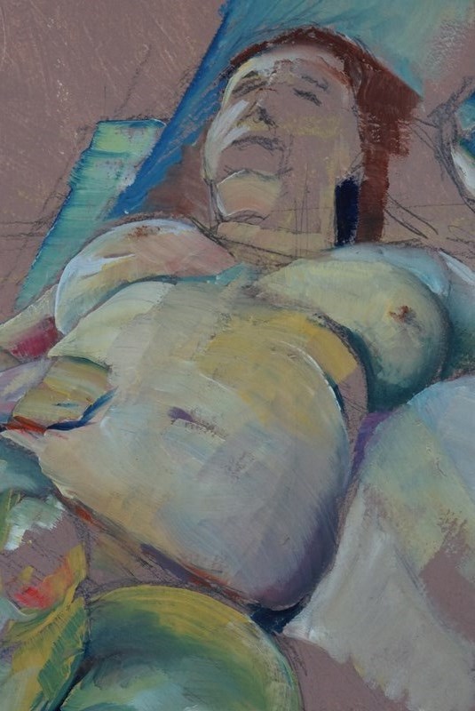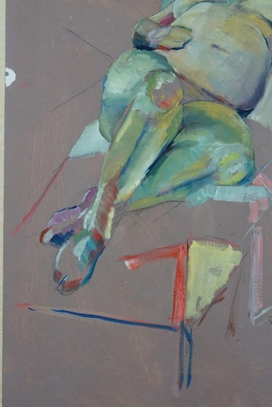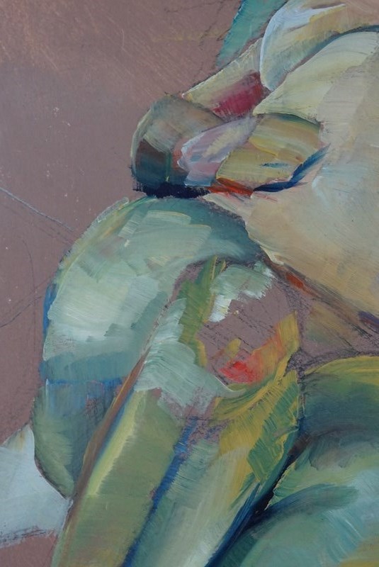 Derek King is a contemporary Scottish artist, now based in Liverpool. This work is one of four studies in oil of the same model, Louise, all completed in 2017. Please see our listings for details of the other three paintings in the series.