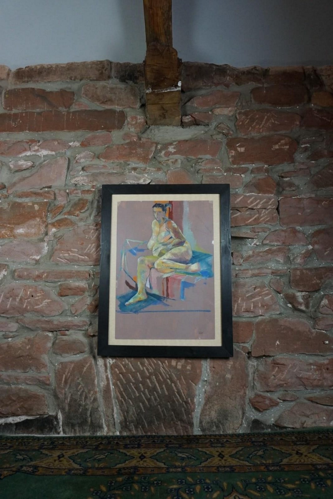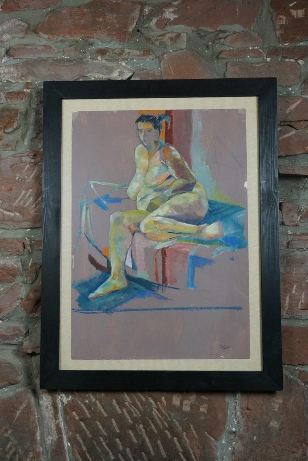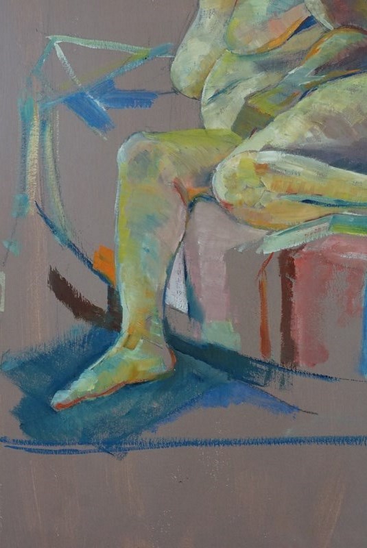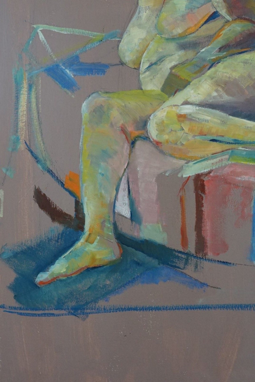 'Louise Seated' an original oil on paper by Derek King, 2017.
