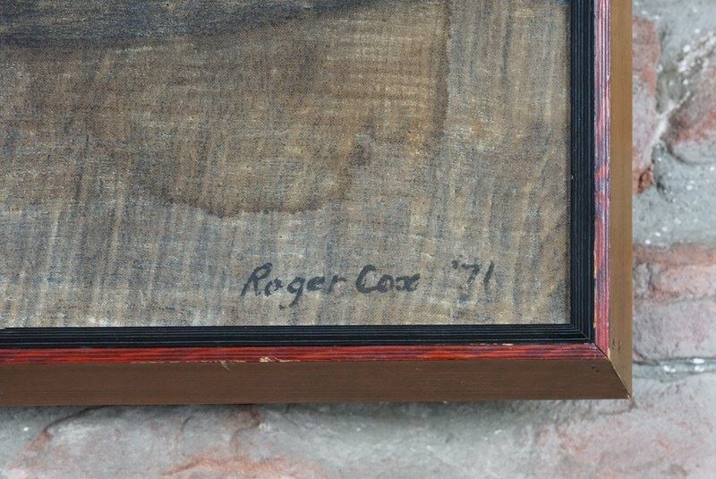 Framed in an unglazed wooden frame with a black slip, signed Roger Cox, '71.