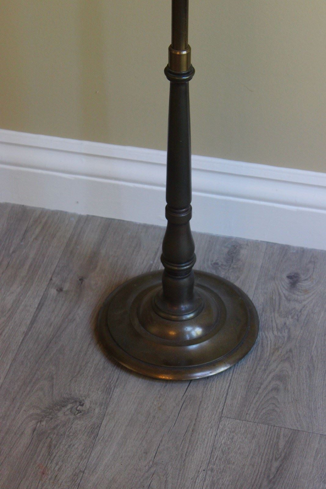 Elegant French circa 1950 adjustable height floor lamp in darker brass - this lamp extends to about 175/180 cms high and reduces to 140 cms - the shade also had adjustable positions and an original on/off switch