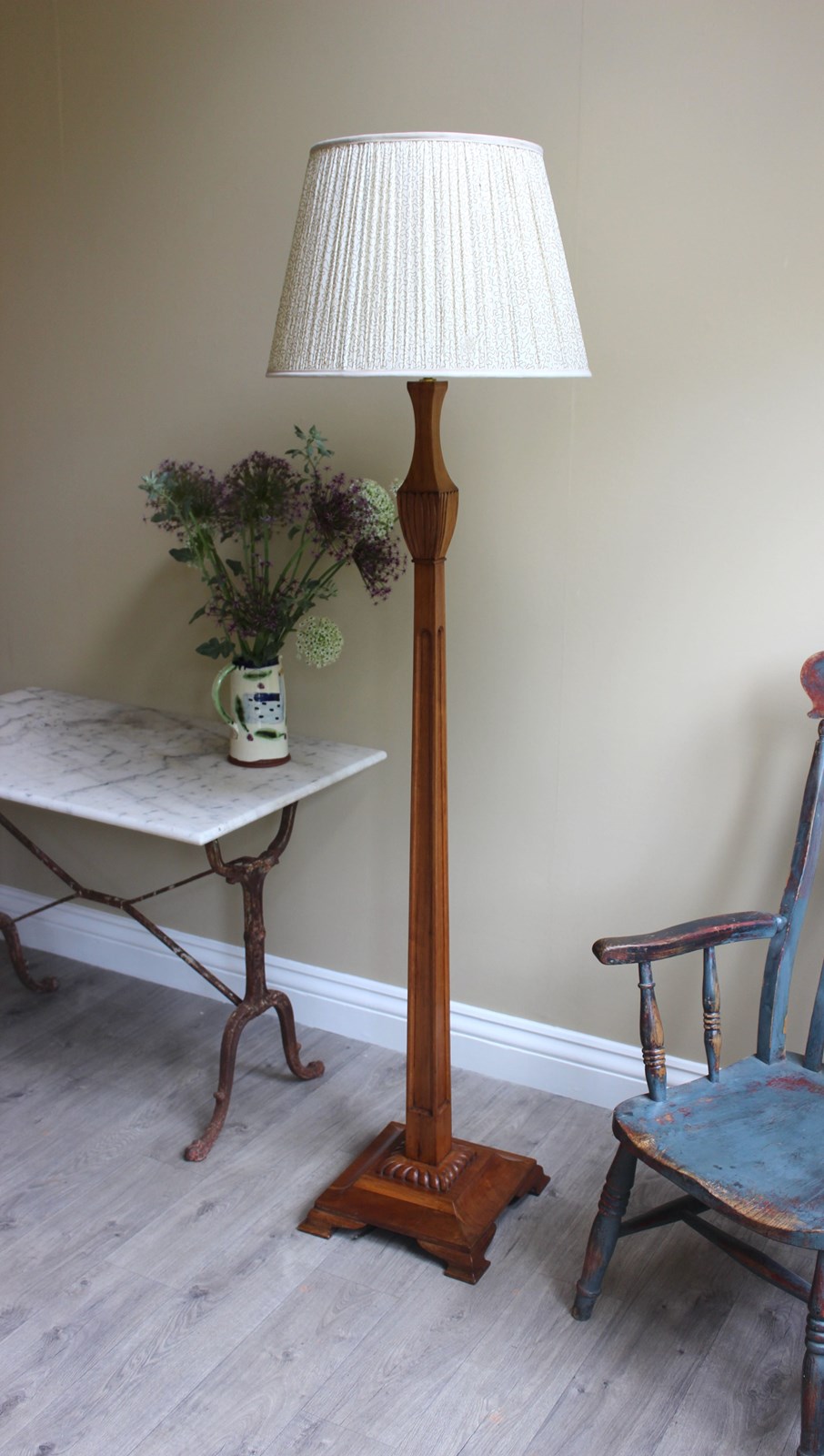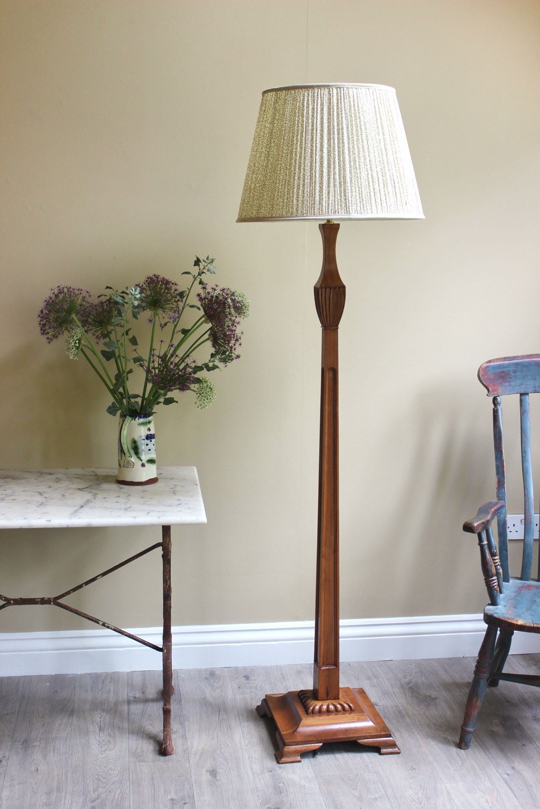 Elegant Heals Style Carved Hardwood Floor Lamp With Lovely Patina