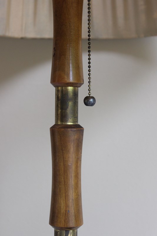 Mid Century Super Smart Brass And Polised Wood Marble Based Floor Lamp