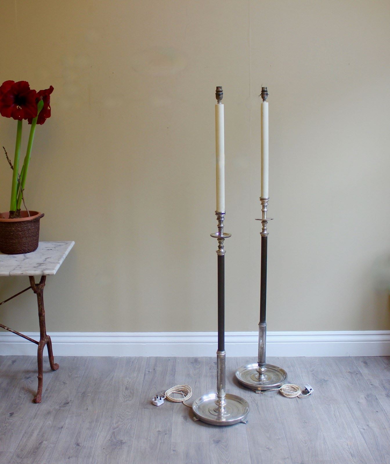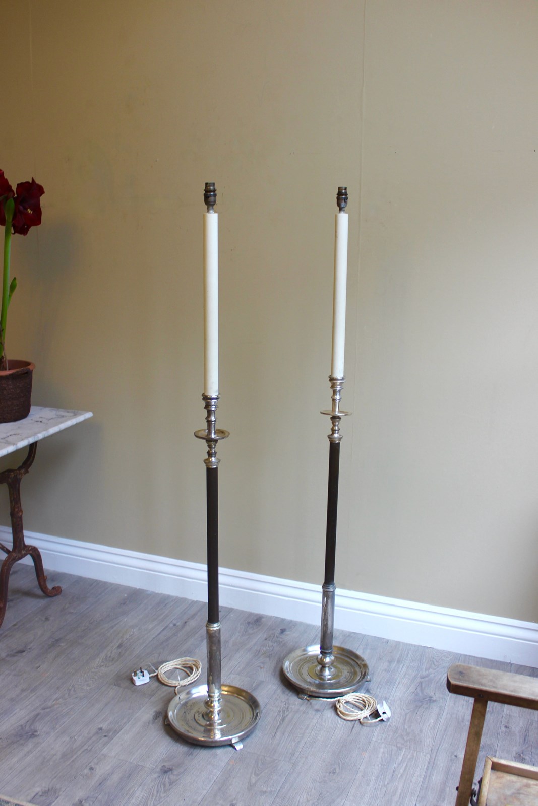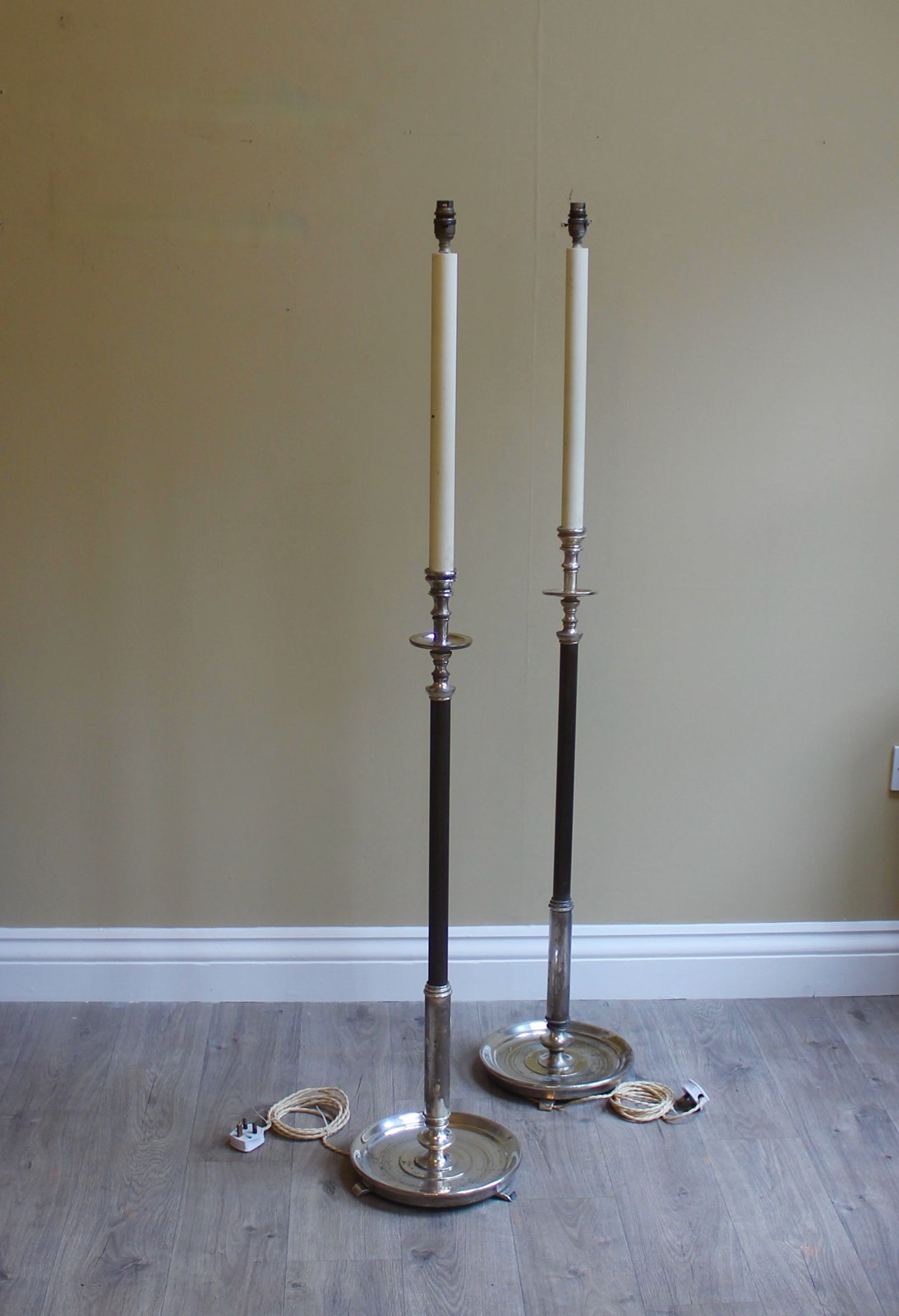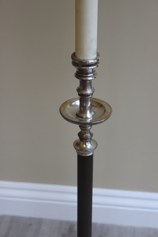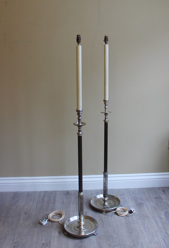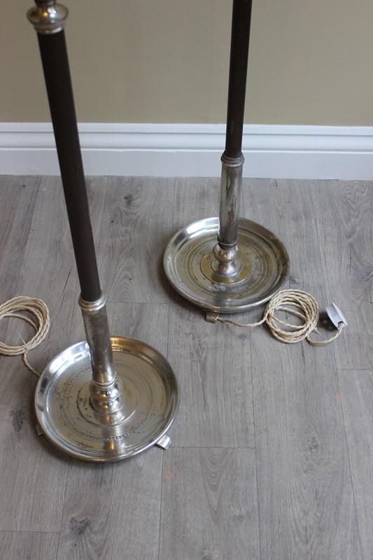Pair French Silver Gilt Saucer Base Eclesiastical Floor Lamps