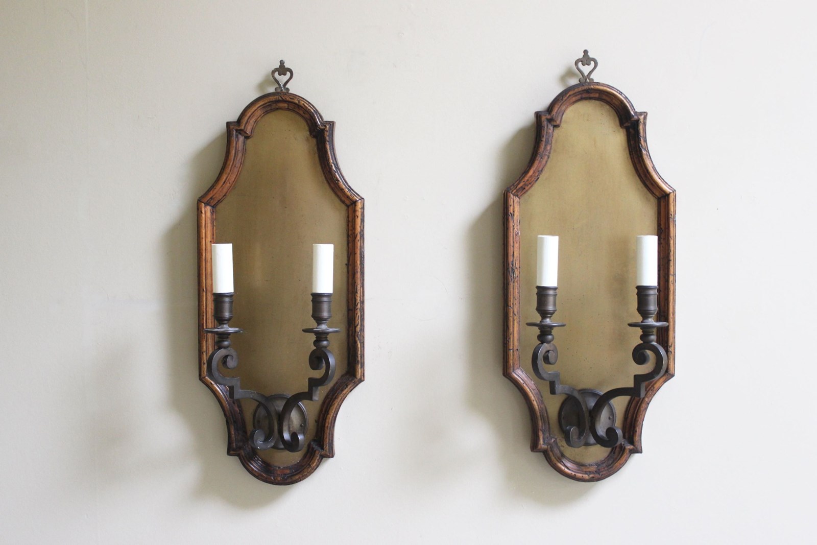 Pair Of French Framed Dark Brass Twin Branch Wall Lights
