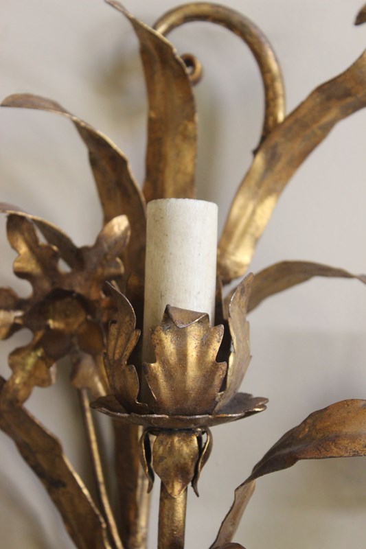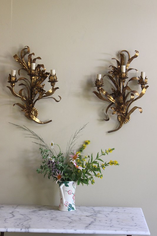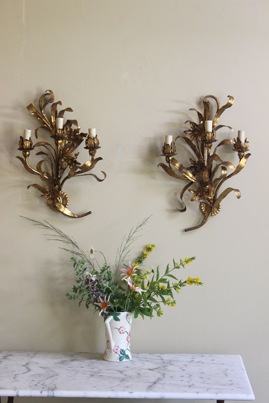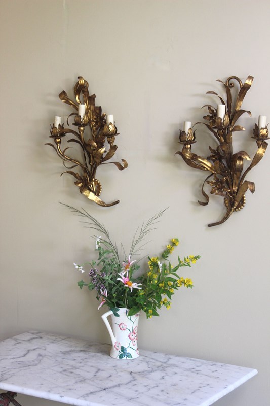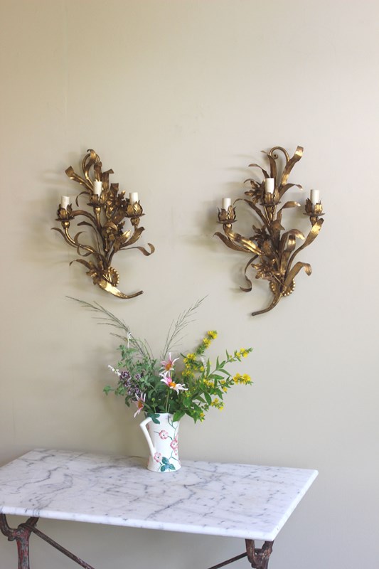 Pair Of French Right And Left Handed 3 Branch Gilt Metal Wall Lights