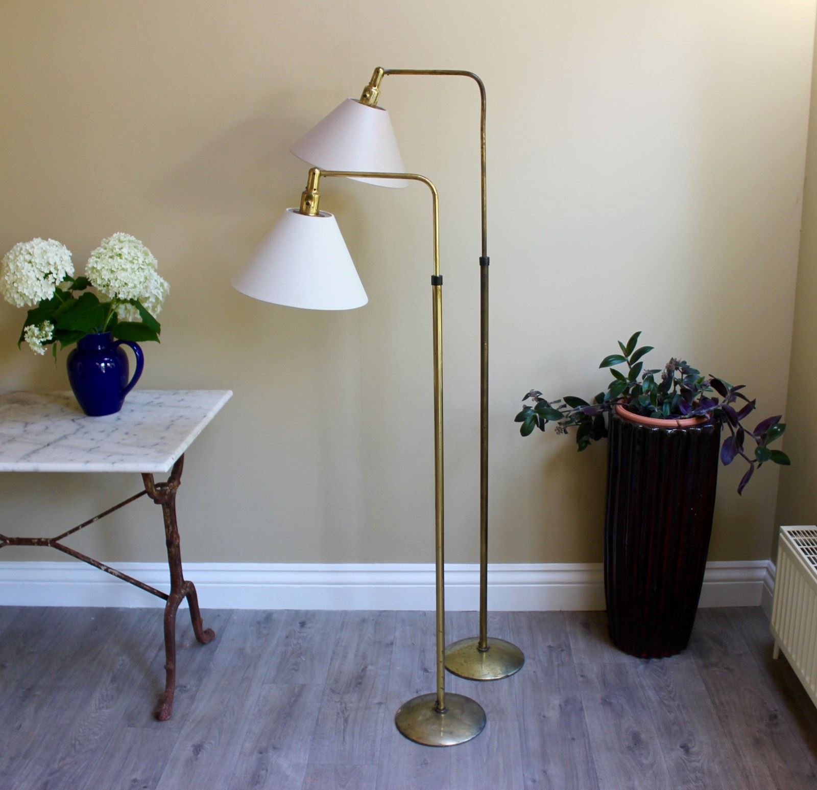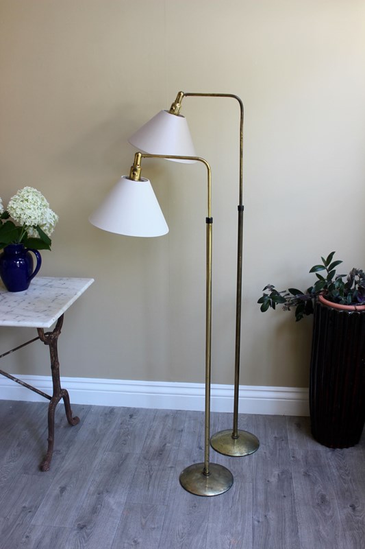 Pair Of Slim Profile Mid Century Adjustable Floor Lamps