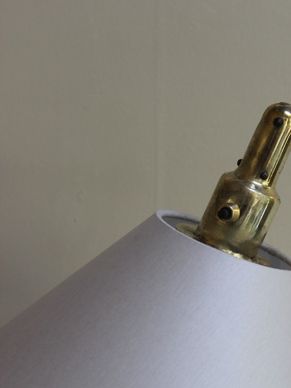Each with a pale taupe silk coolie shade custom made and their original on/off switches.