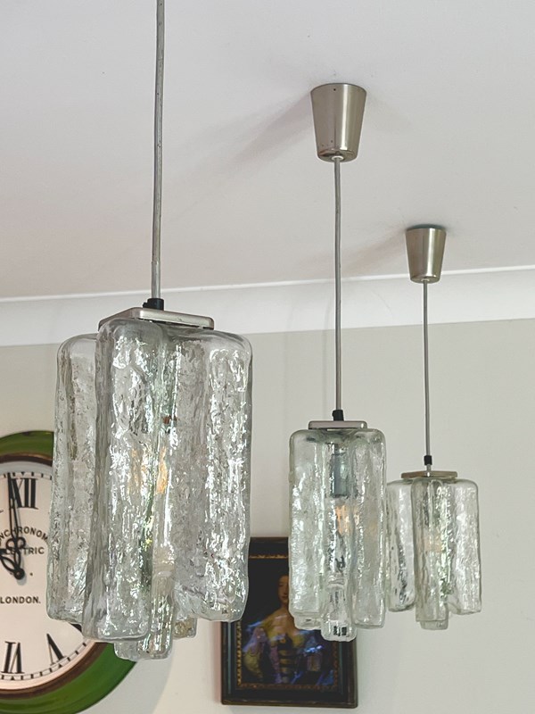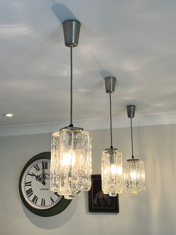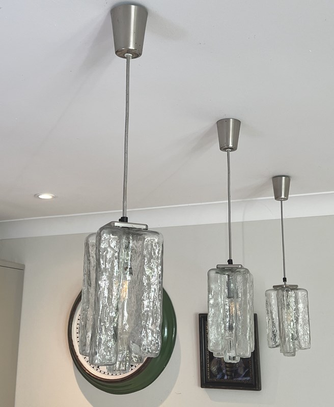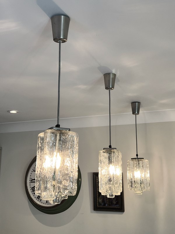 Set Of 3 Mid Century Glass Pendants