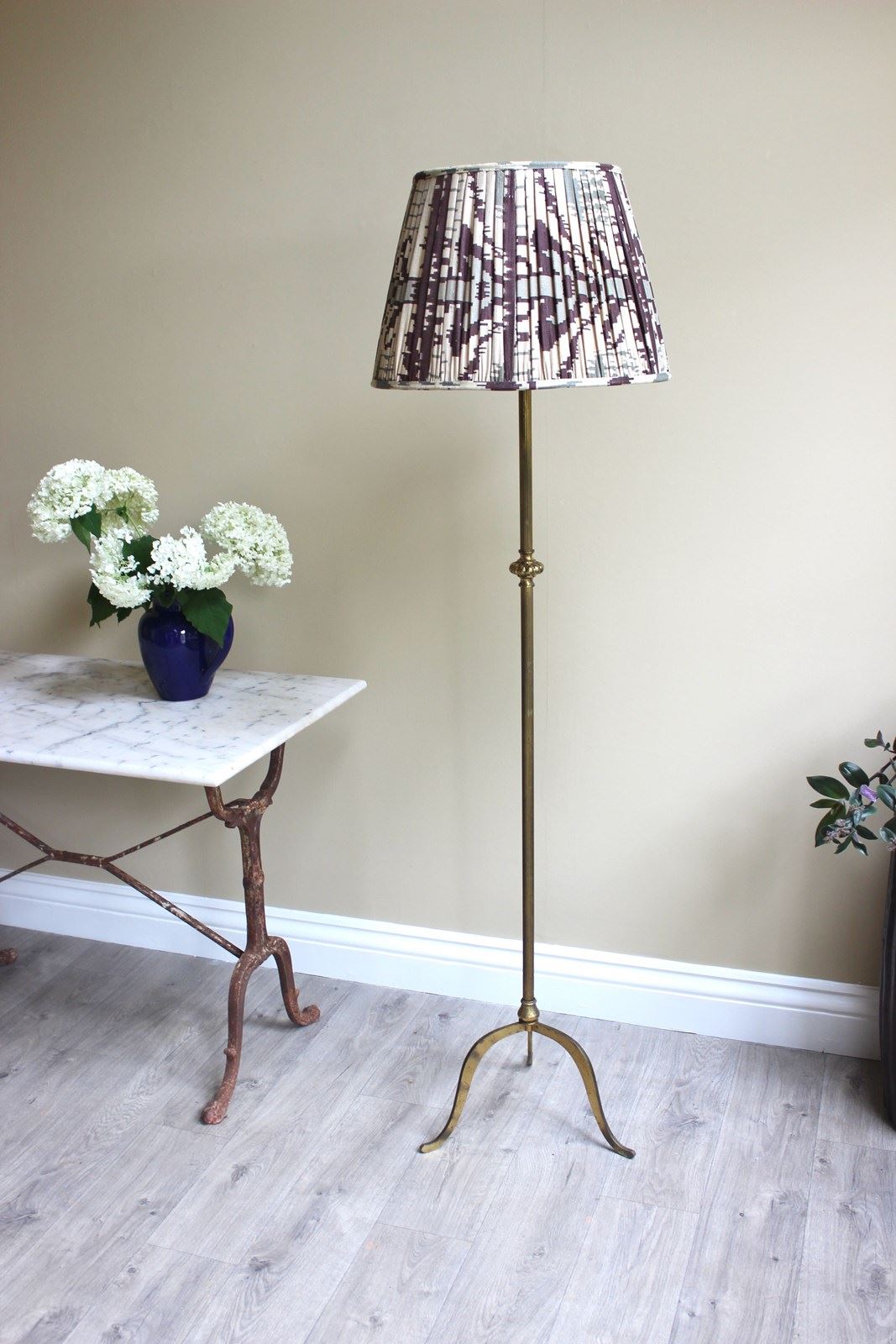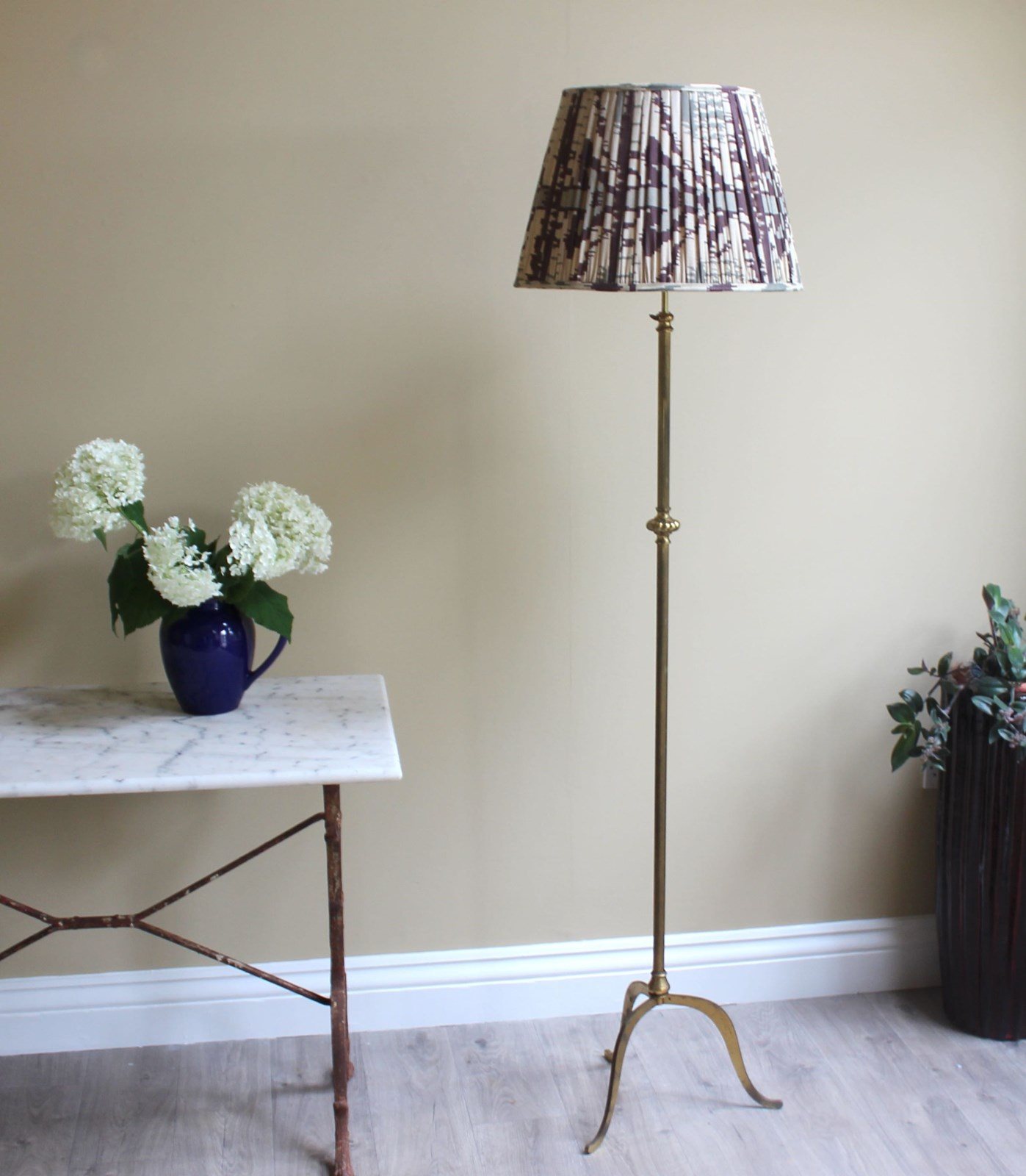 Very slim profile mid century French three foot floor lamp circa 1960. This floor lamp has an adjustable height mechanism allowing it to be raised and lowered between 190 and 160 cms ( inc shade ) Mid century French seen here with a 40 cms dia pleated stock shade which is not included.