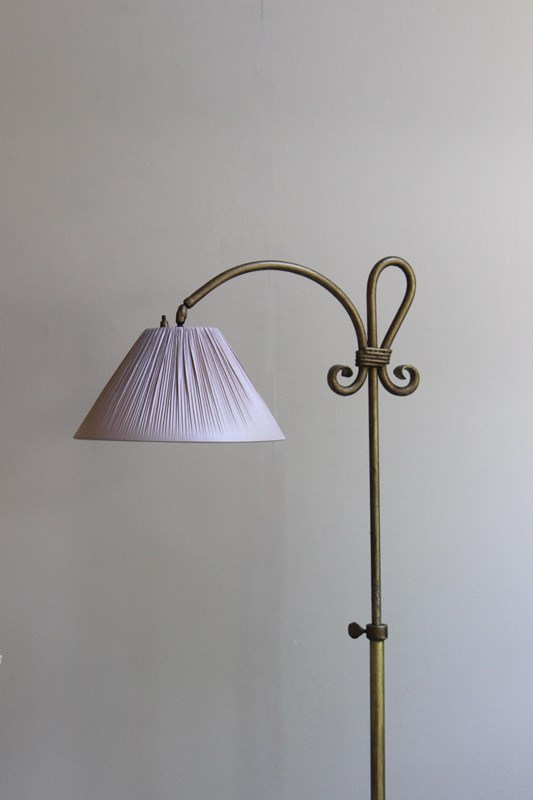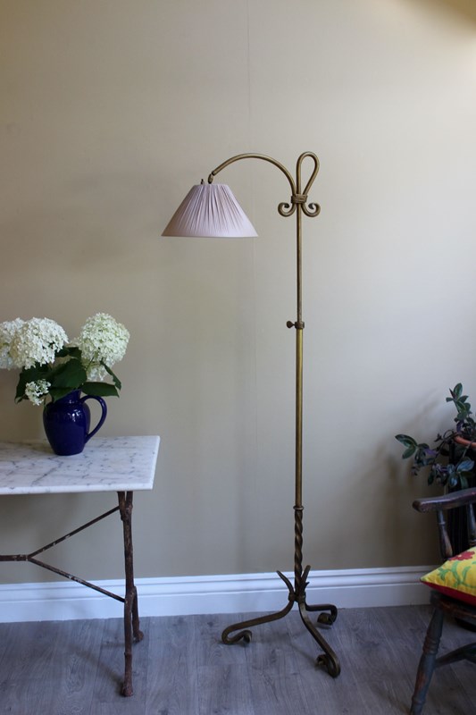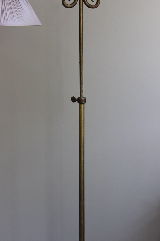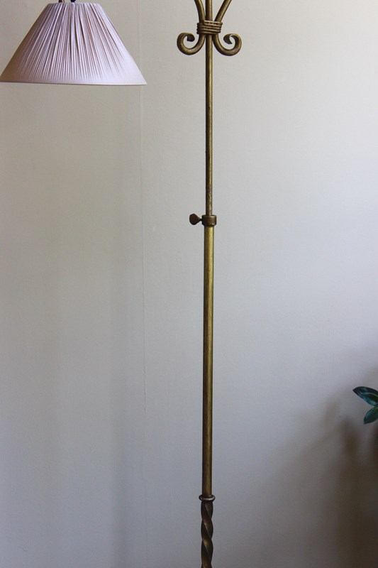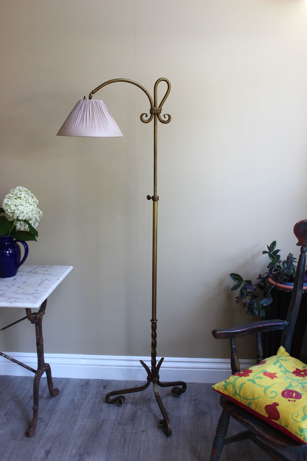 Smart Spanish adjustable height floor/ reading lamp lamp with 3 foot base and adjustable shade positions - perfect for a traditional or more mid century unterior original on/off switch to the top Circa 1950.