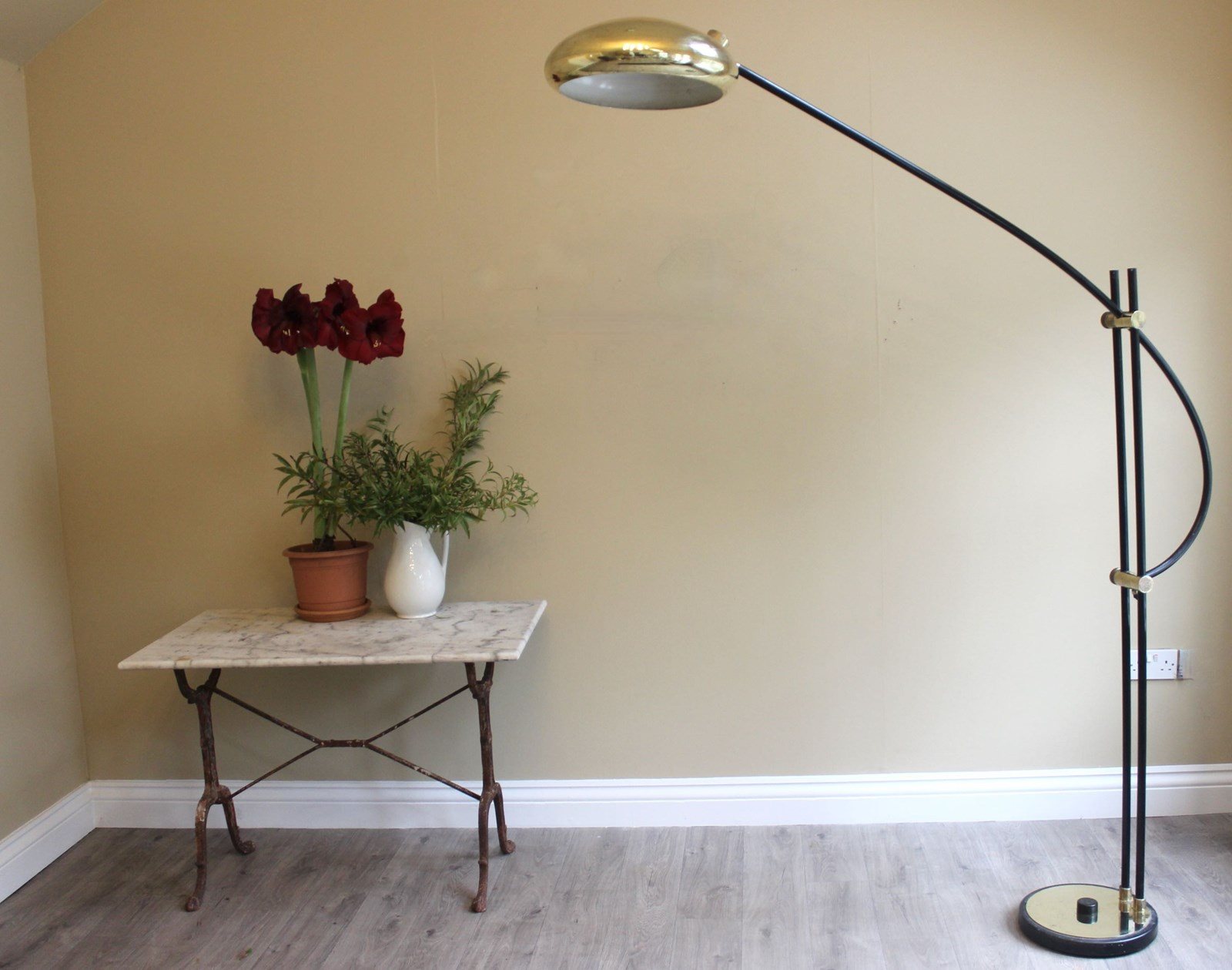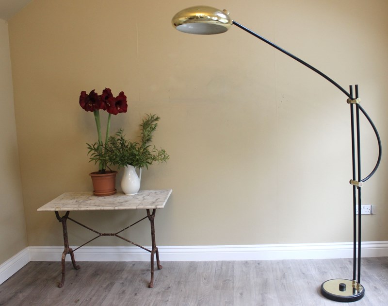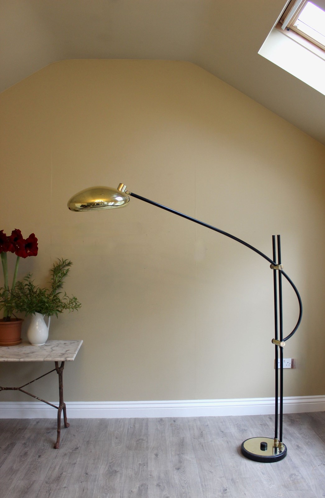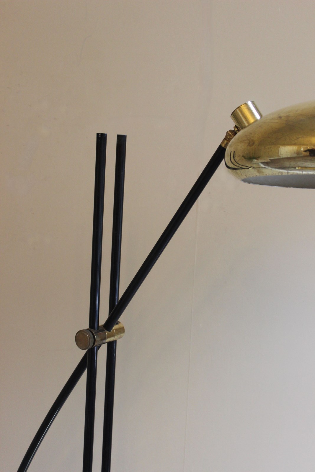 A very substantial Italian adjustable arc light amazingly well engineered - circa 1970 possibly by Reggiani but not stamped in brass and black polychrome - elegant and extremely stable - suitable for a larger area
