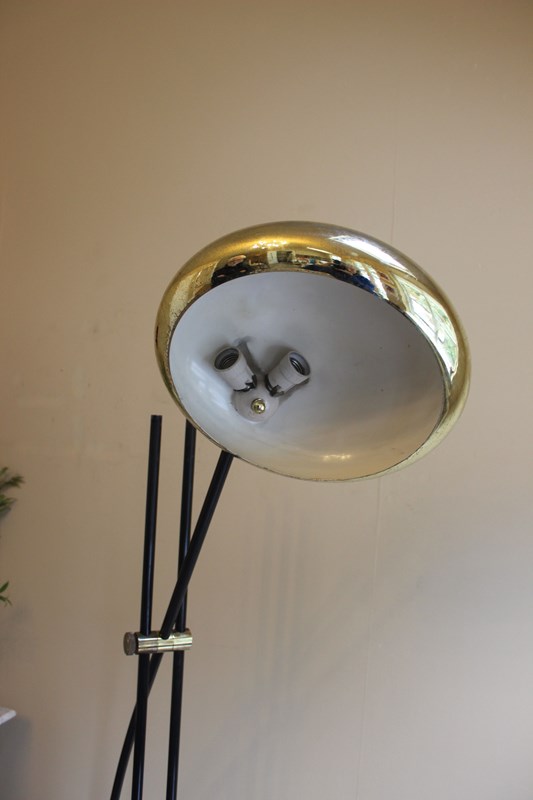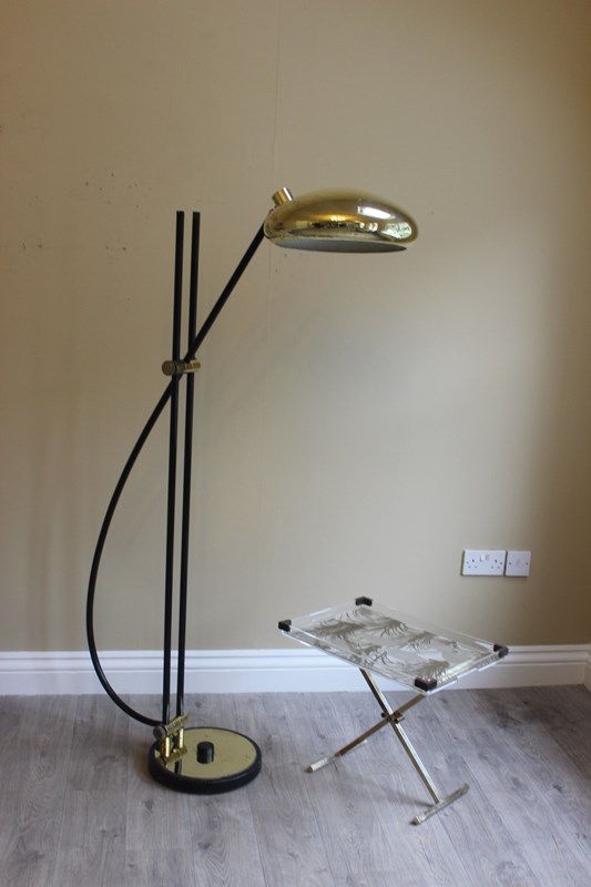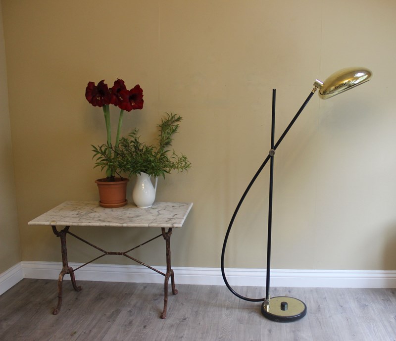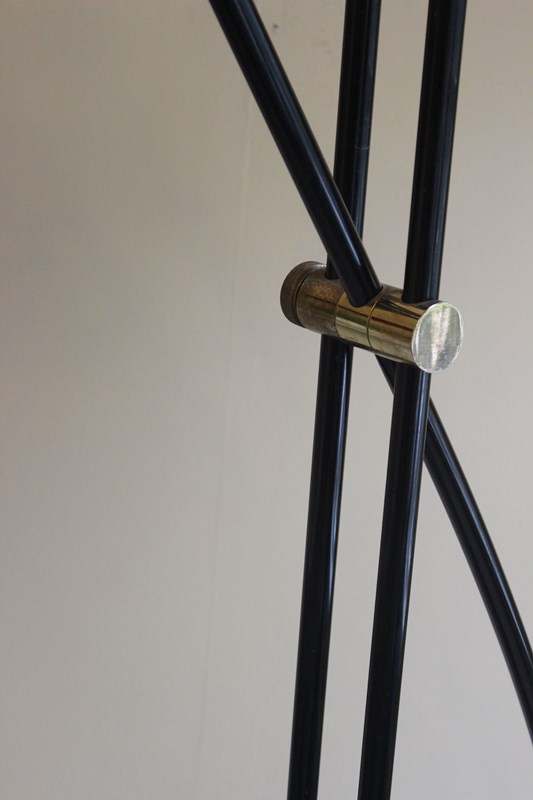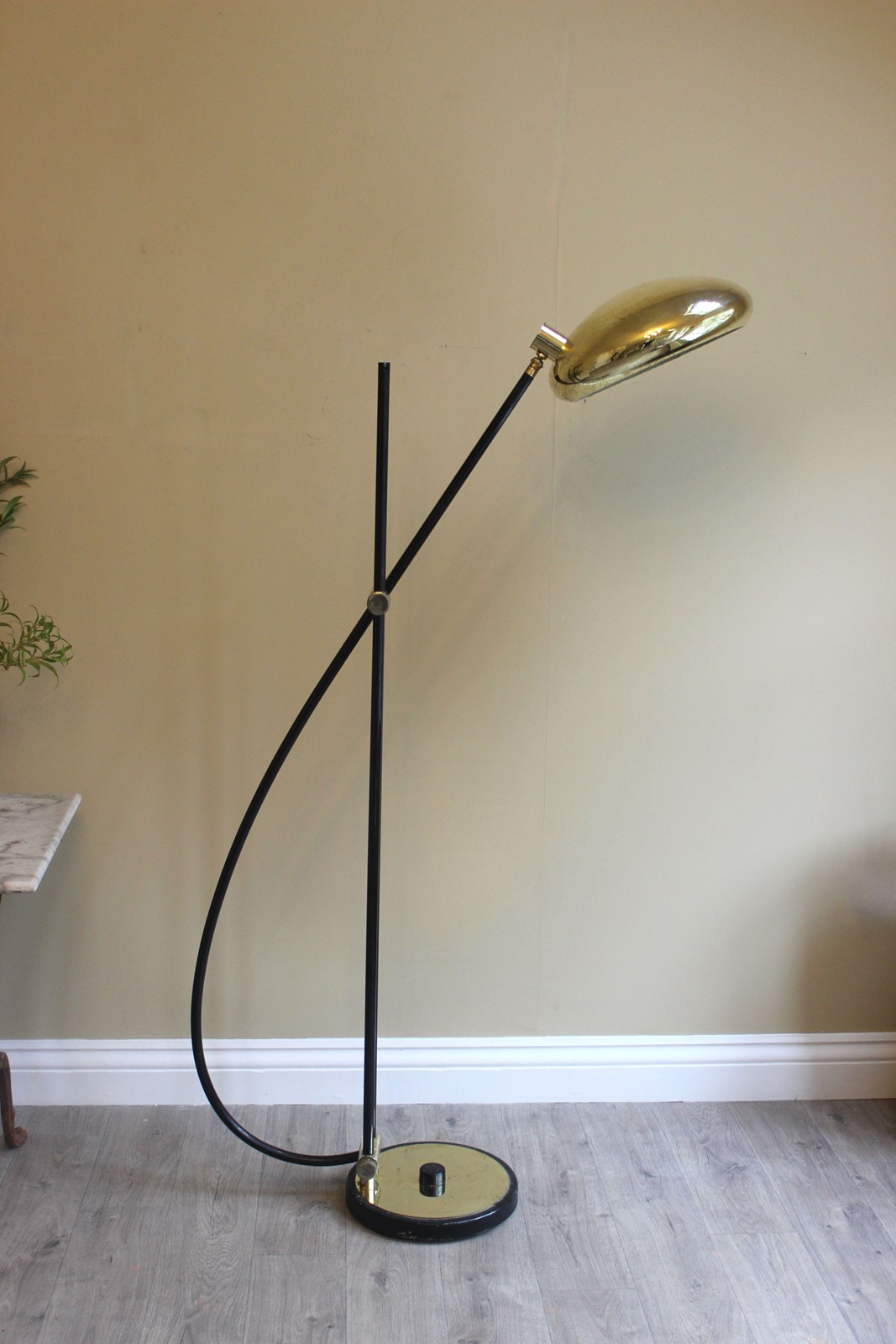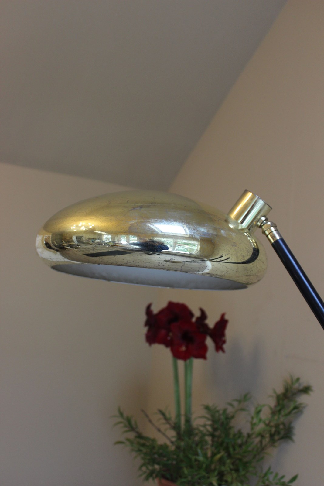 A very substantial Italian adjustable arc light amazingly well engineered - circa 1970 possibly by Reggiani but not stamped in brass and black polychrome - elegant and extremely stable - suitable for a larger area