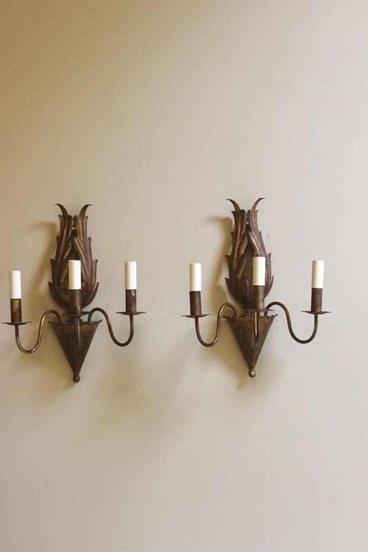 Substantial Pair Of Three Branch Gilt Metal French Wall Lights