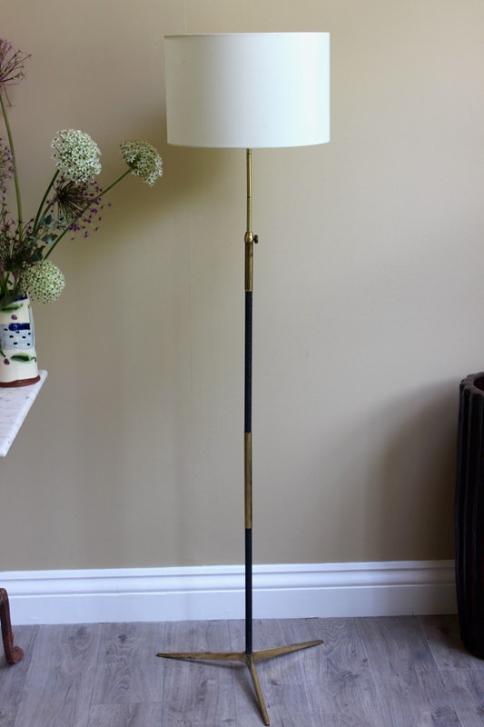 Slim profile mid century adjustable height floor lamp lowest height around 125 cms and highest 160 cms - shown with a 35 cms dia drum stock shade ( not included ).