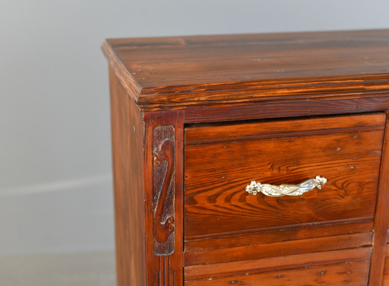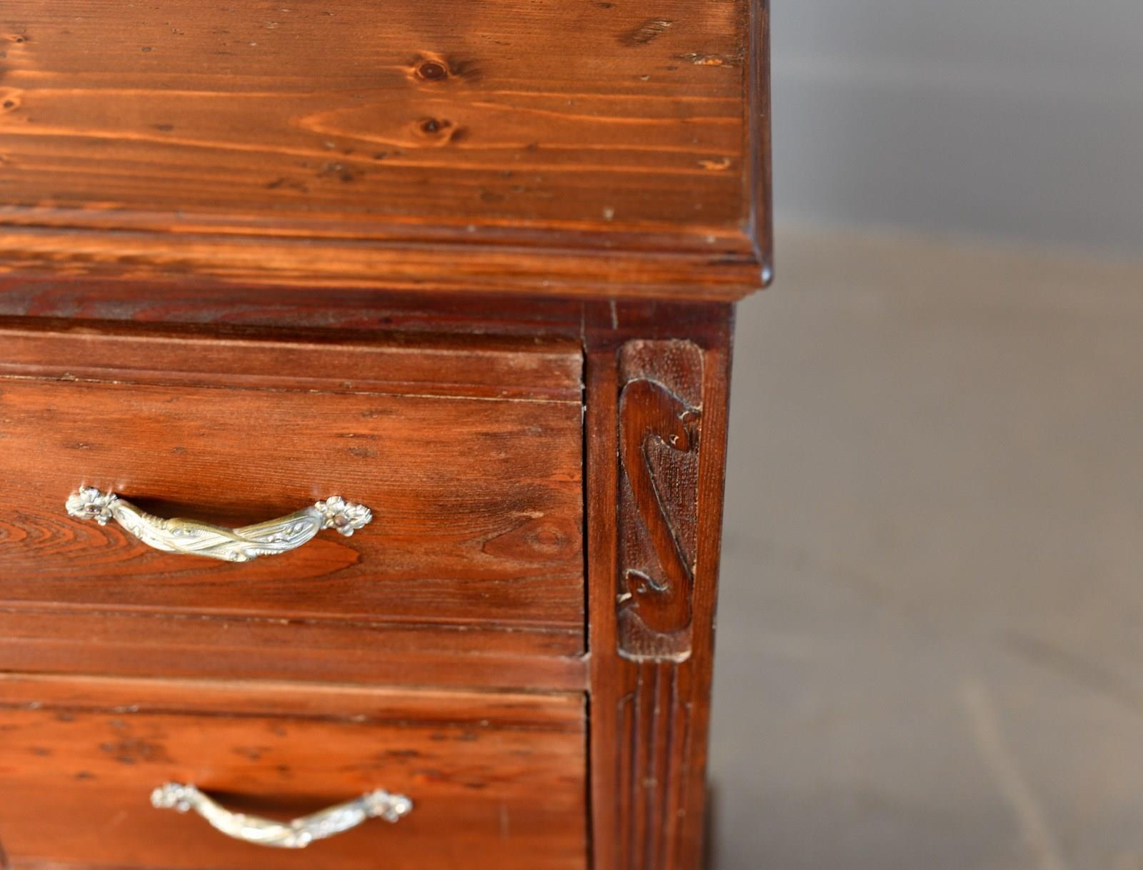 The cabinet and top show signs of wear in the form of dents and patina, the cabinet has been given a coat of wax.