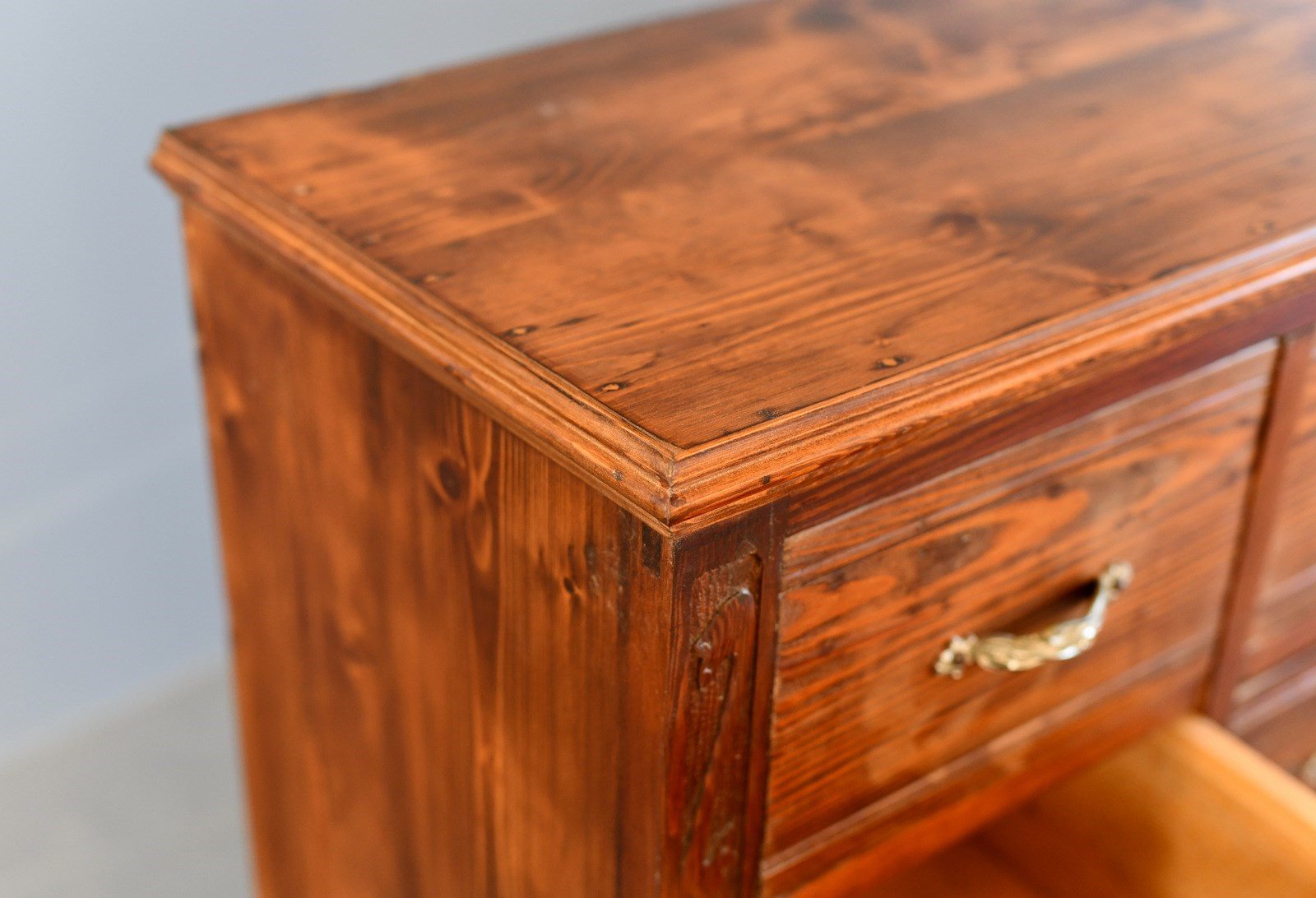 The cabinet and top show signs of wear in the form of dents and patina, the cabinet has been given a coat of wax.
