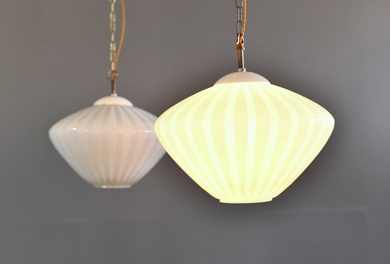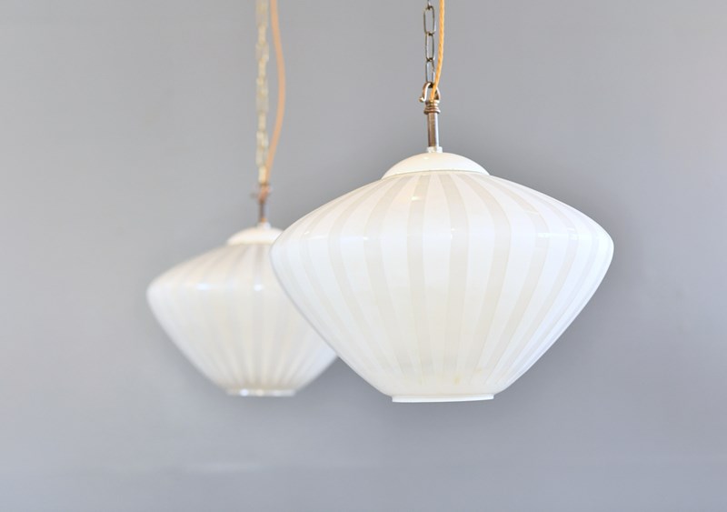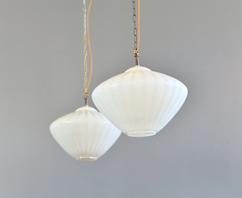 Candy Striped Opaline Pendant Lights By Schaco Circa 1930S