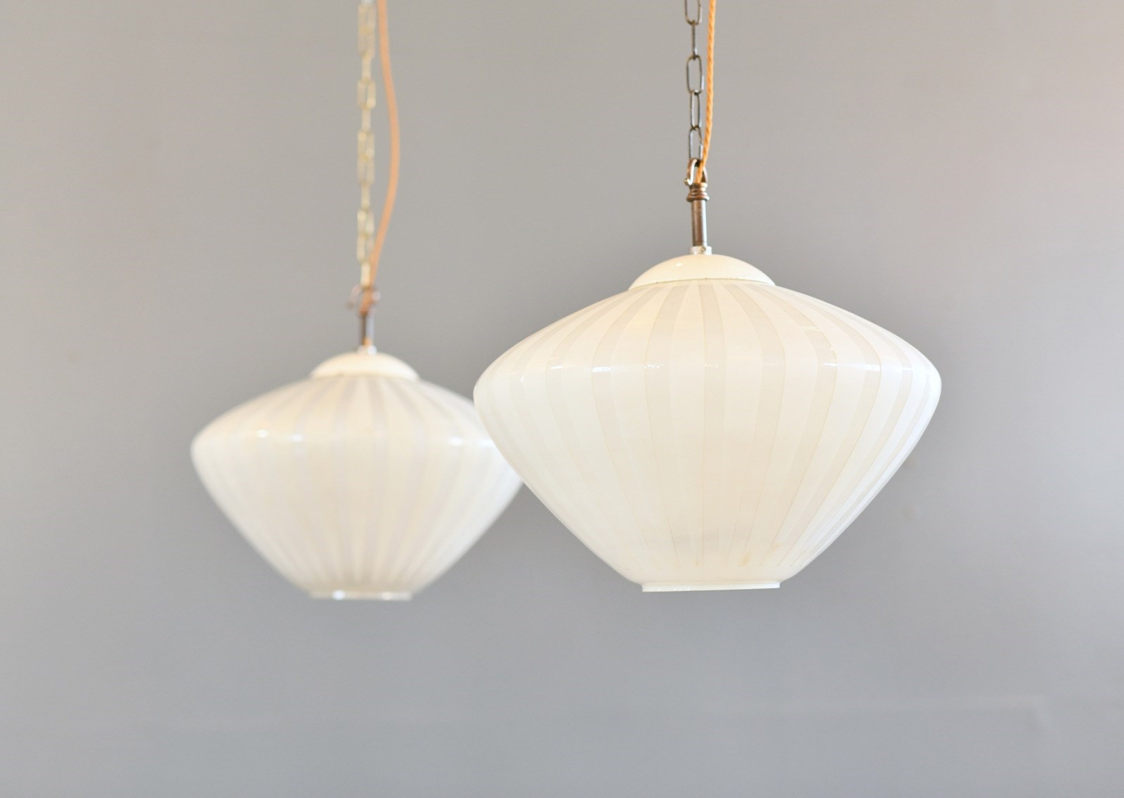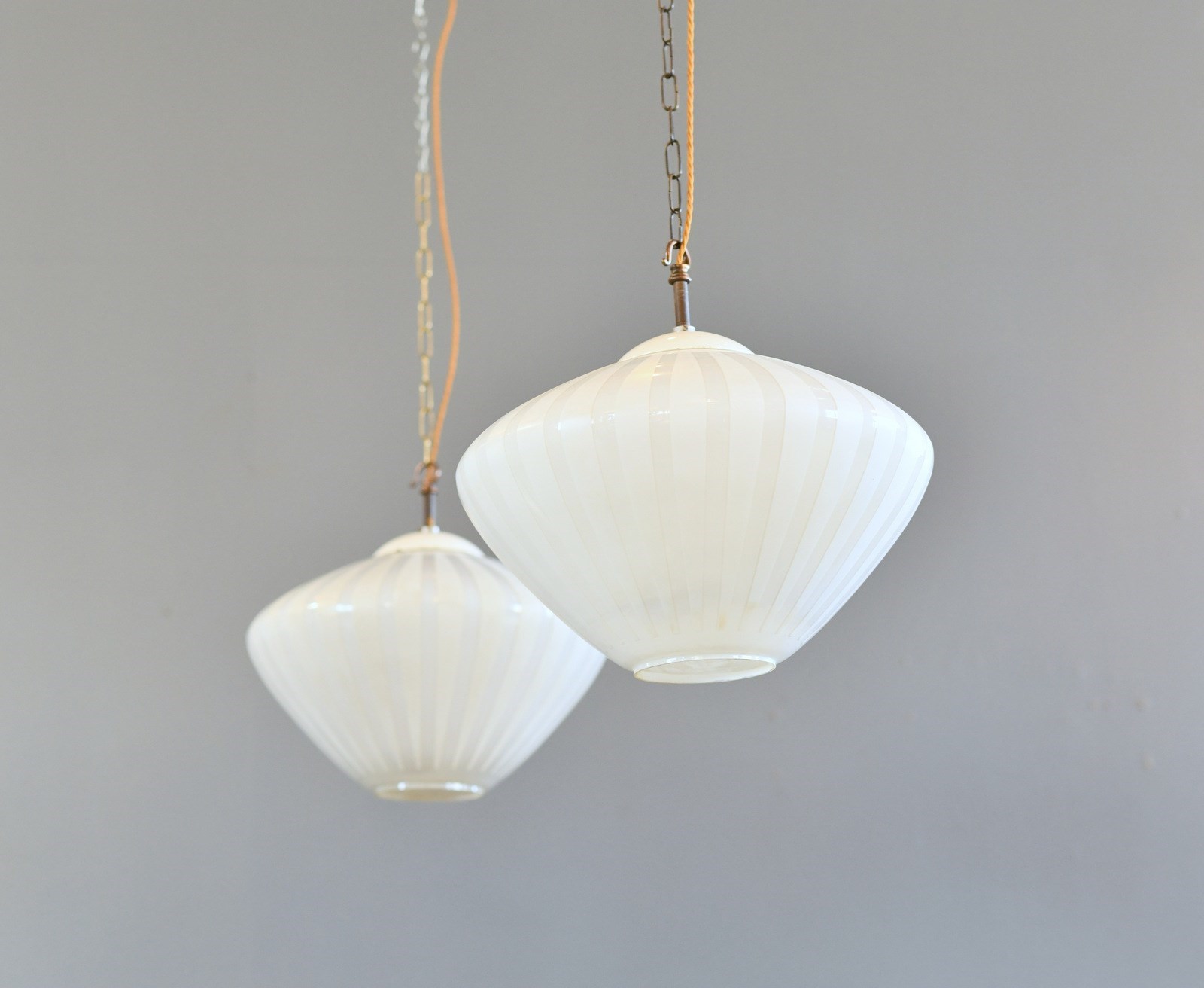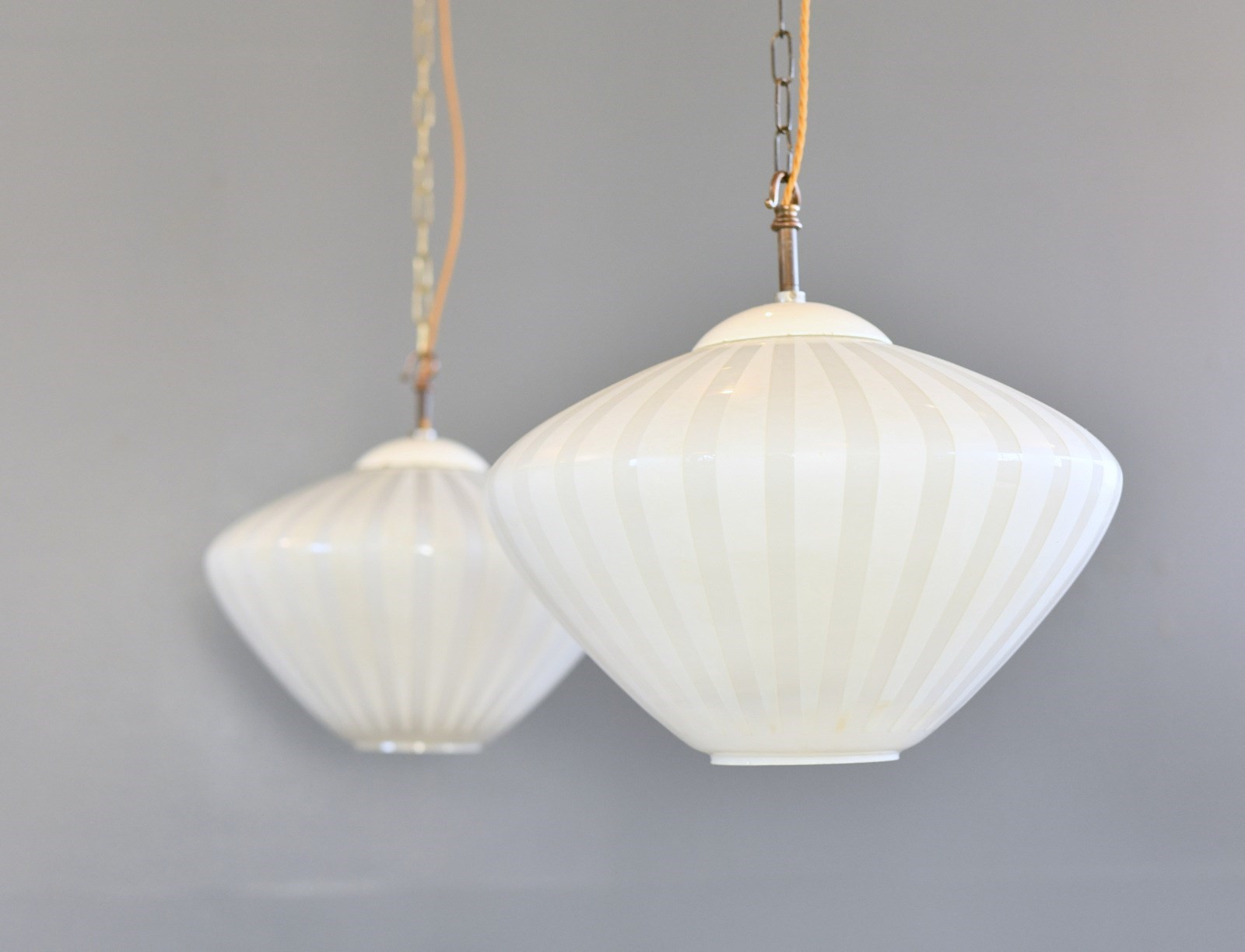 Candy Striped Opaline Pendant Lights By Schaco Circa 1930s