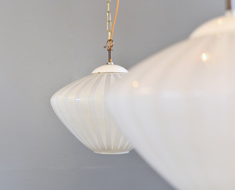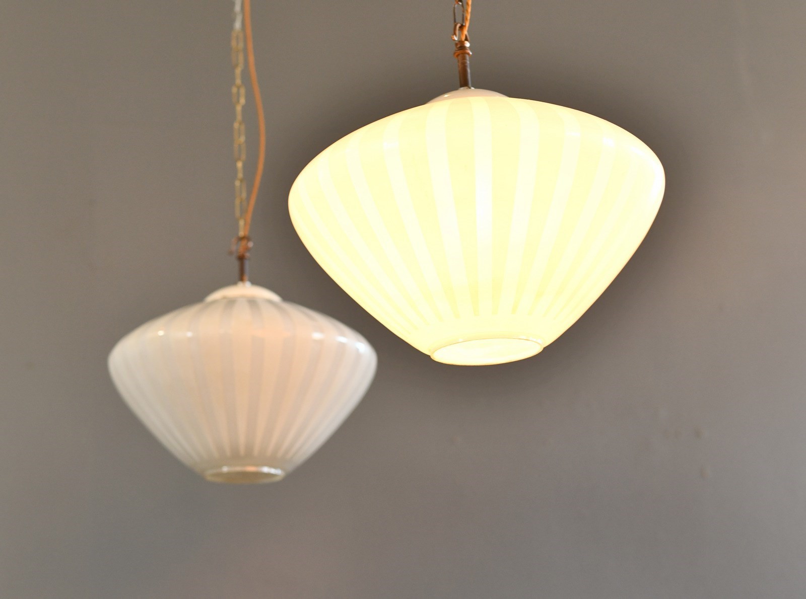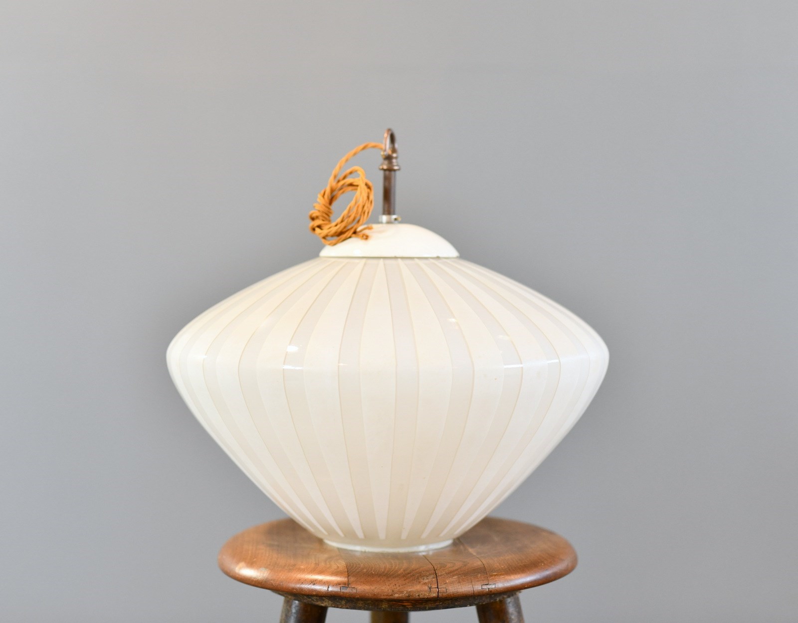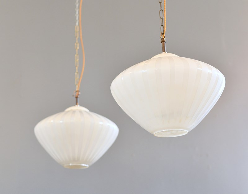 Candy Striped Opaline Pendant Lights By Schaco Circa 1930s