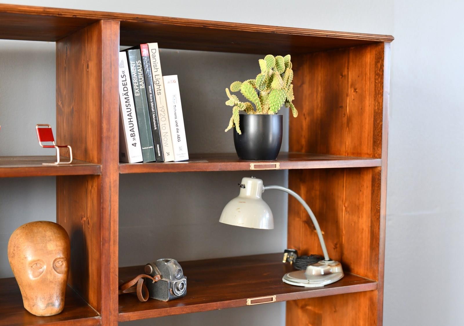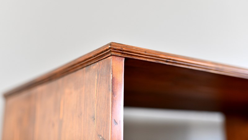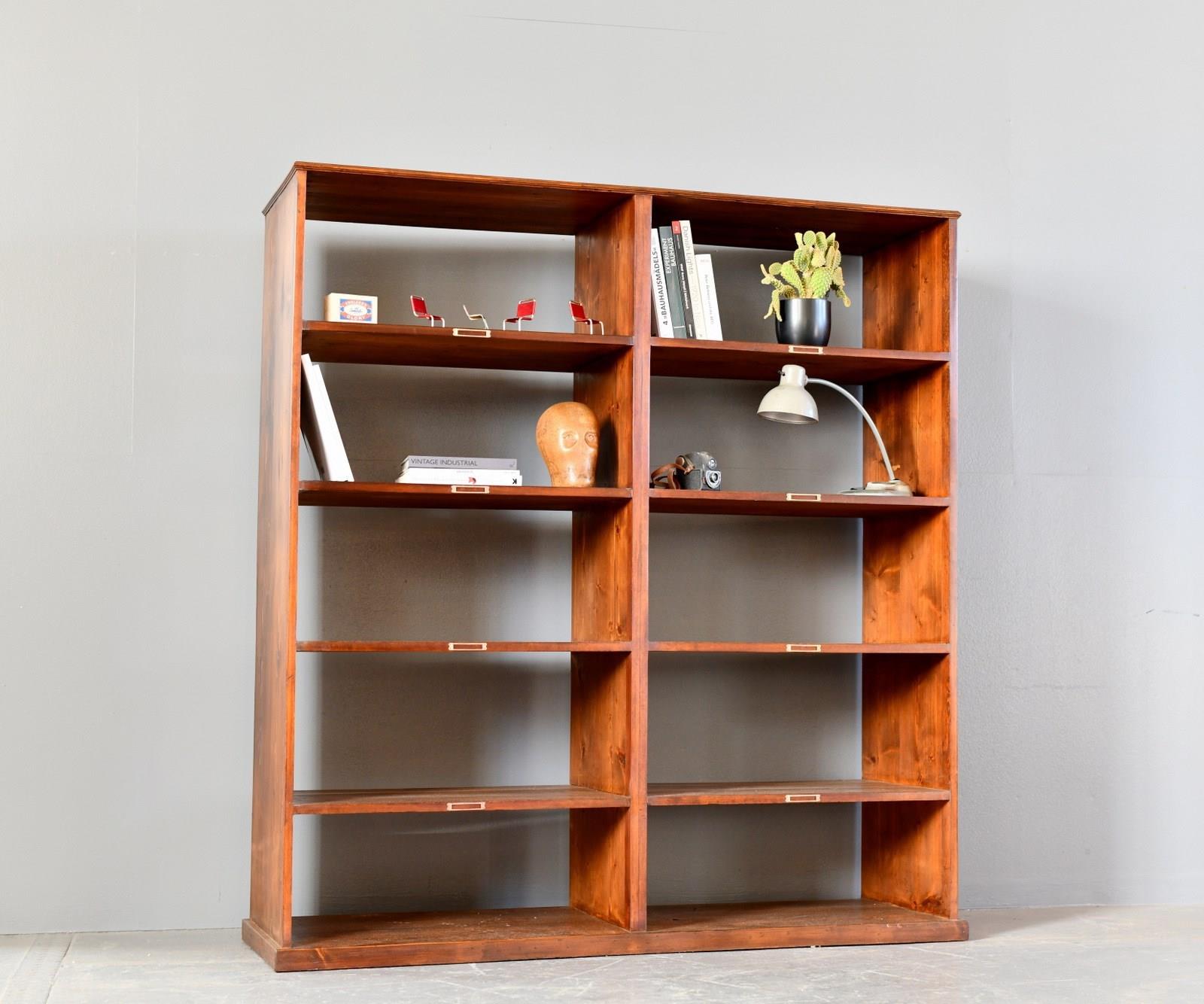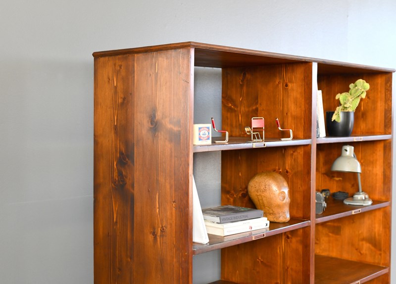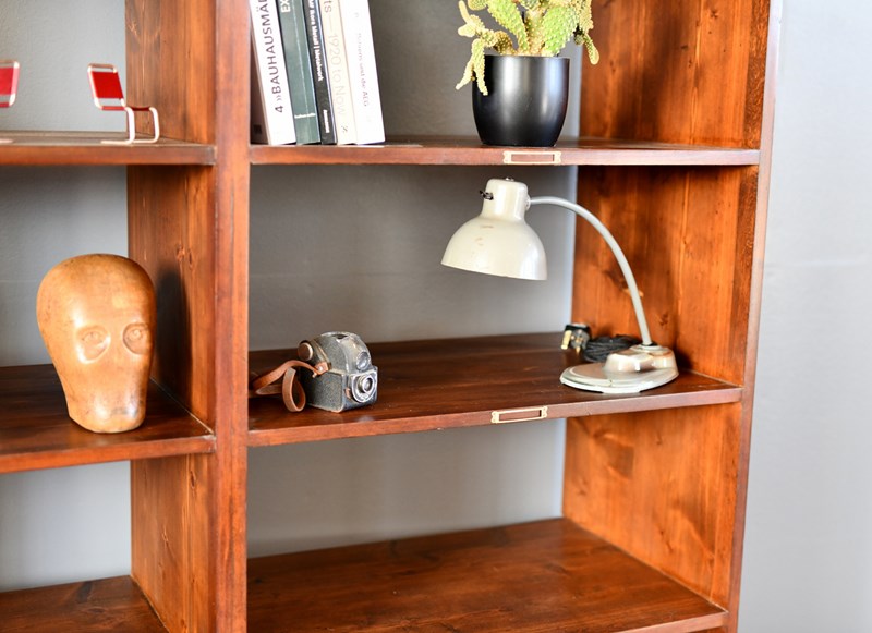 The shelves originally formed part of a large Ironmongers shop and was one of 4 sets of shelves used to store a huge variety of items along the back wall of the shop. Located in the Saarland region of Germany, the shop and full interior was built in 1907 and made by local carpenters using Pine & Larch from the surrounding forests of the southern Mosel valley. Unfortunately the shop closed after over 100 years of business, our team were then tasked with saving and painstakingly dismantling the entire shop interior.