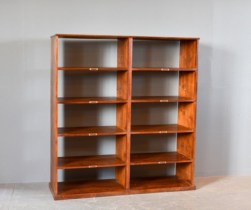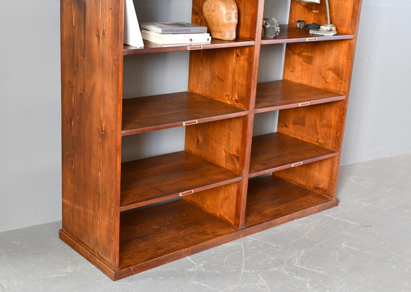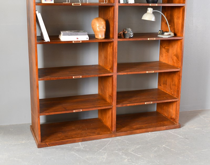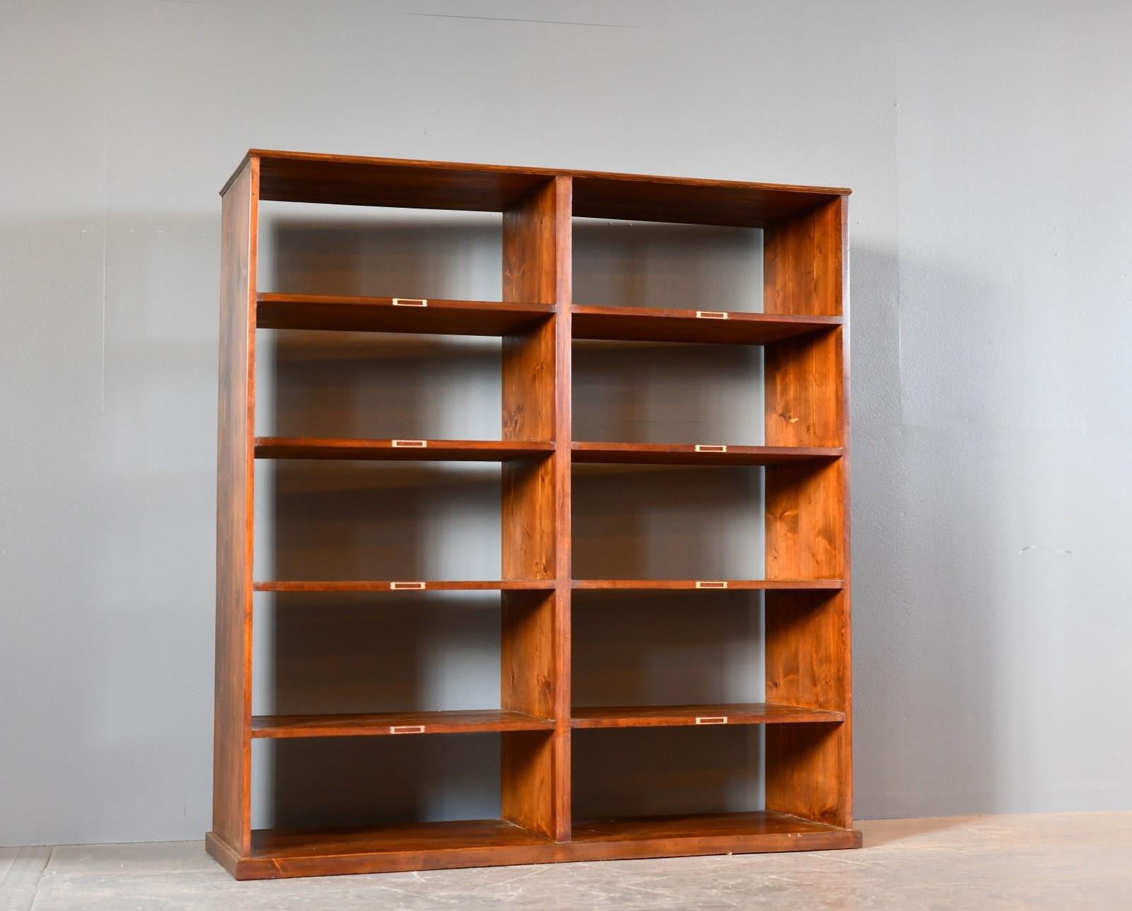 The shelves originally formed part of a large Ironmongers shop and was one of 4 sets of shelves used to store a huge variety of items along the back wall of the shop. Located in the Saarland region of Germany, the shop and full interior was built in 1907 and made by local carpenters using Pine & Larch from the surrounding forests of the southern Mosel valley. Unfortunately the shop closed after over 100 years of business, our team were then tasked with saving and painstakingly dismantling the entire shop interior.
