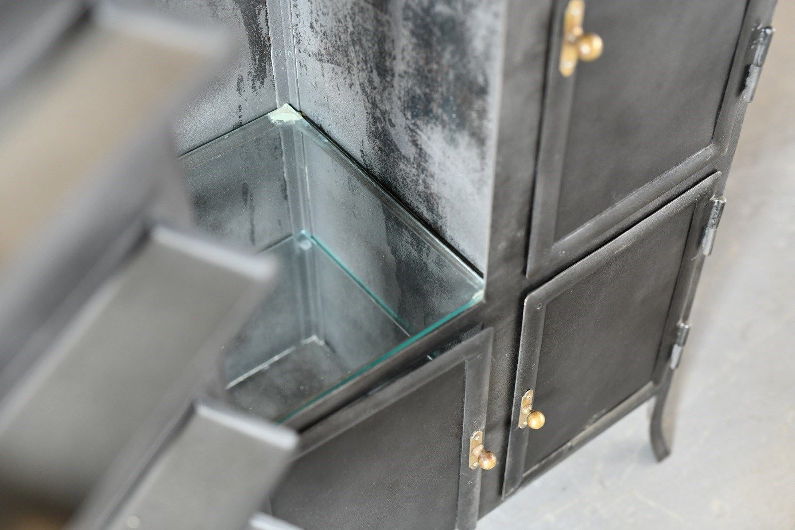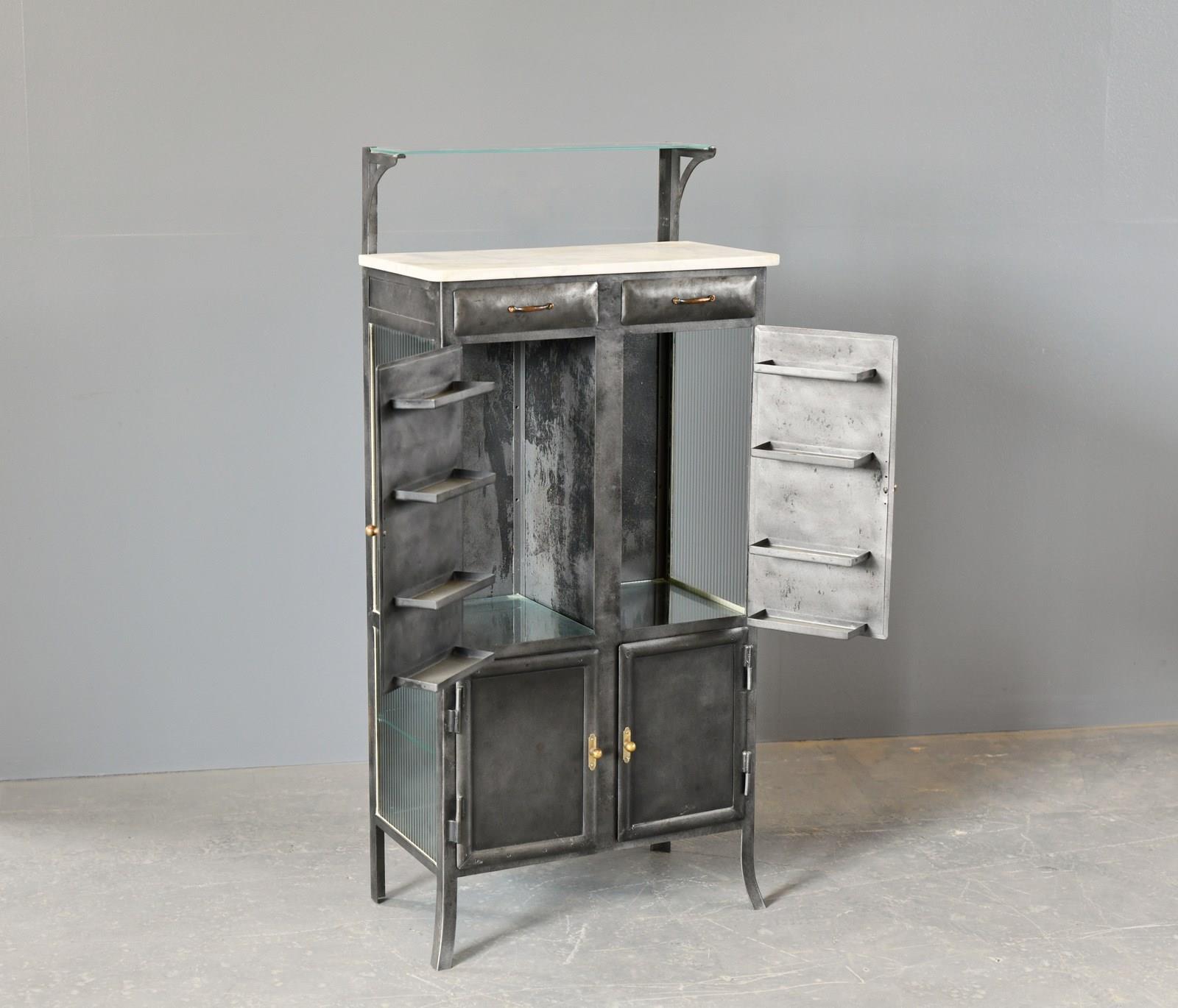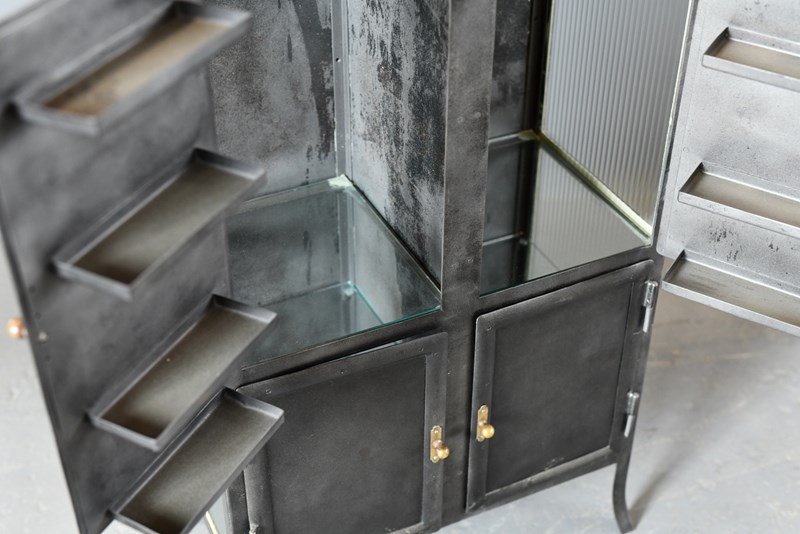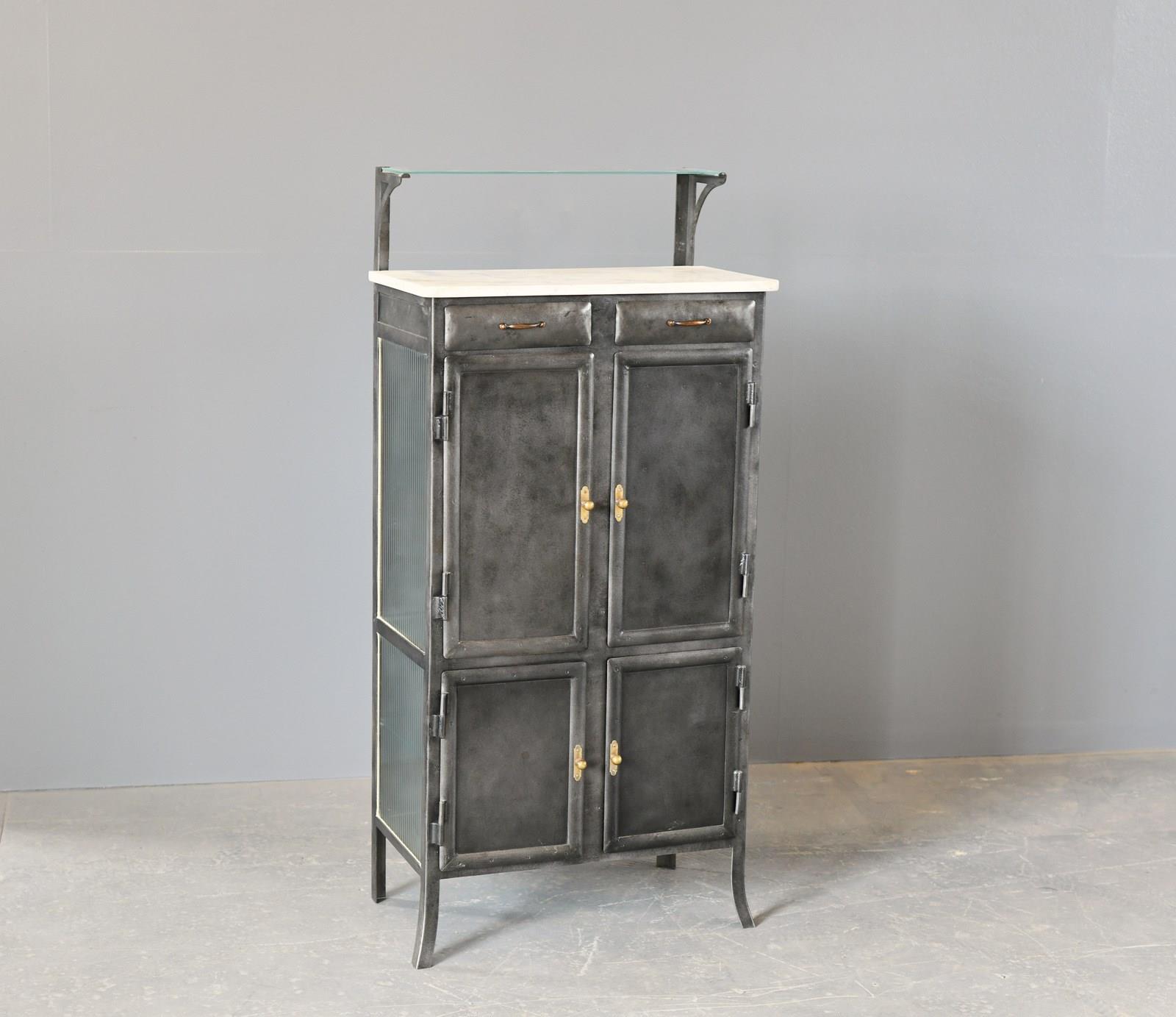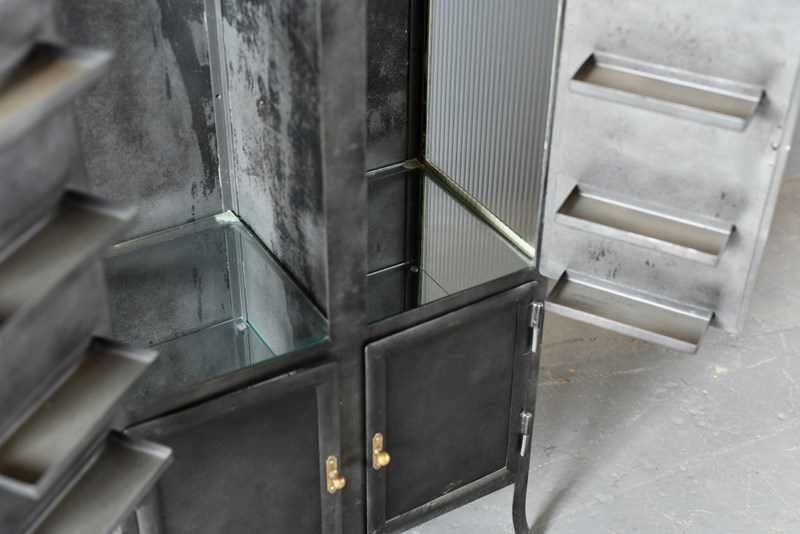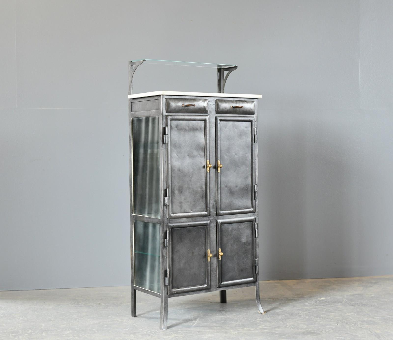 All the doors open and latch smoothly, the entire cabinet has been sandblasted, cleaned and clear lacquered. There will be some wear in the form of dents to the metal sheeting on the sides of the cabinet.
