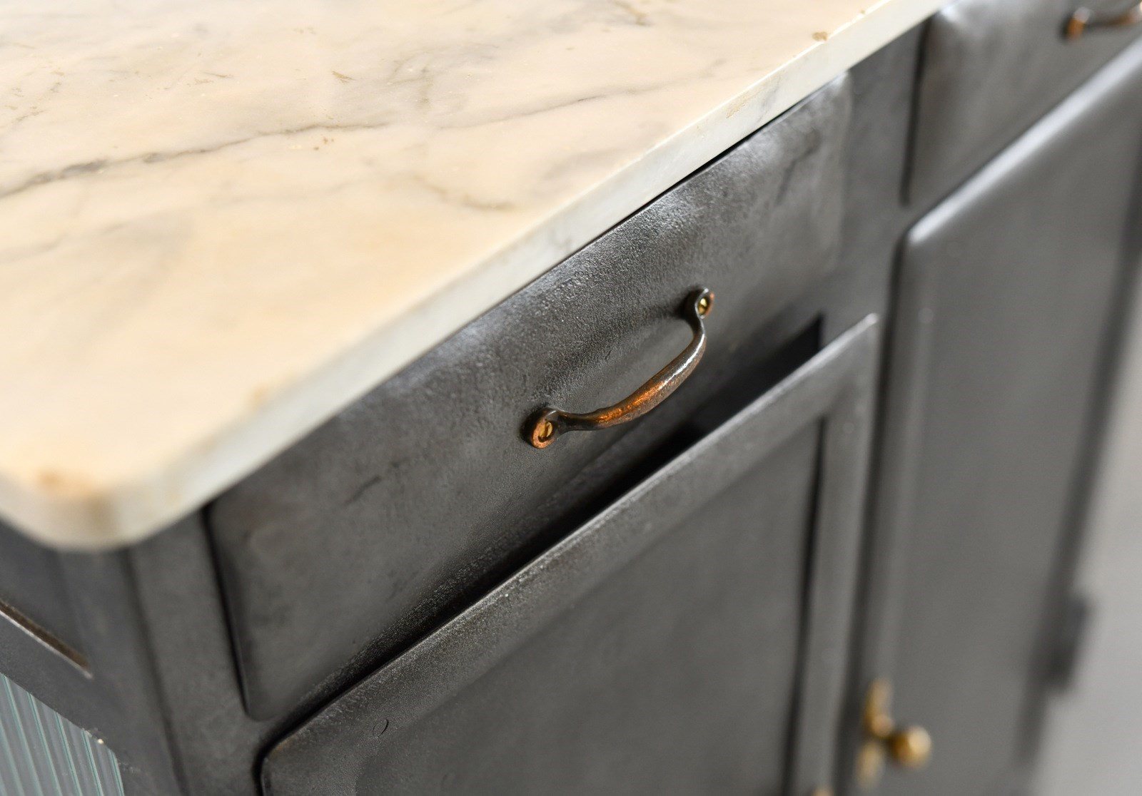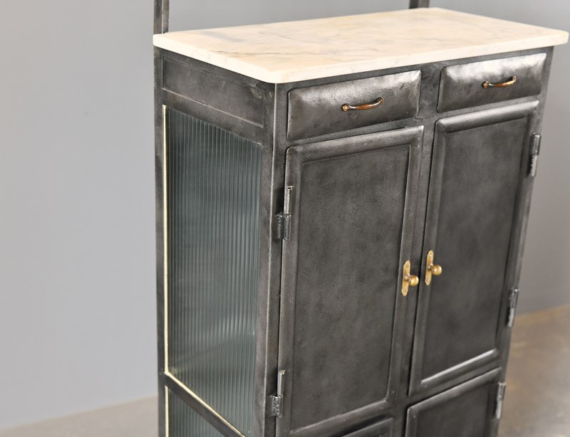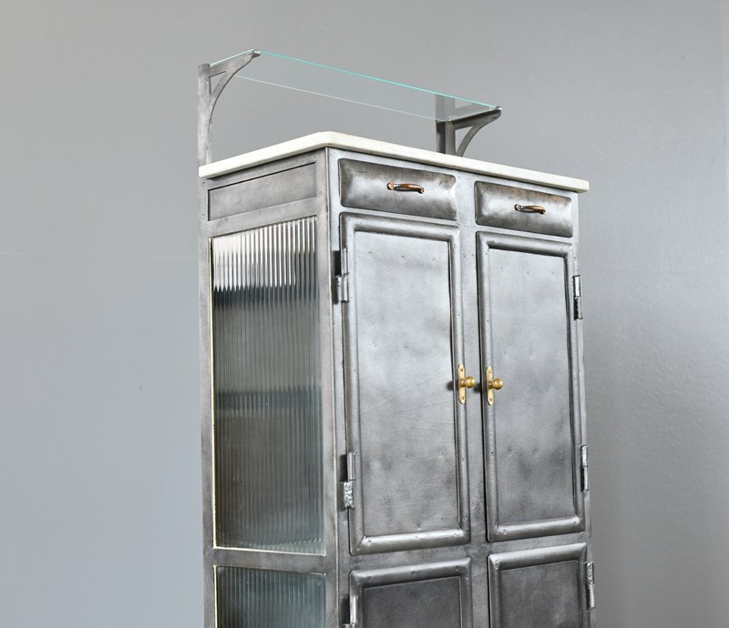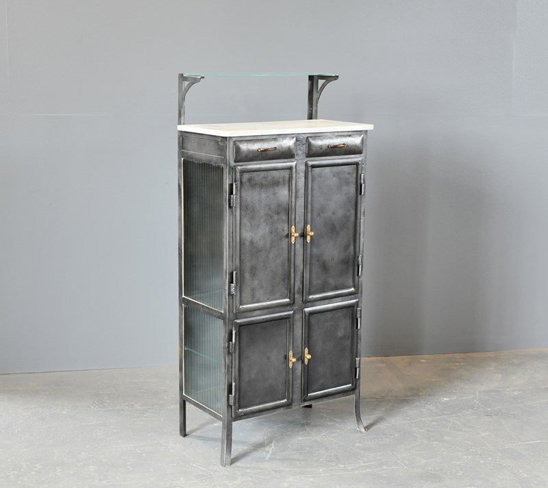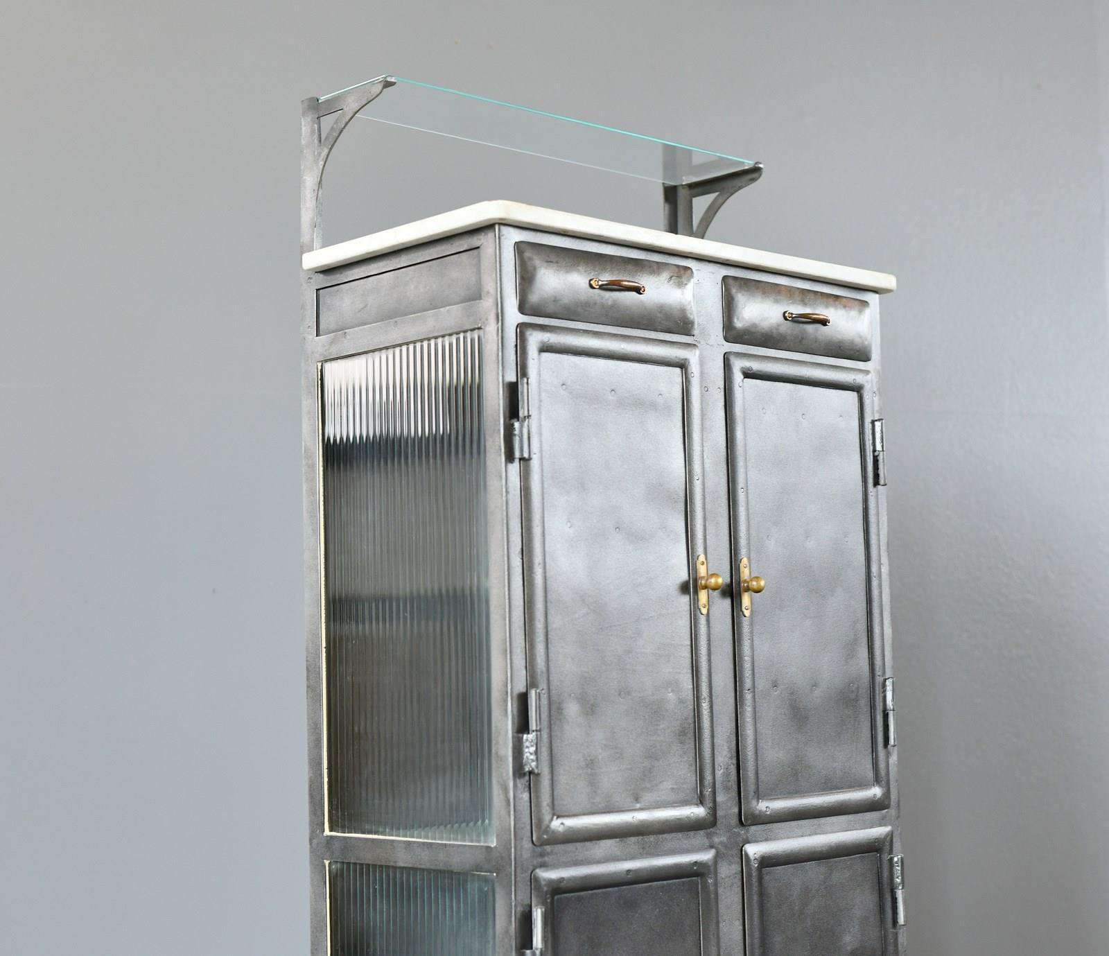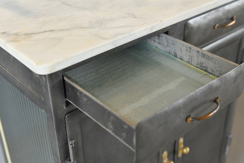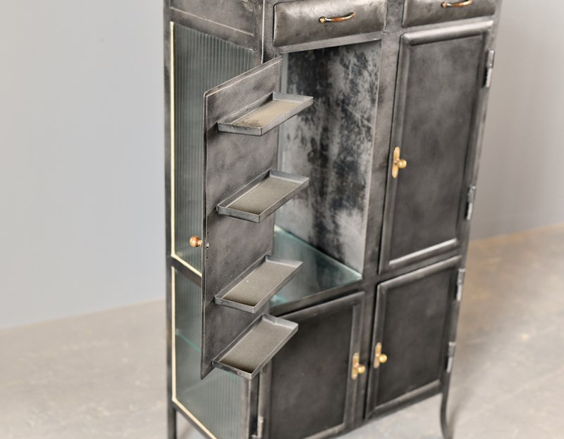 All the doors open and latch smoothly, the entire cabinet has been sandblasted, cleaned and clear lacquered. There will be some wear in the form of dents to the metal sheeting on the sides of the cabinet.