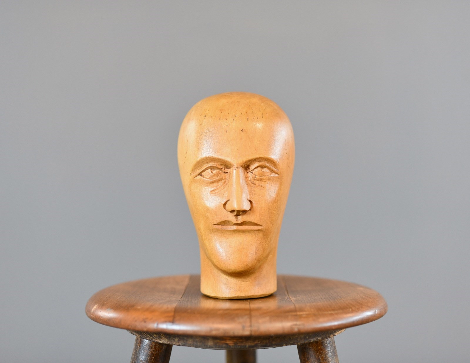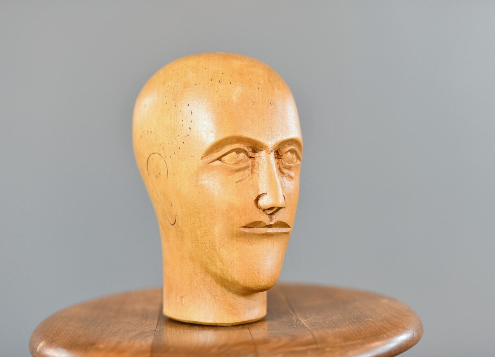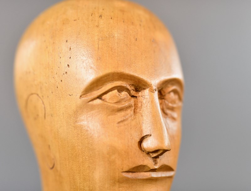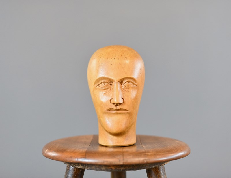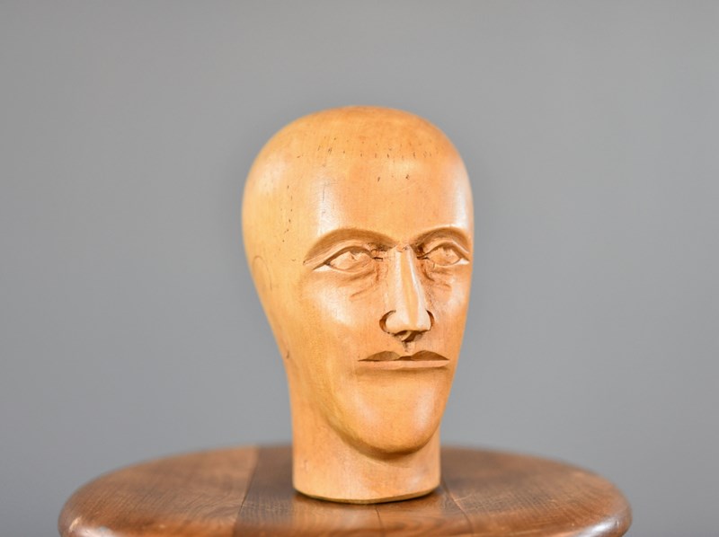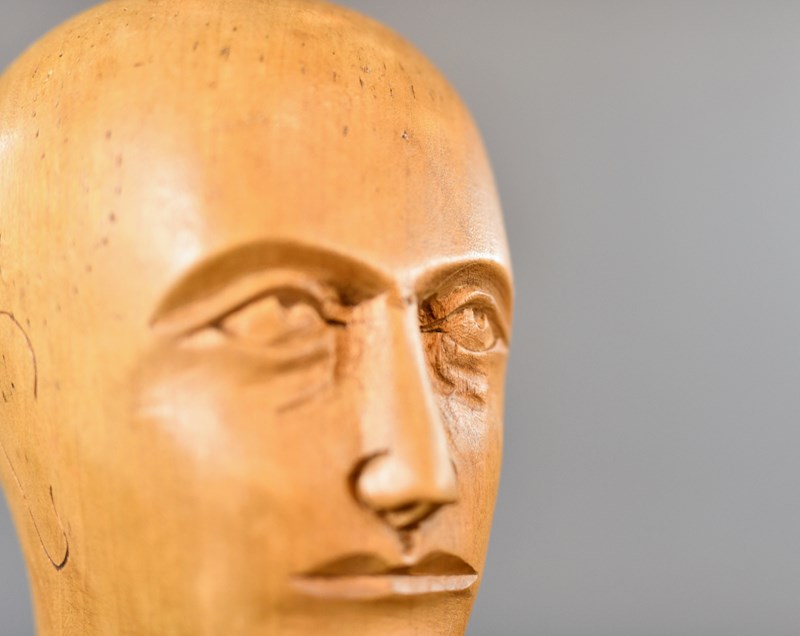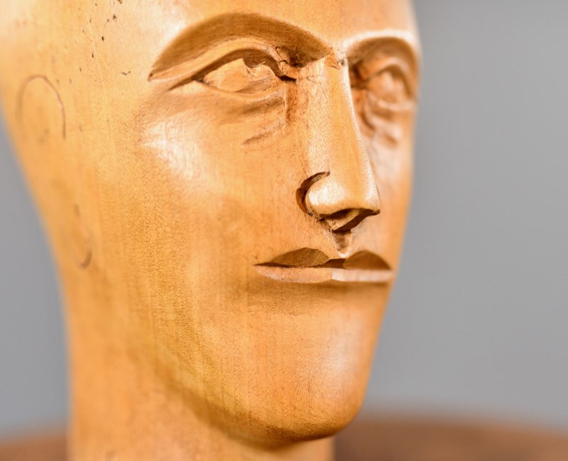 German Carved Wooden Milliners Head Circa 1910
