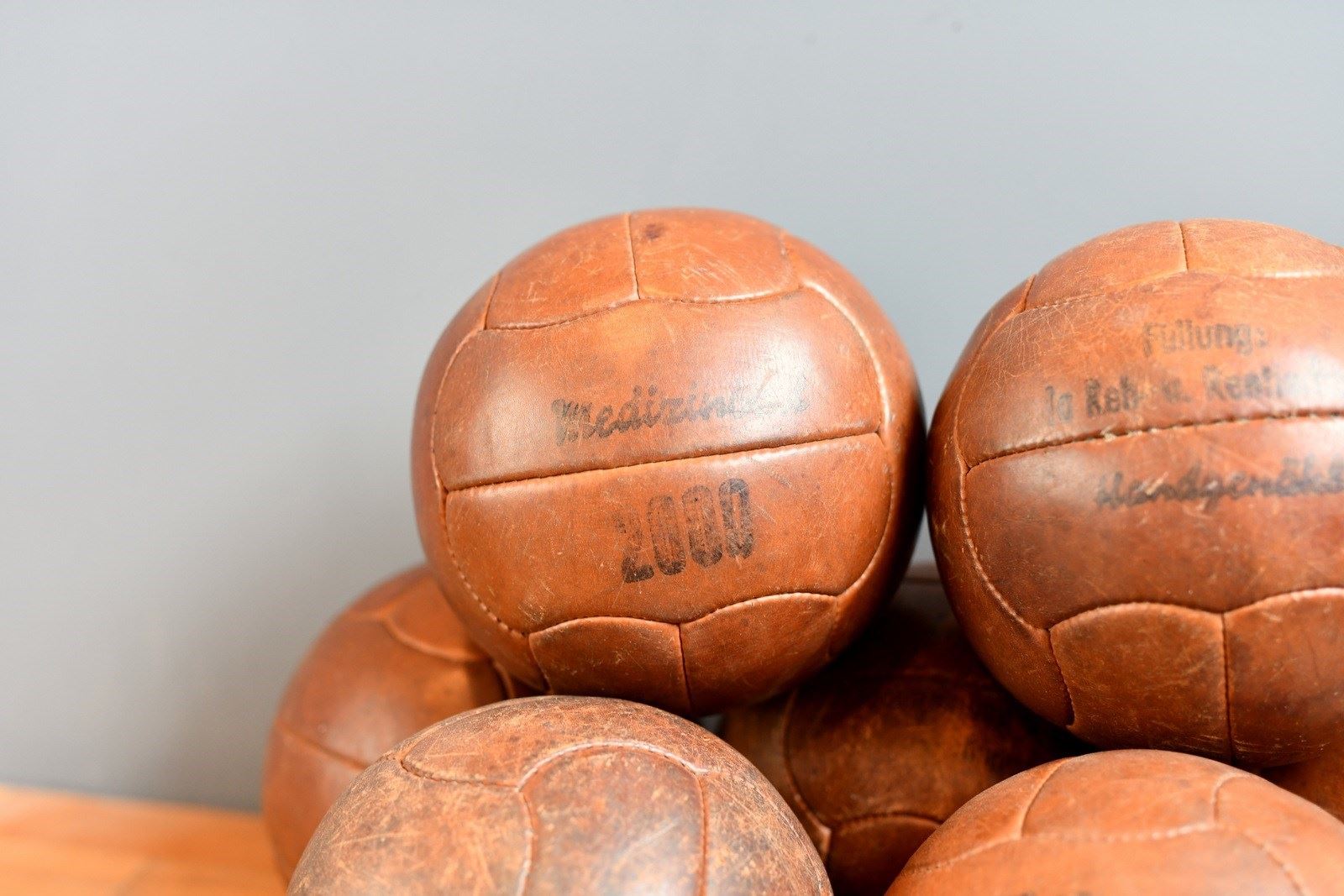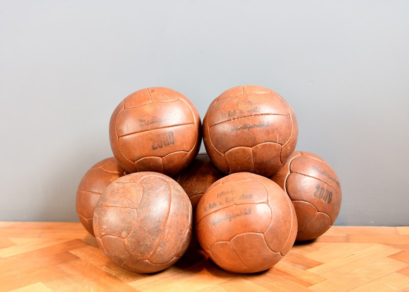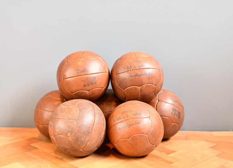 German Leather Medicine Balls Circa 1940s
