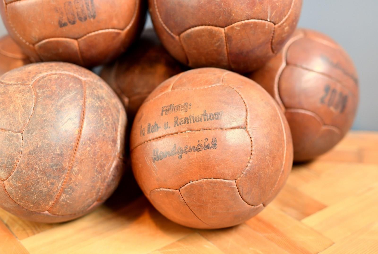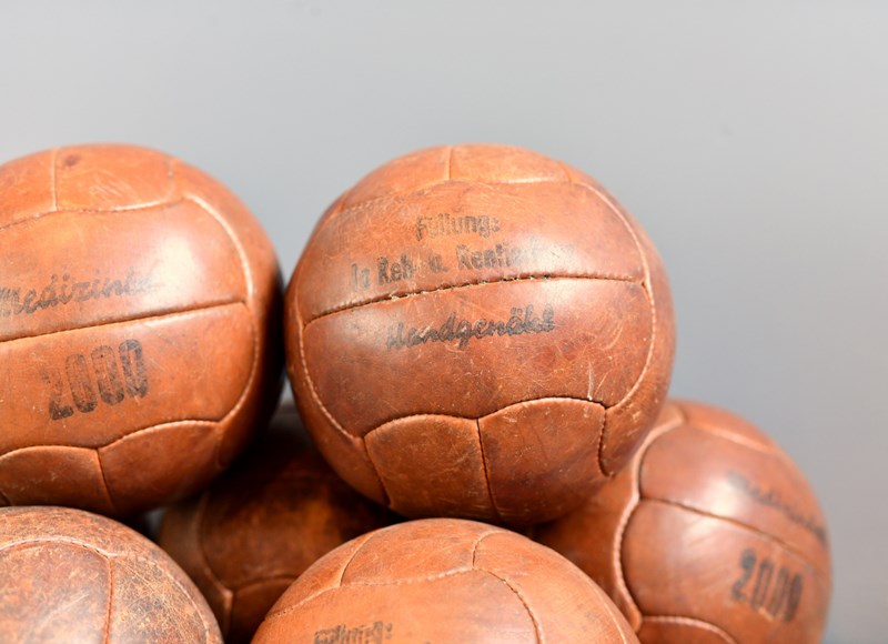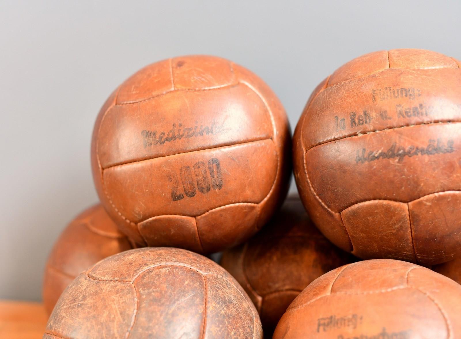German Leather Medicine Balls Circa 1940S