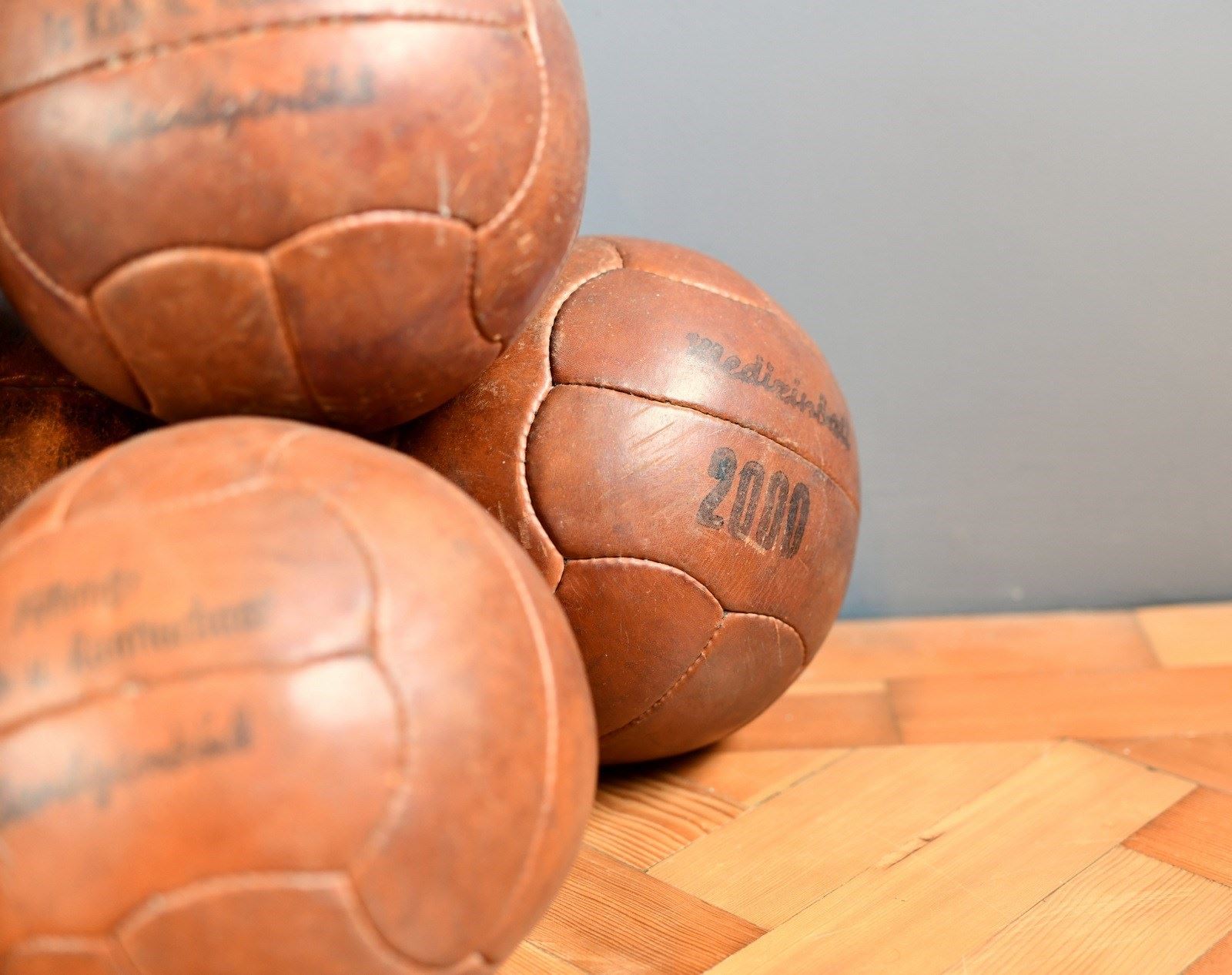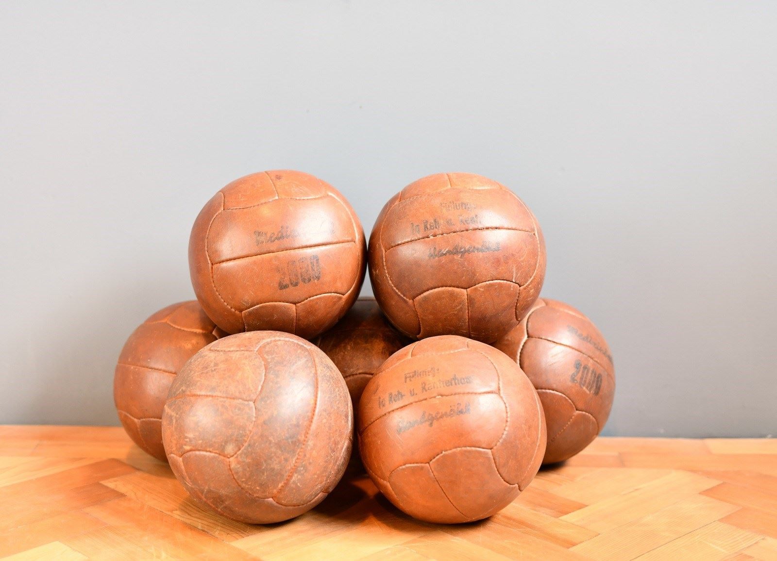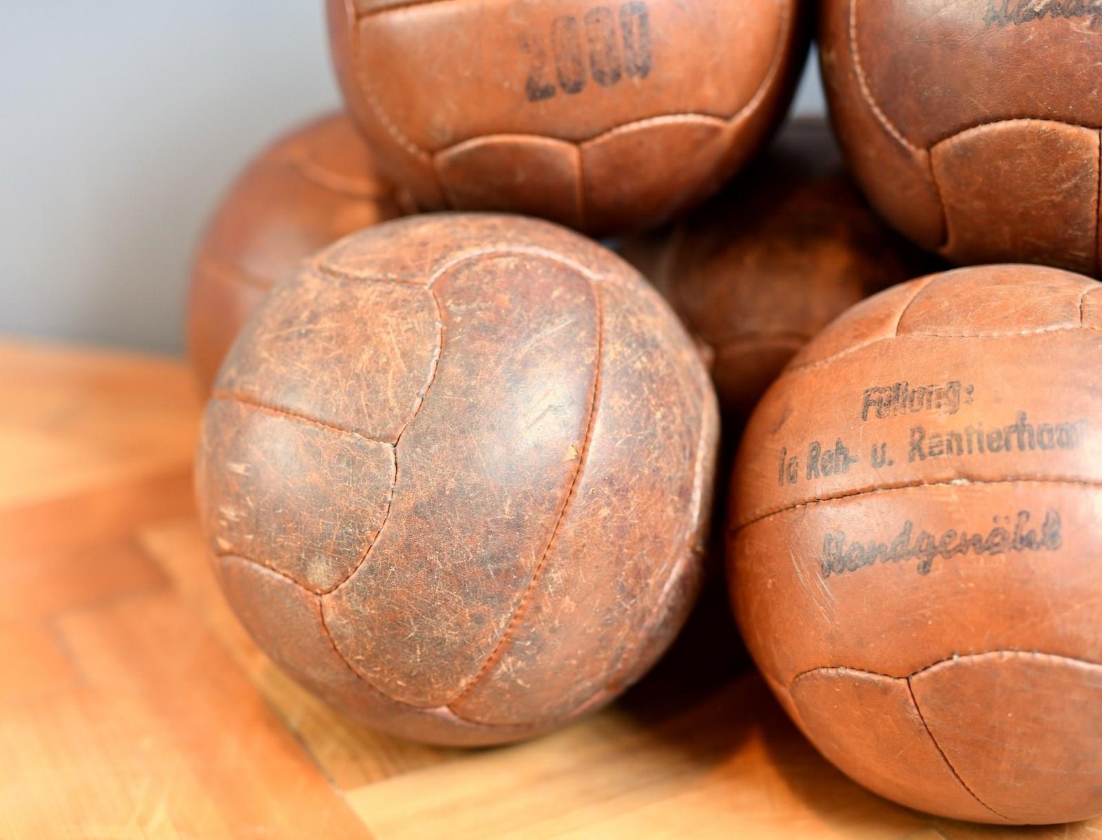 German Leather Medicine Balls Circa 1940S