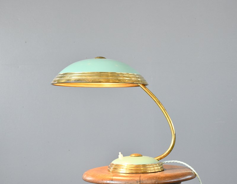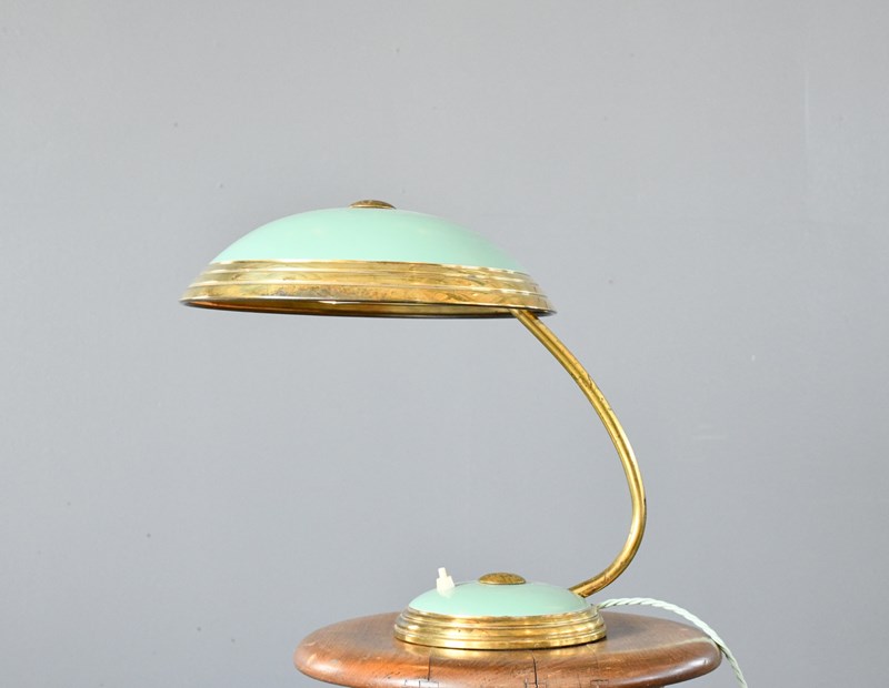 Green And Brass Table Lamp By Helo Circa 1950S