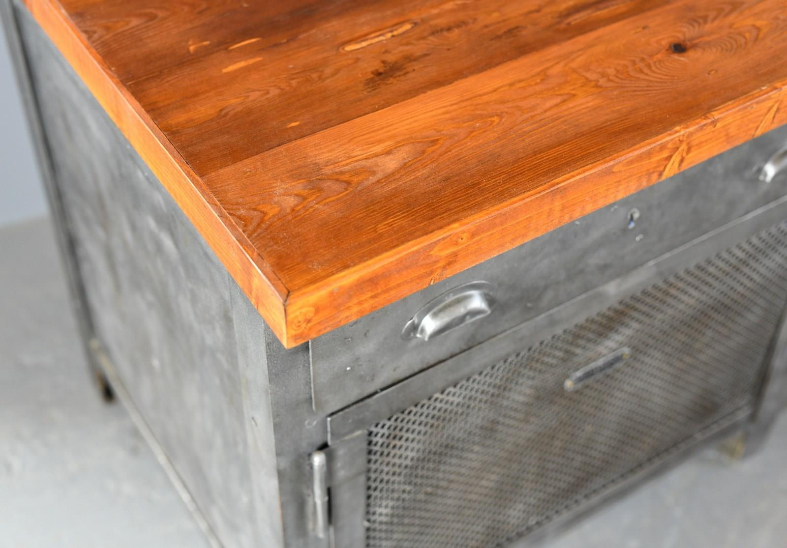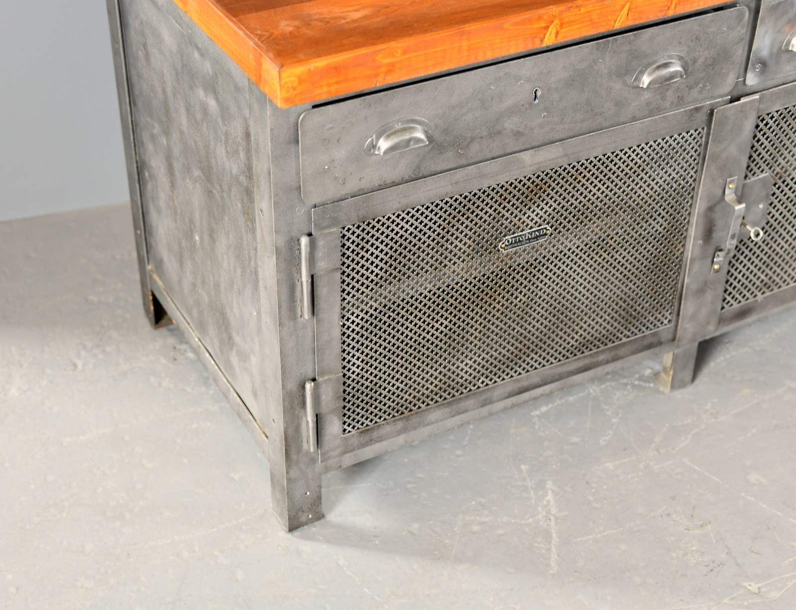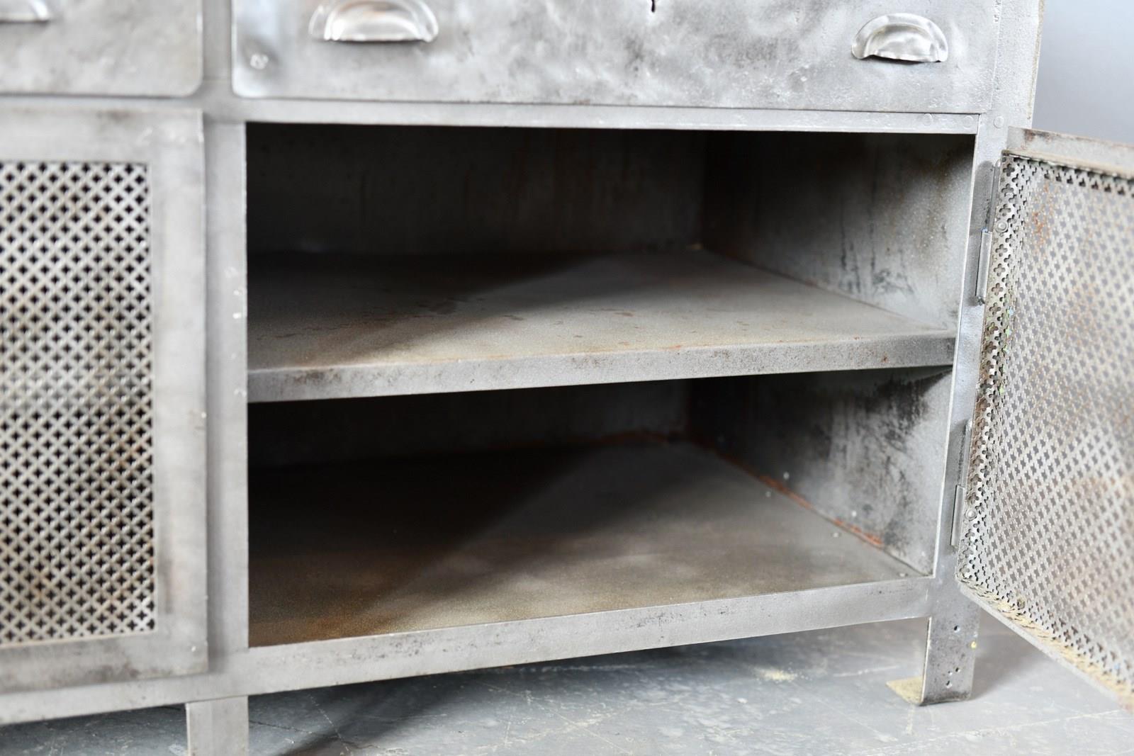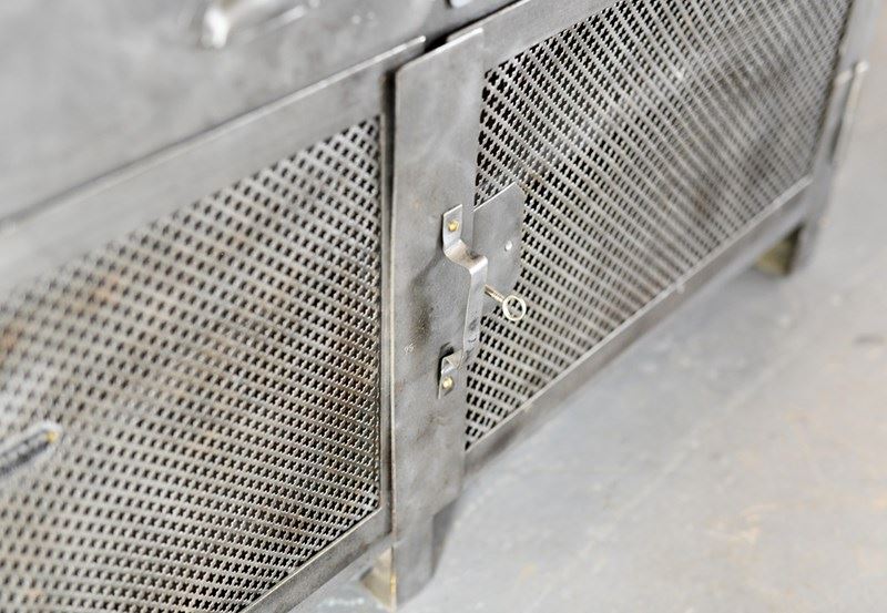 All the doors open and latch smoothly, the entire cabinet has been sandblasted, cleaned and clear lacquered. There will be some wear in the form of dents to the metal sheeting on the sides of the cabinet.