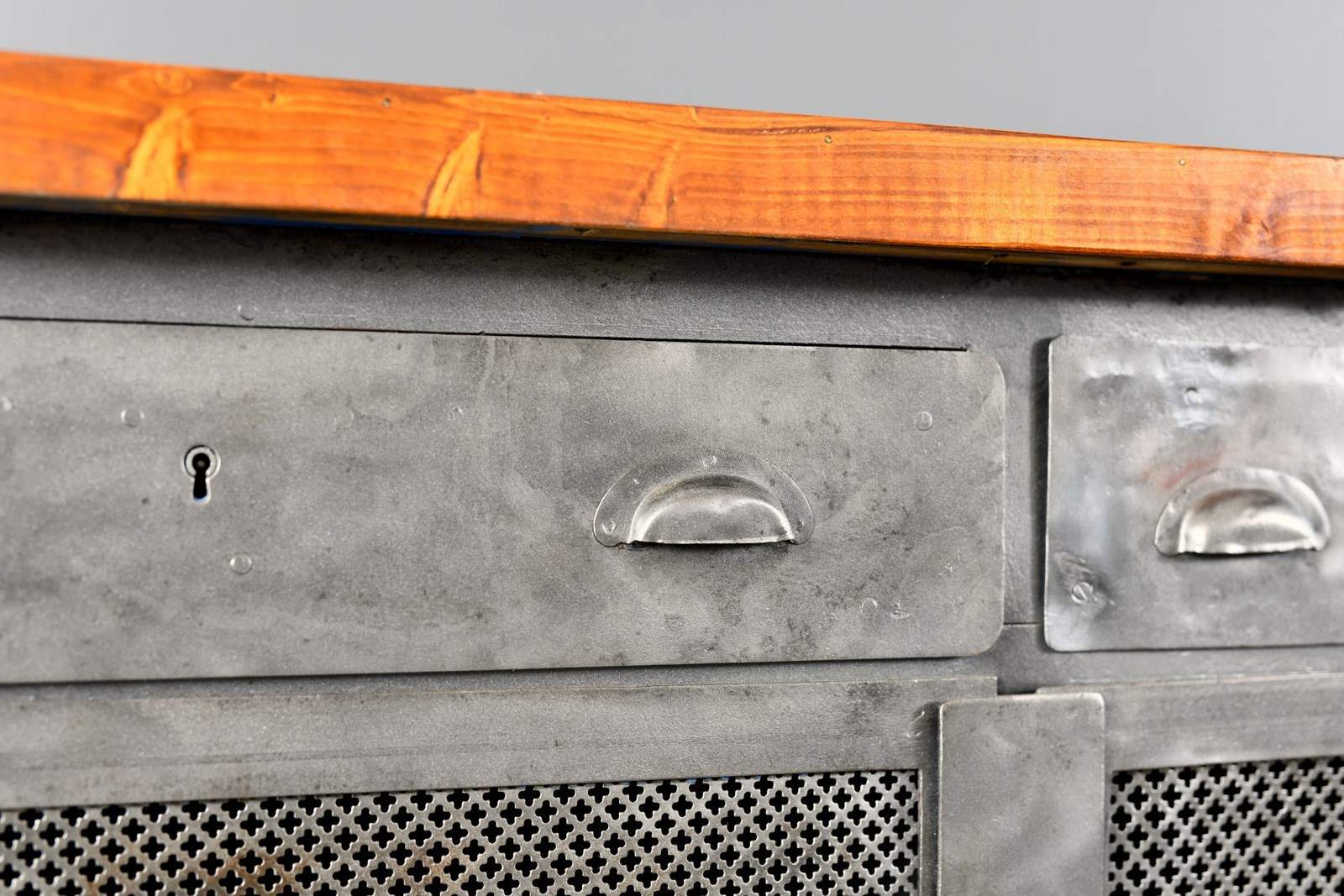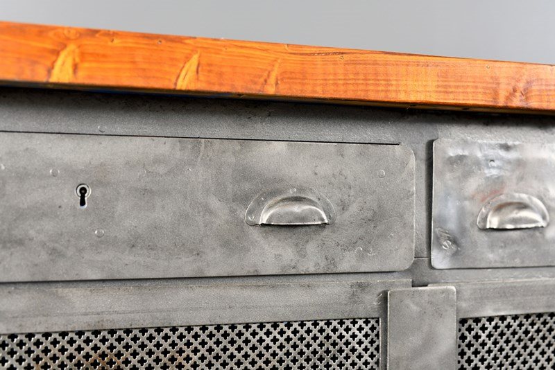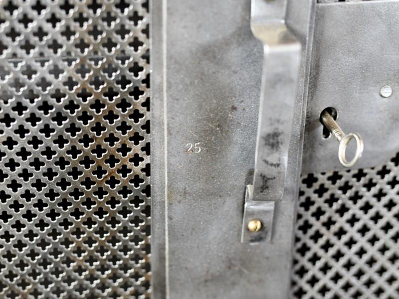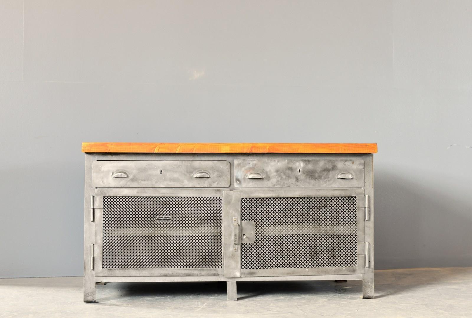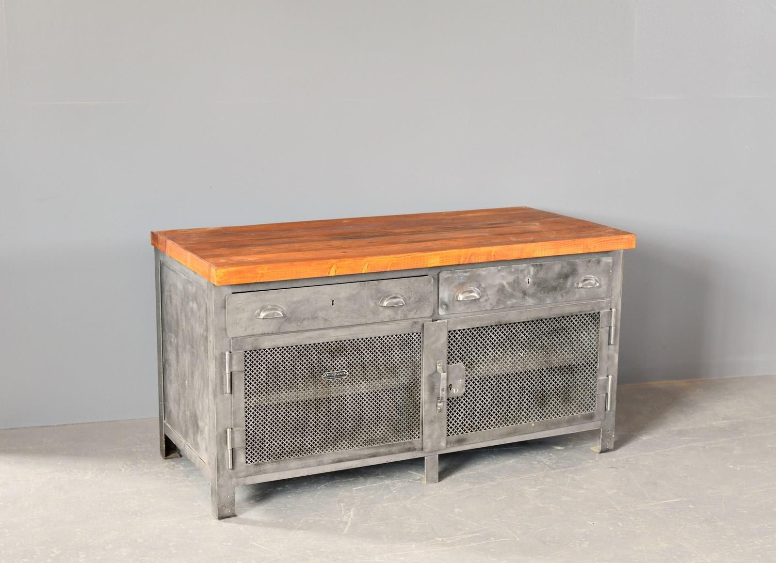 All the doors open and latch smoothly, the entire cabinet has been sandblasted, cleaned and clear lacquered. There will be some wear in the form of dents to the metal sheeting on the sides of the cabinet.