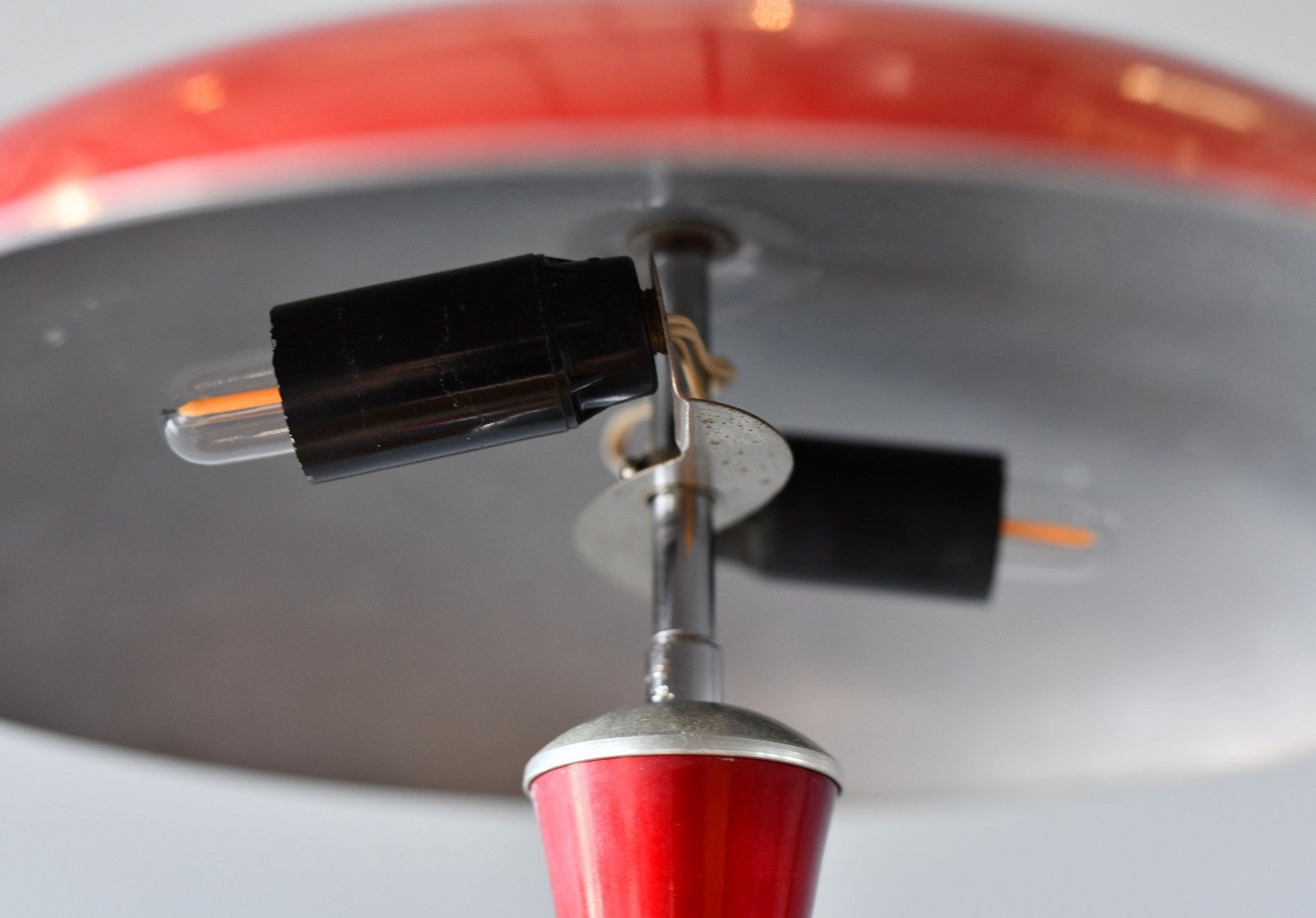 Fully re wired with modern electrical components, some mild patina to chrome and red surface in places