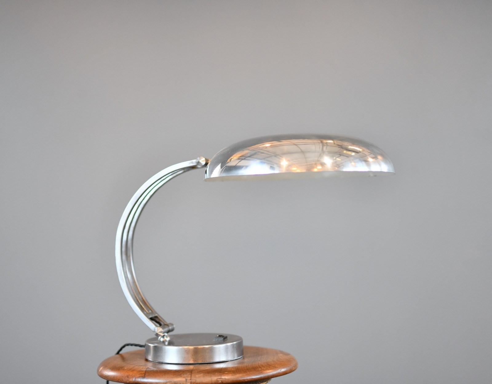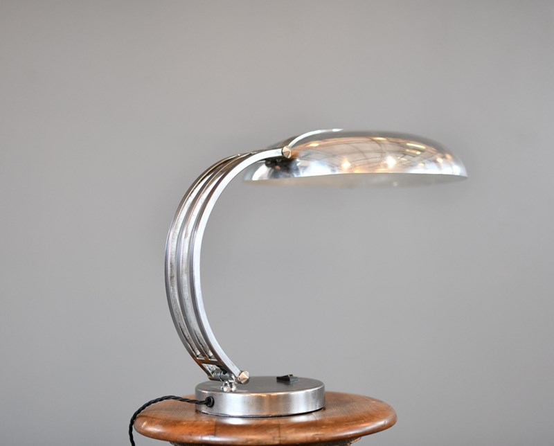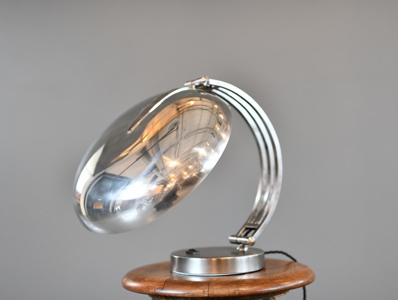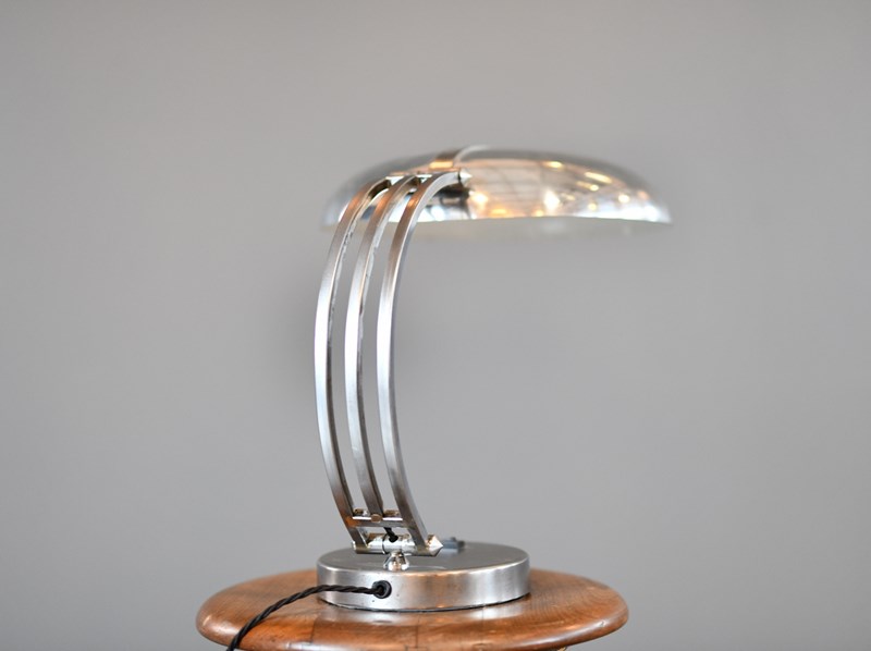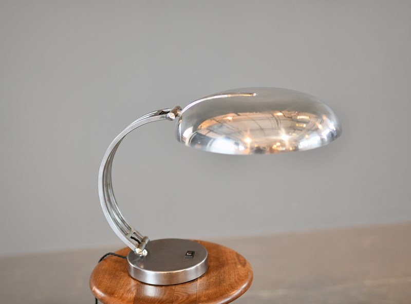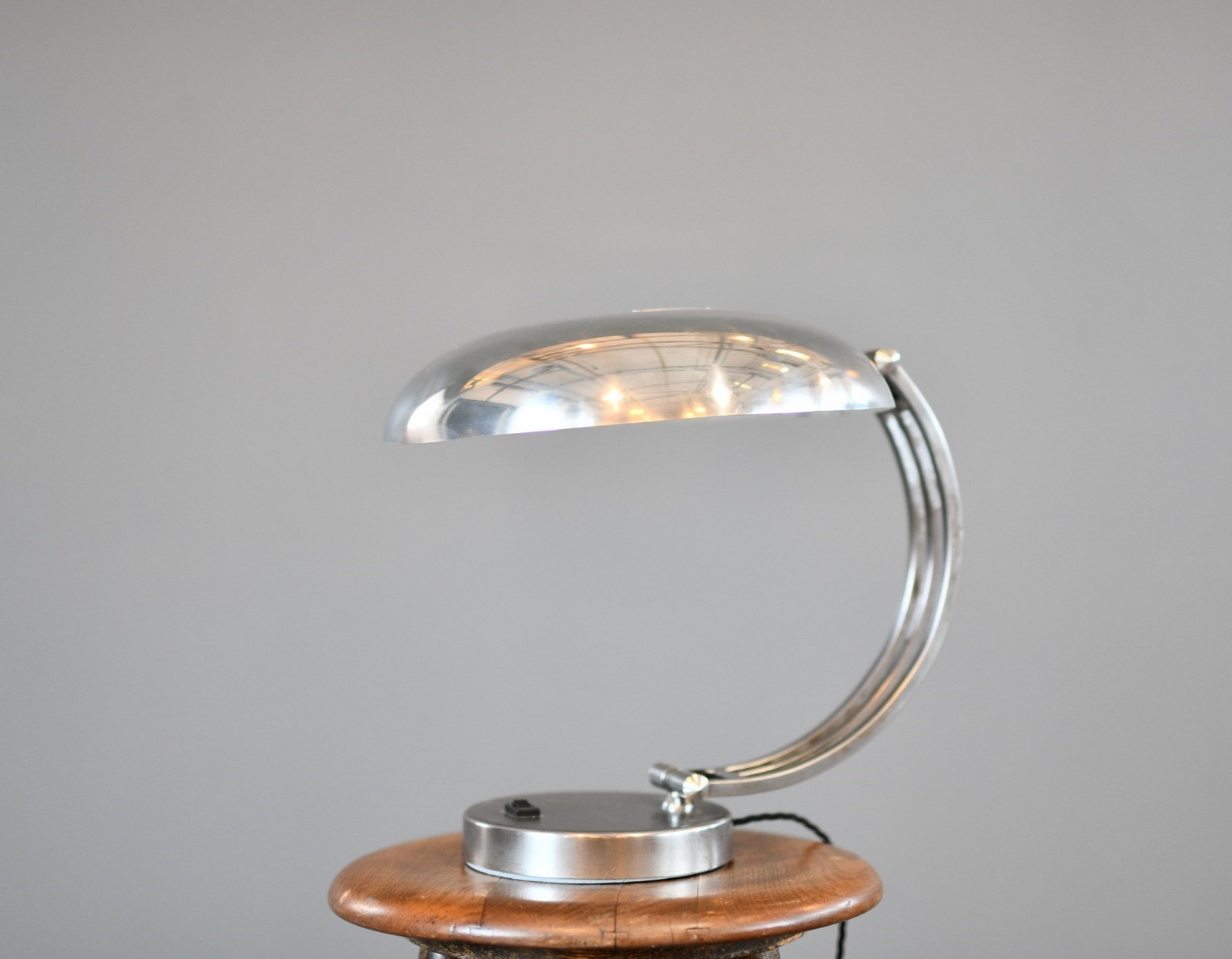 Lamp has been rewired with modern electrical components. Some small dents on the shade and patina from past use.