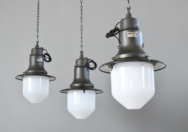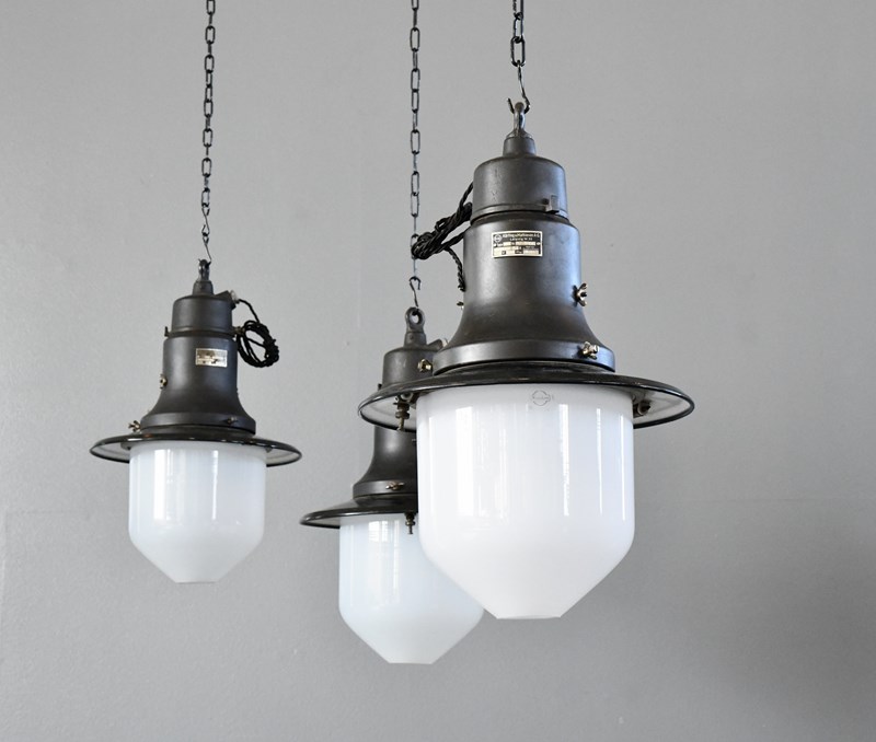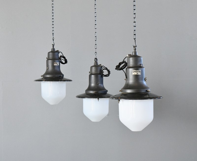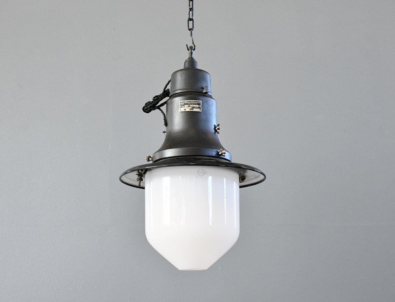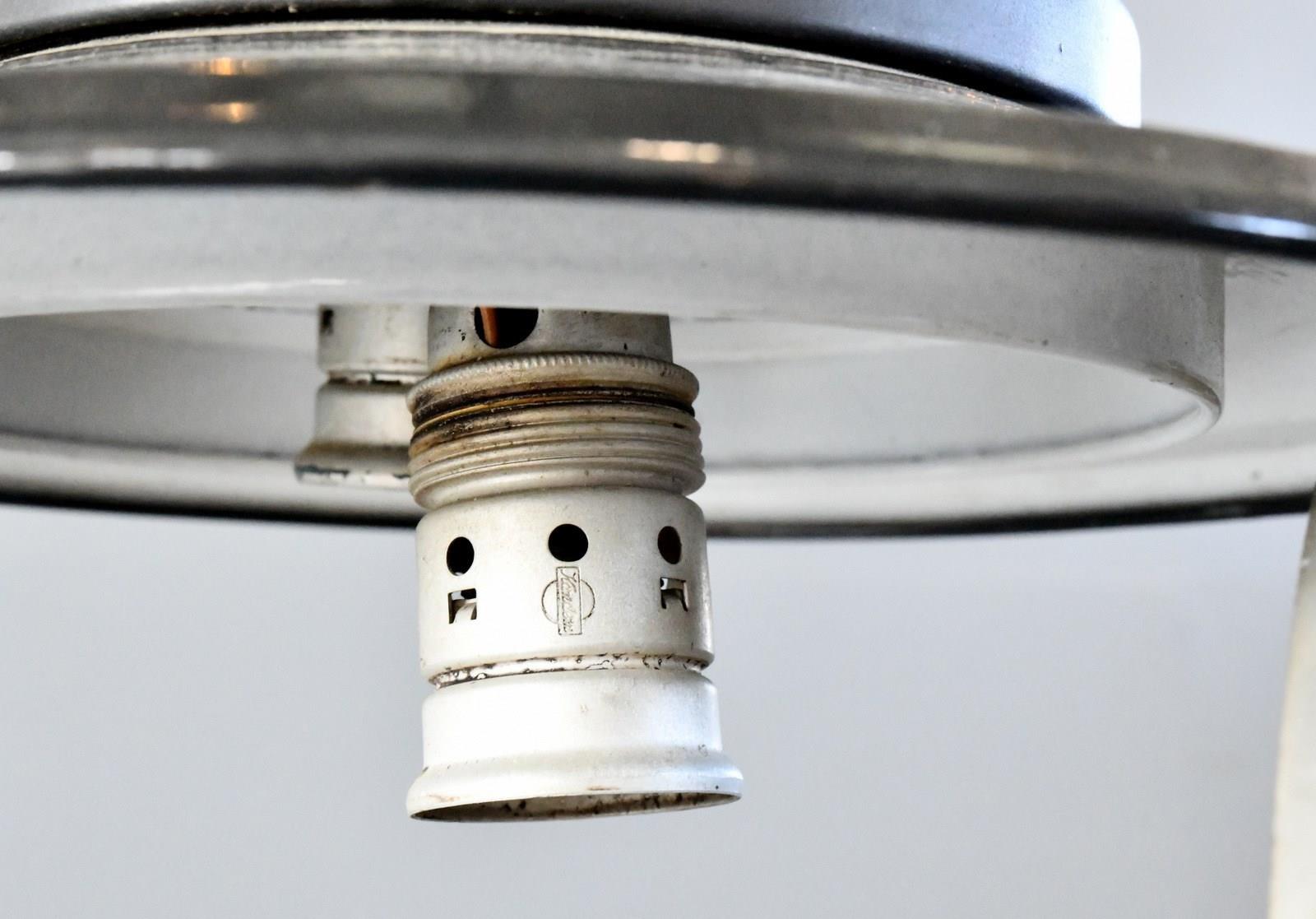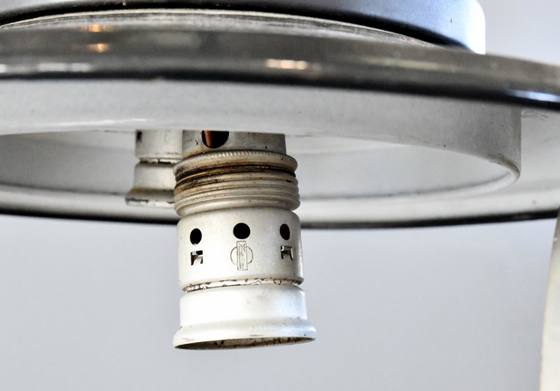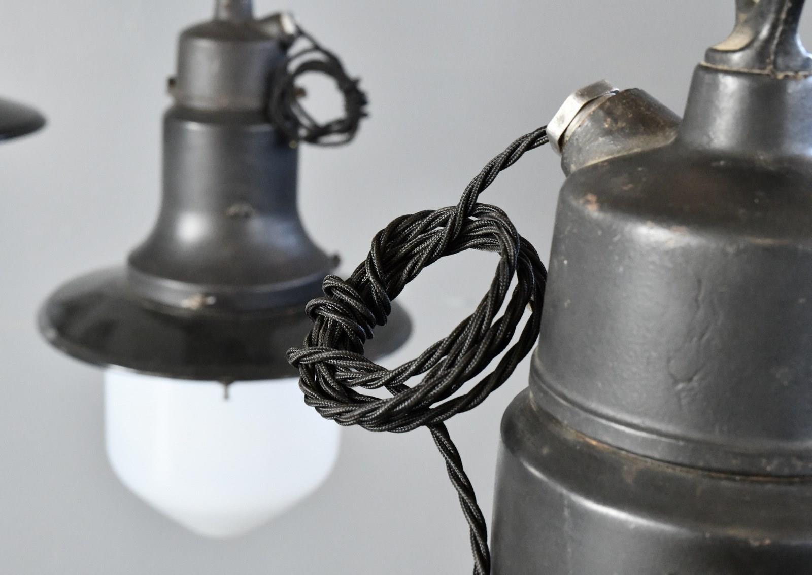 Fully re wired with modern electrical components, some light patina and marks to the black paint but no damage to the glass