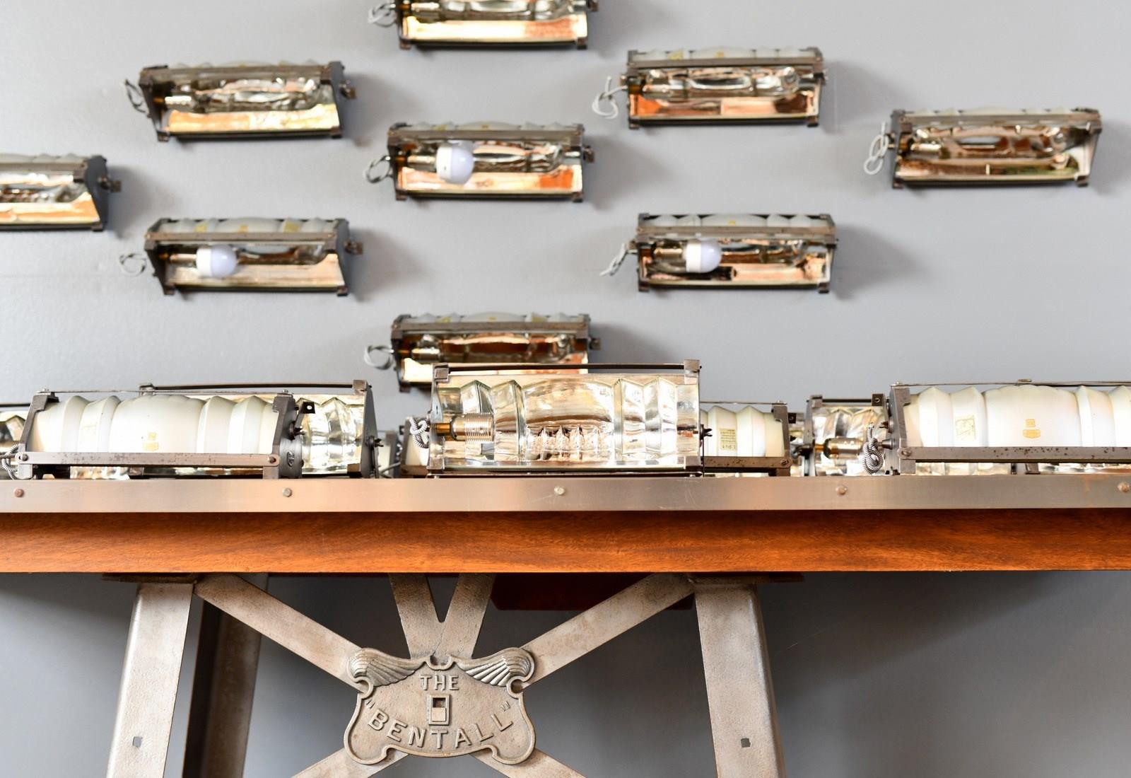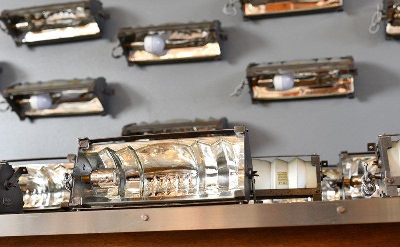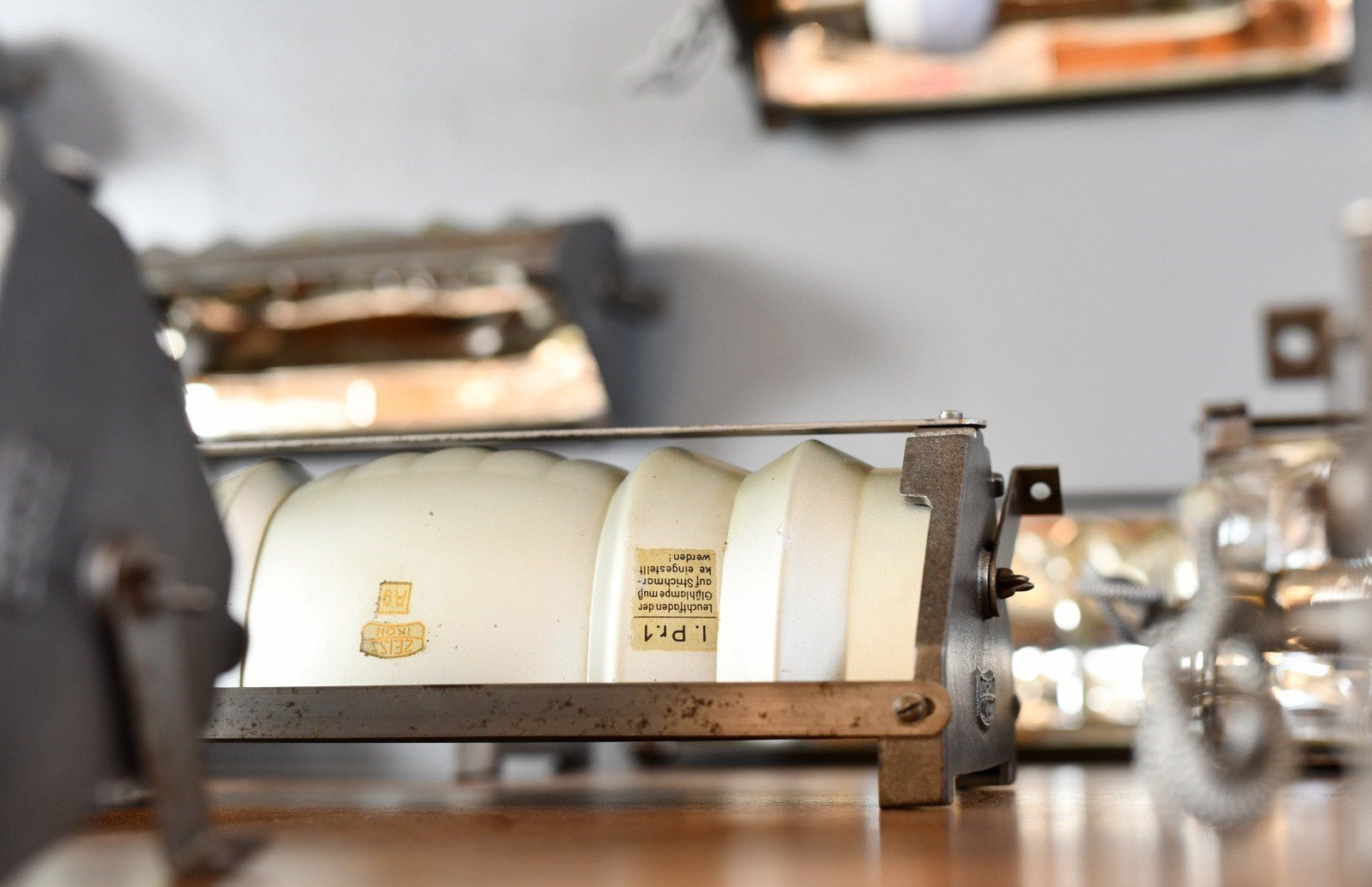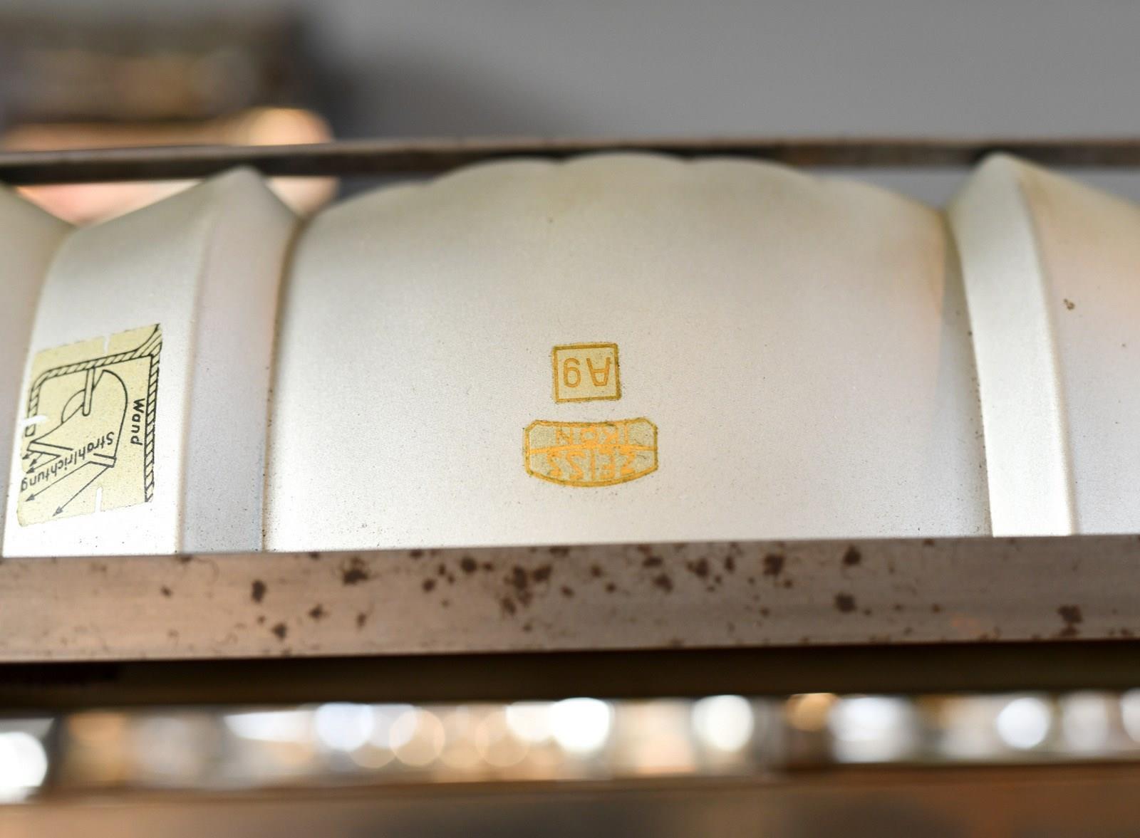 Zeiss Ikon was founded in 1925 in Jena producing lighting for offices, homes and public buildings, they were especially known for their glass mirror lighting for use in hospitals. Adolf Meyer was the lighting designer from 1925 until his death in 1929.