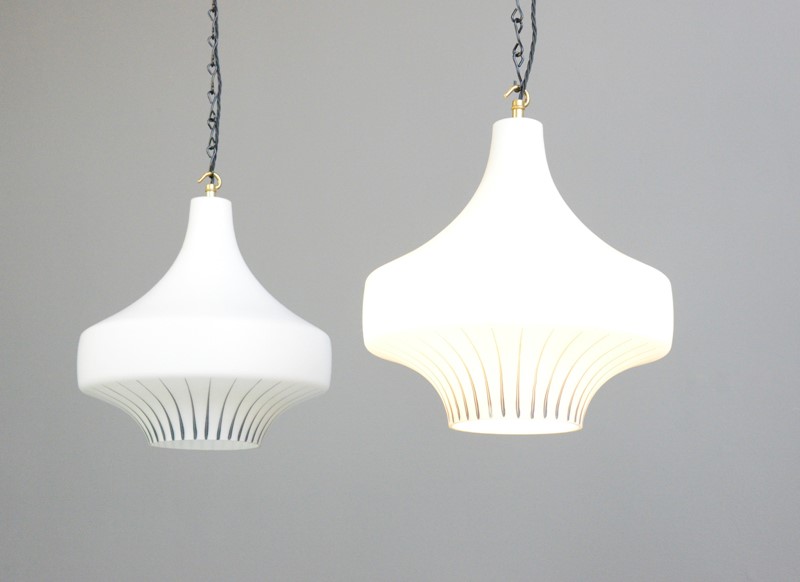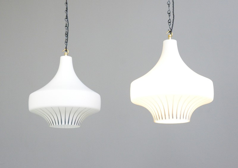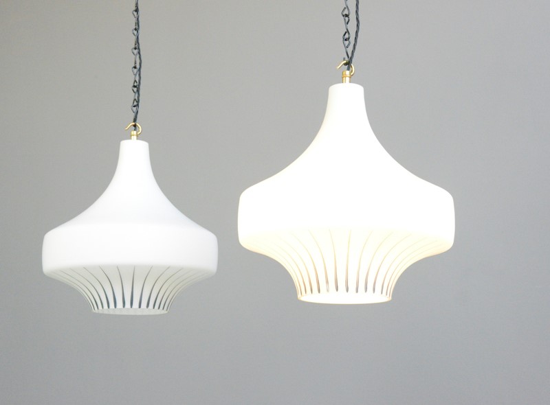 Mid Century Opaline Pendant Lights Circa 1950S