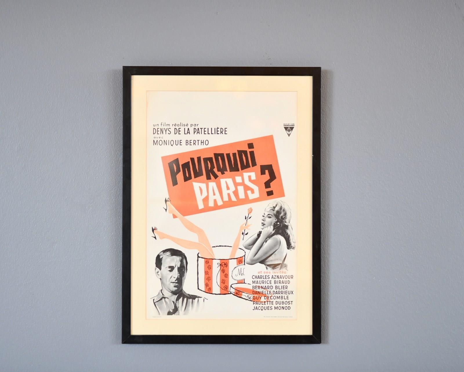 Original Framed French Pourquoi Paris? Movie Poster Circa 1960s