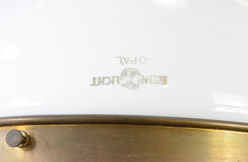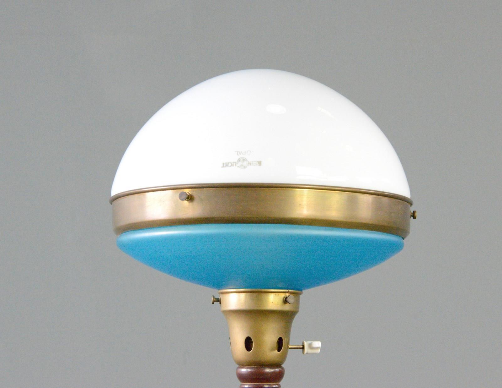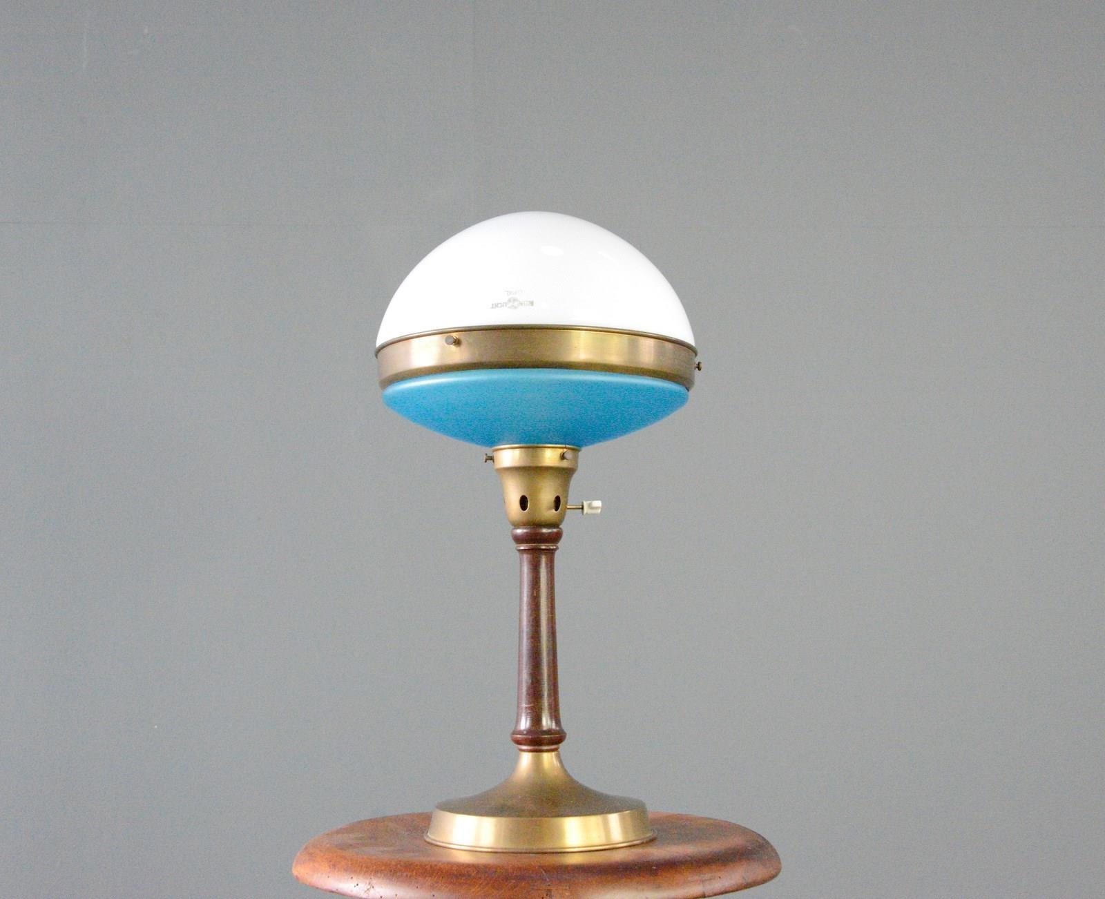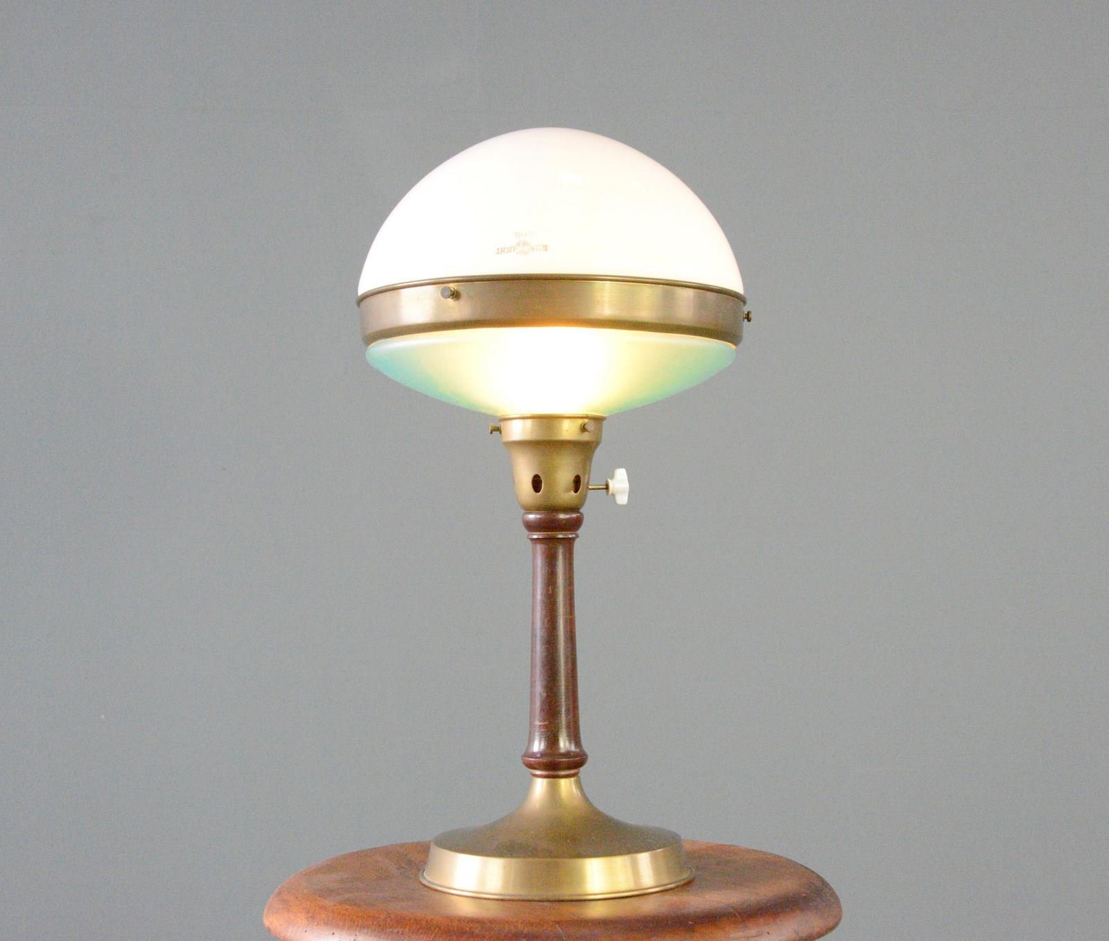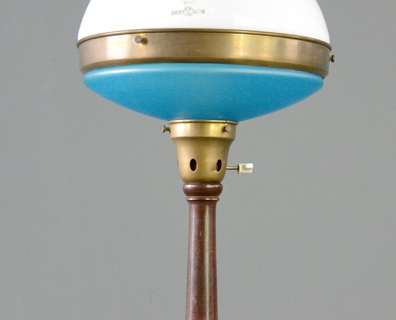 Fully rewired with modern electrical components, no damage to the glass, there is a small split in the brass by the clamping screw