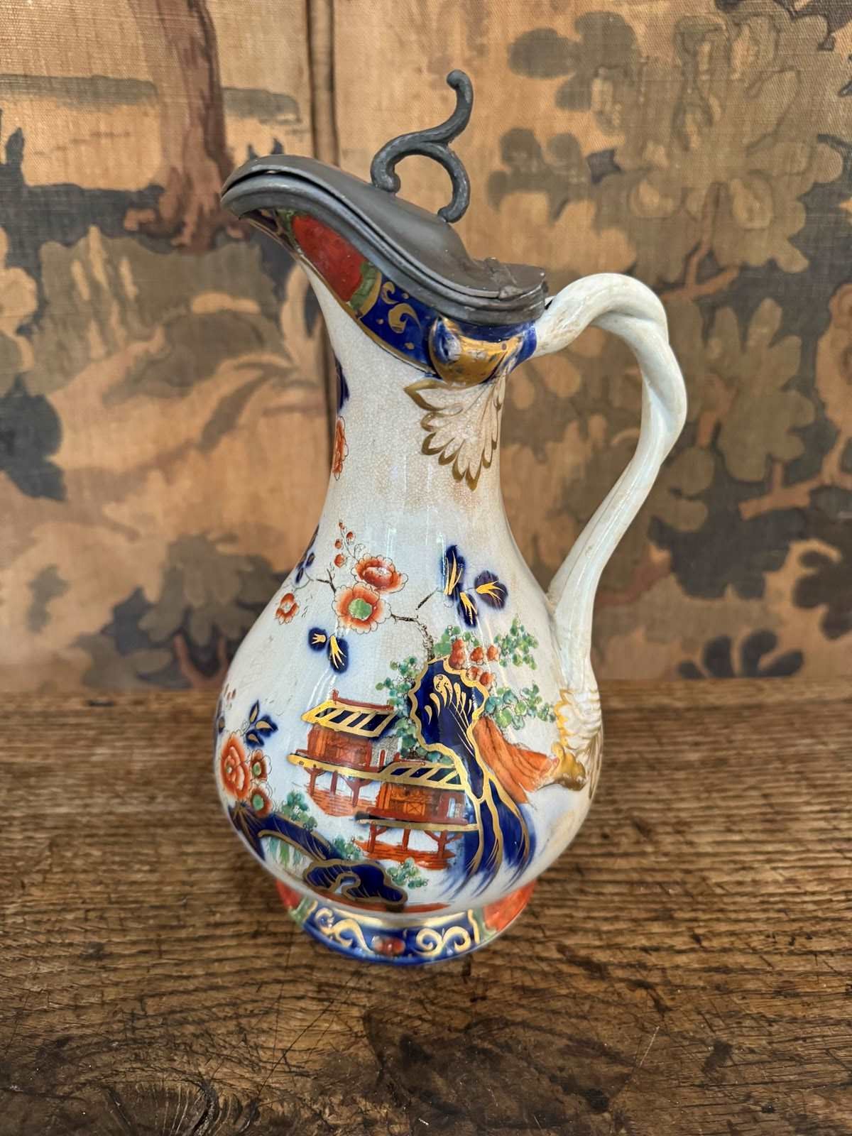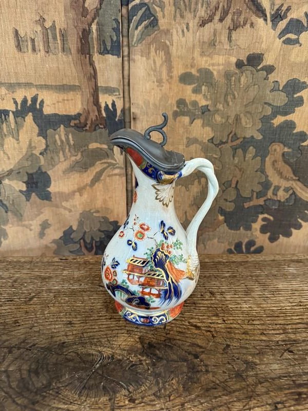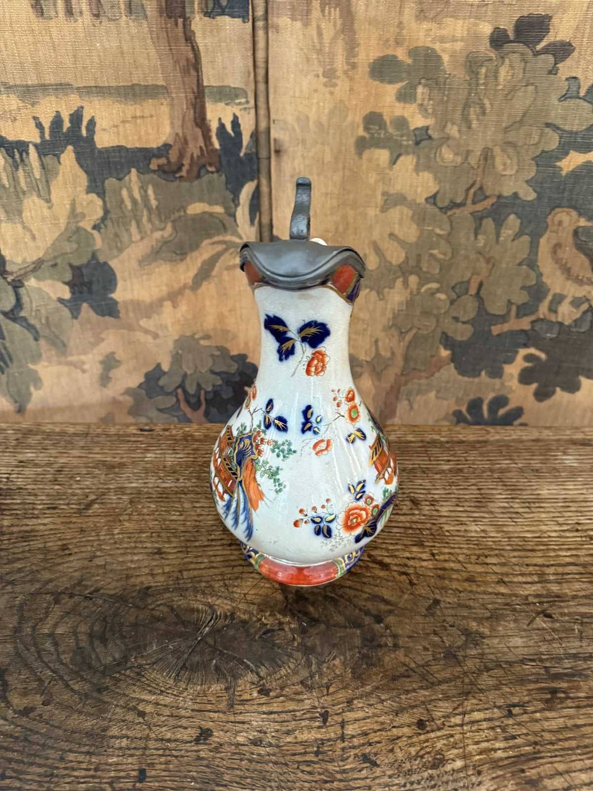 19Th Century Glazed Ironstone Jug With Pewter Lid