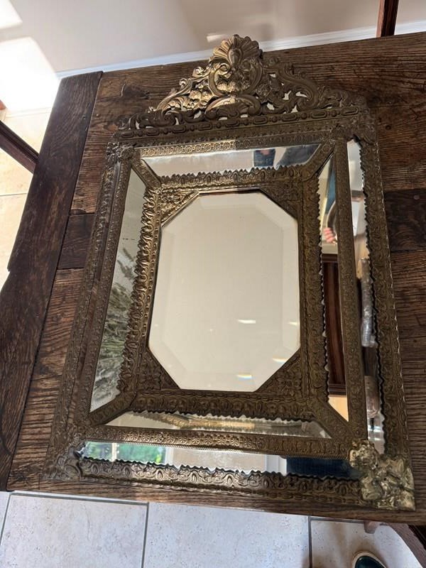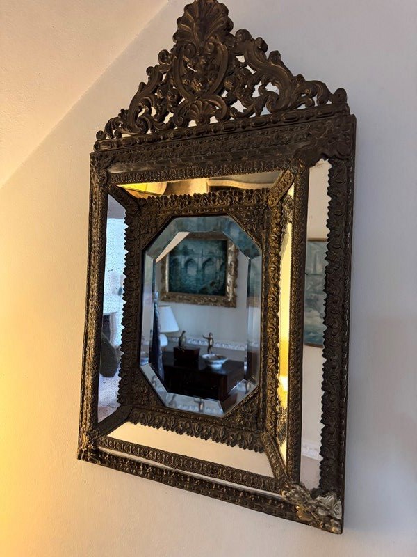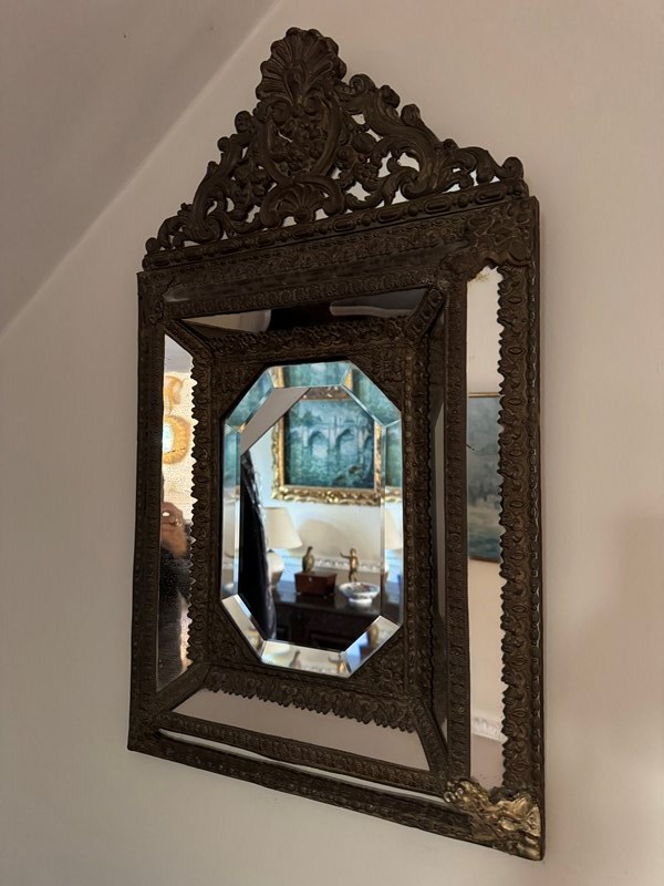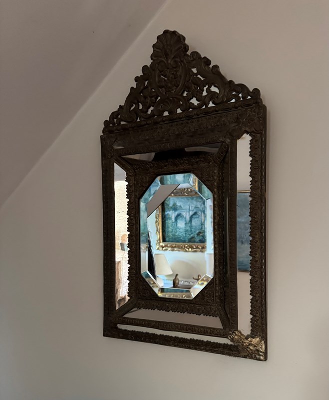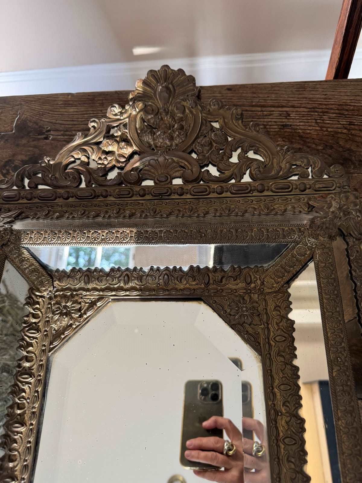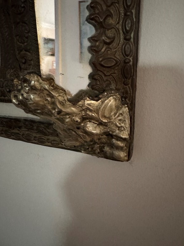 19th Century French Ornate Brass Repousse Napoléon III Bevelled Mirror. Some restoration to the corners, which should be visible in the photos.